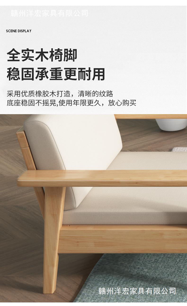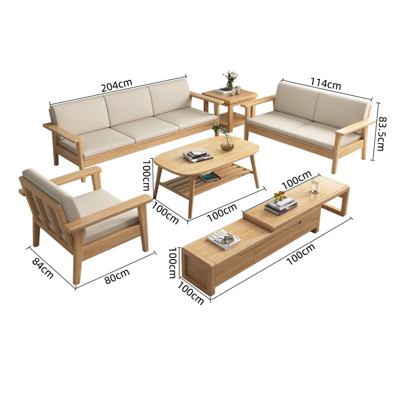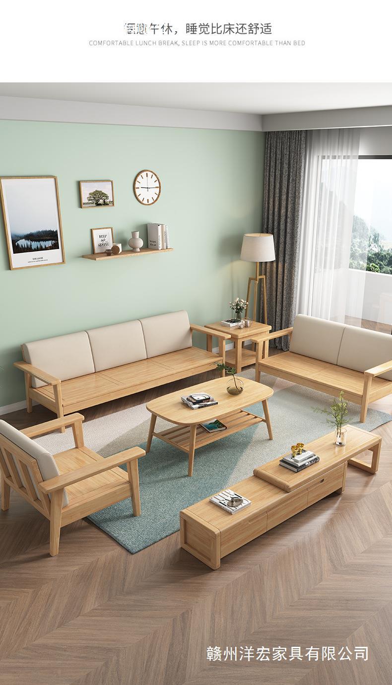 Sofá de madera maciza nórdica simple moderna sala de estar combinación concubina tela invierno y verano de doble uso pequeño apartamento madera muebles de color