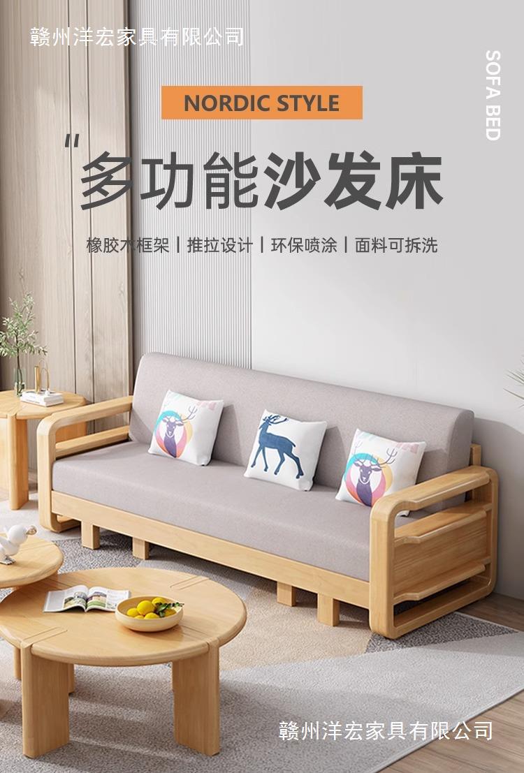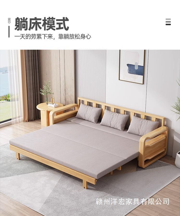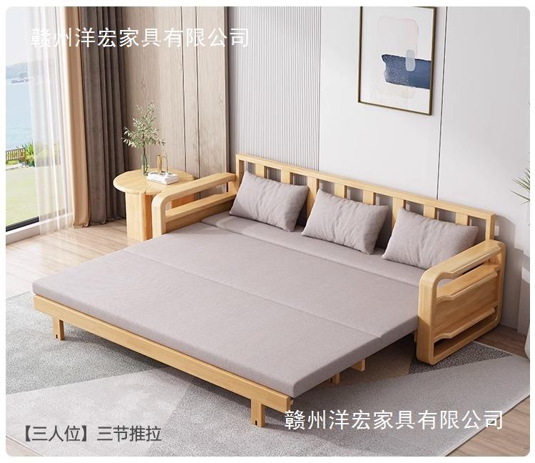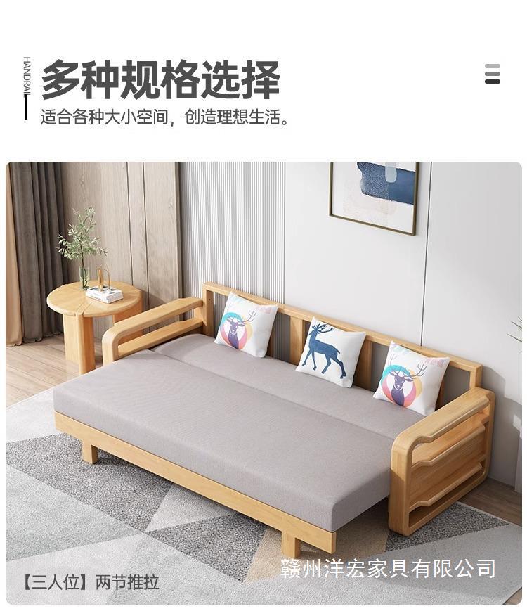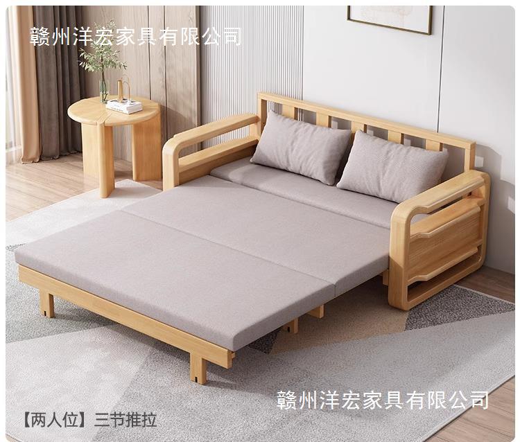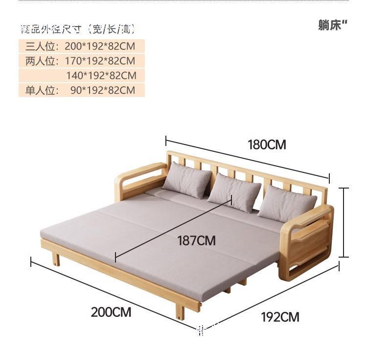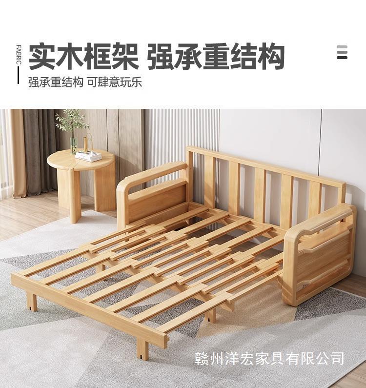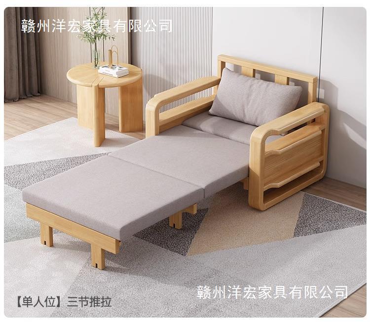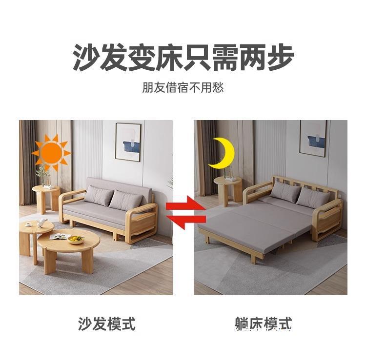 Sofá cama de madera maciza plegable Push-Pull de doble uso pequeño apartamento Individual Doble cama telescópica multifuncional sofá de la sala de estar