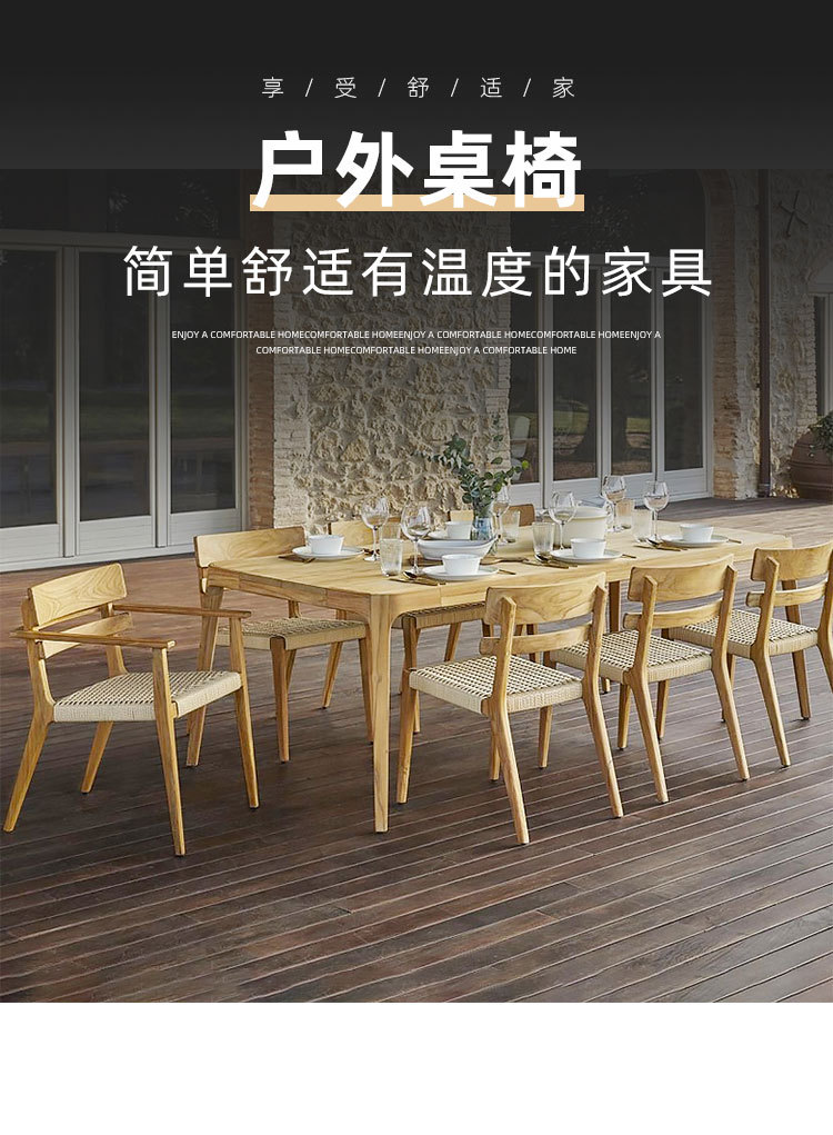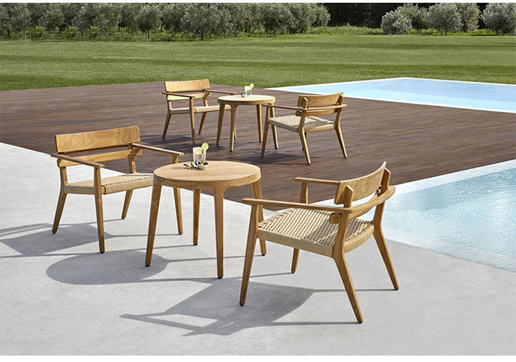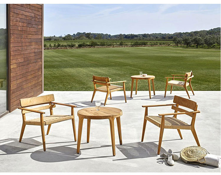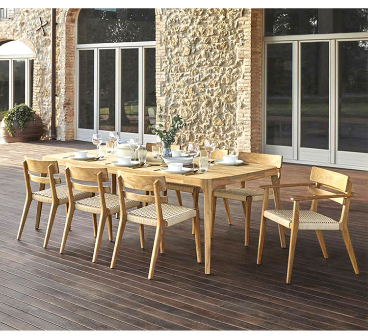 Mesas y sillas de madera maciza al aire libre Mesas y sillas de comedor de jardín al aire libre Mesas y sillas de madera de ratán de patio Mesas y sillas de teca de balcón Juego de tres piezas