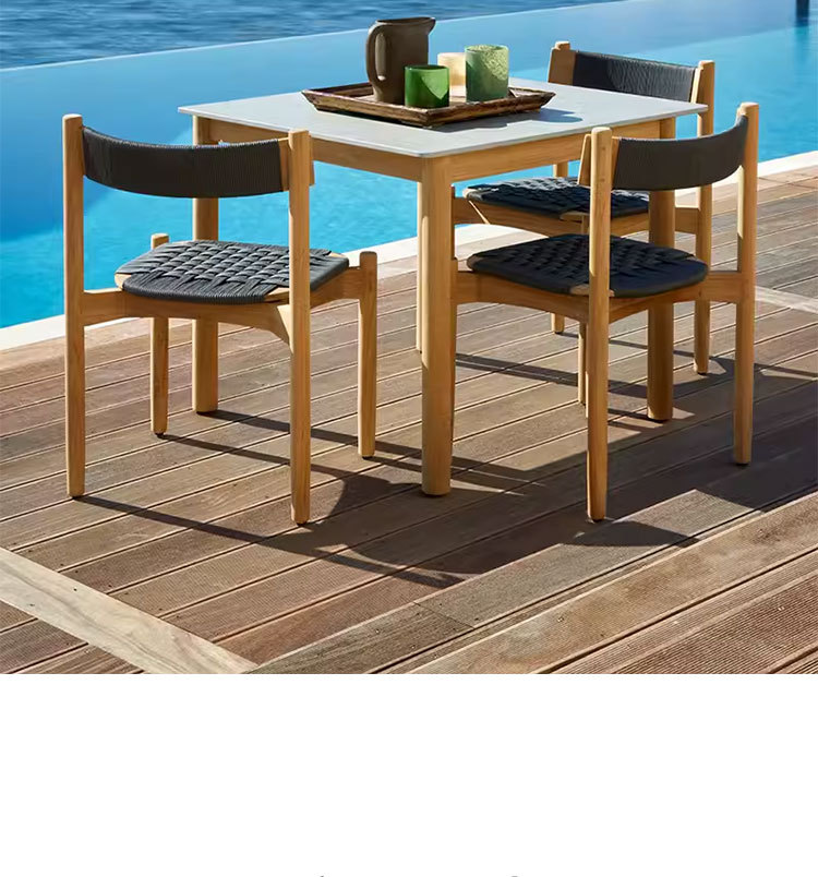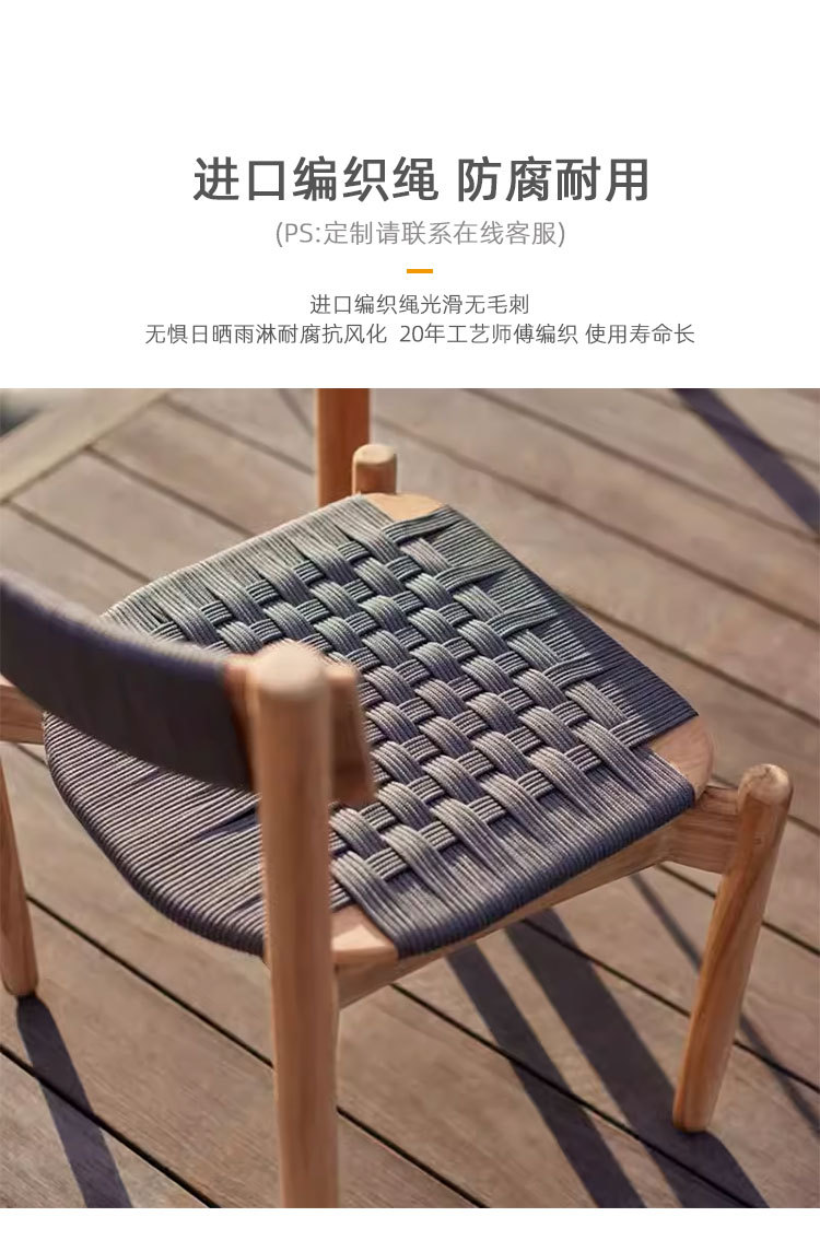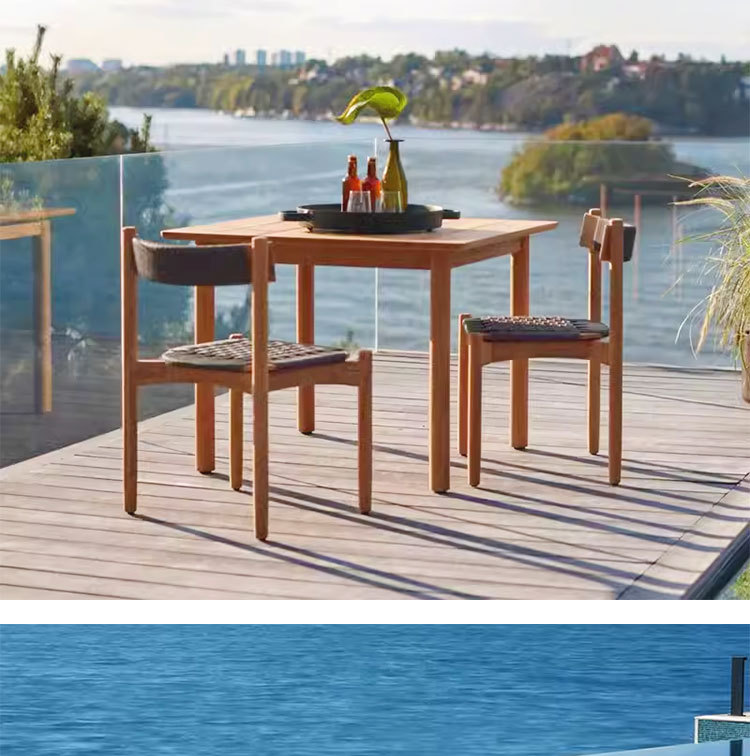 Mesa y silla de teca al aire libre Jardín patio balcón de ocio de madera maciza nórdica silla de ratana impermeable tres piezas combinación