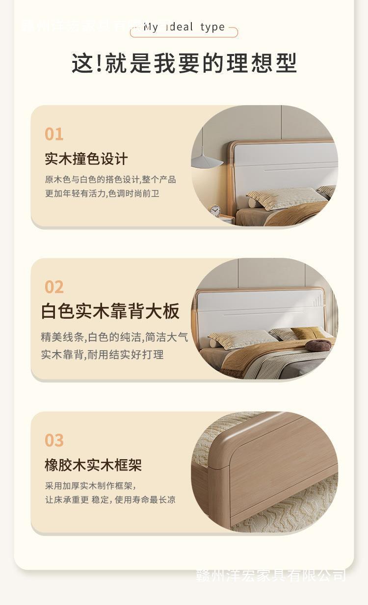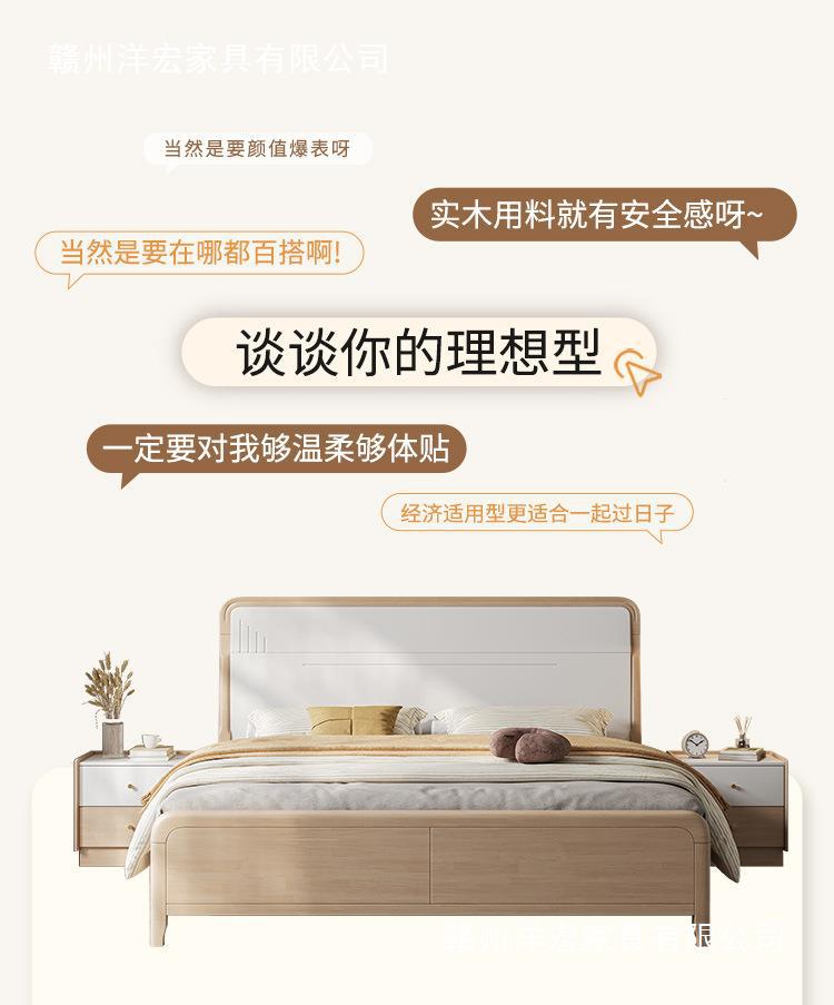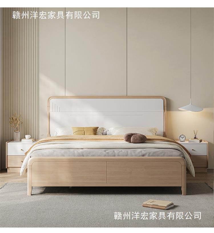 Moderno minimalista cama de madera maciza 1,8 m dormitorio principal cama doble 1,5 m individual Nórdico roble casa suave cama de madera maciza