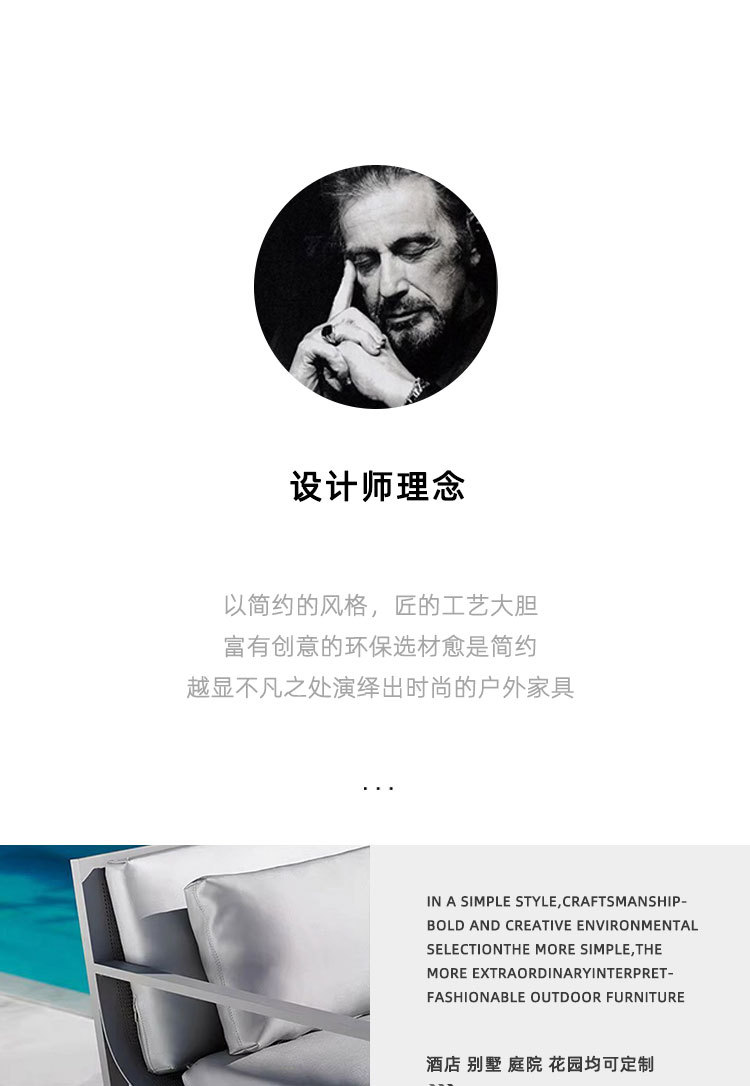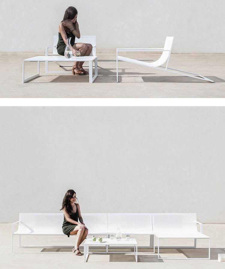 Sofá al aire libre minimalista nórdico combinación de asientos de acero inoxidable patio al aire libre jardín ocio impermeable muebles de protección solar
