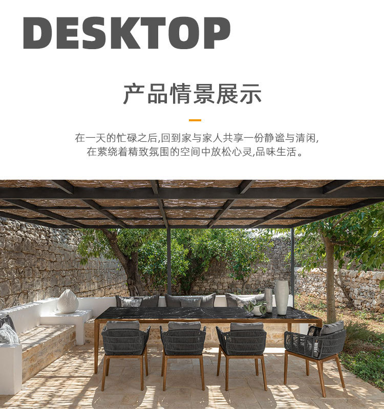 Mesa de comedor y silla de madera de teca al aire libre combinación villa muebles de jardín B & B patio al aire libre silla de ratán de estilo de ocio nórdico