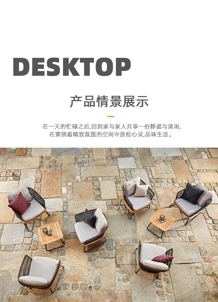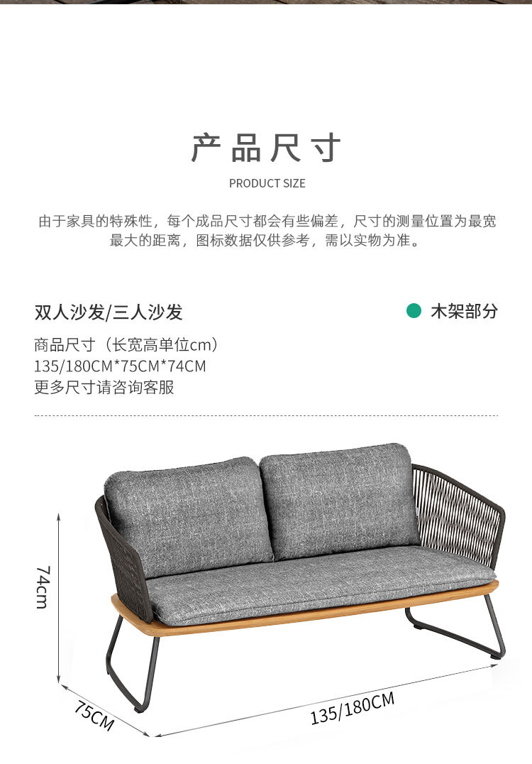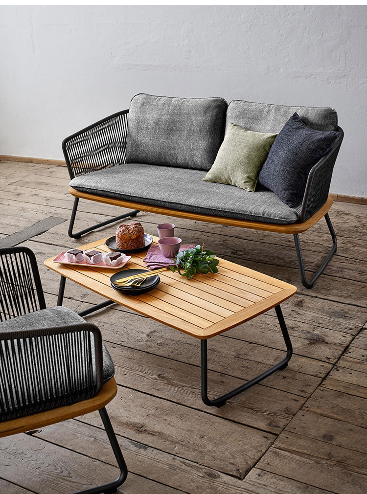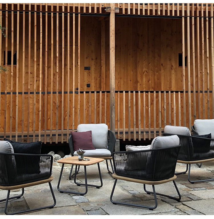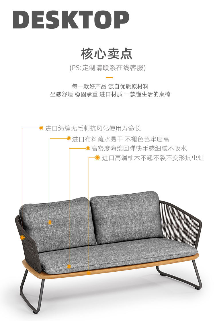 Casual nórdico al aire libre sofá al aire libre de caña de madera sólida villa jardín balcón impermeable de caña de madera de teca combinación de muebles