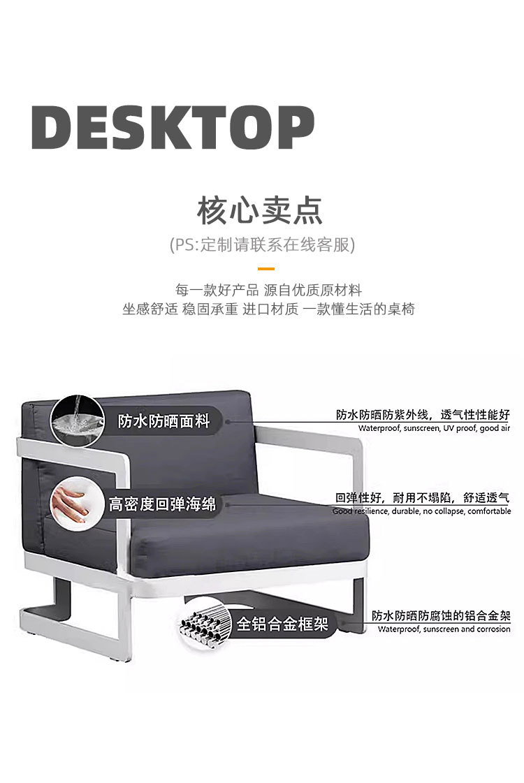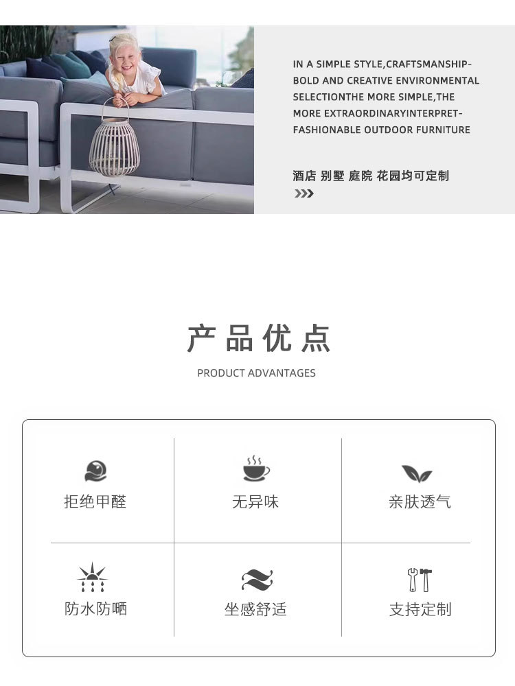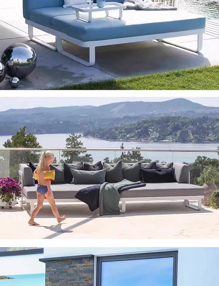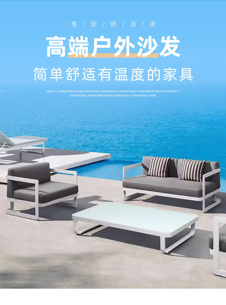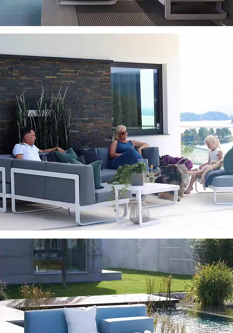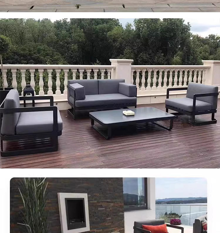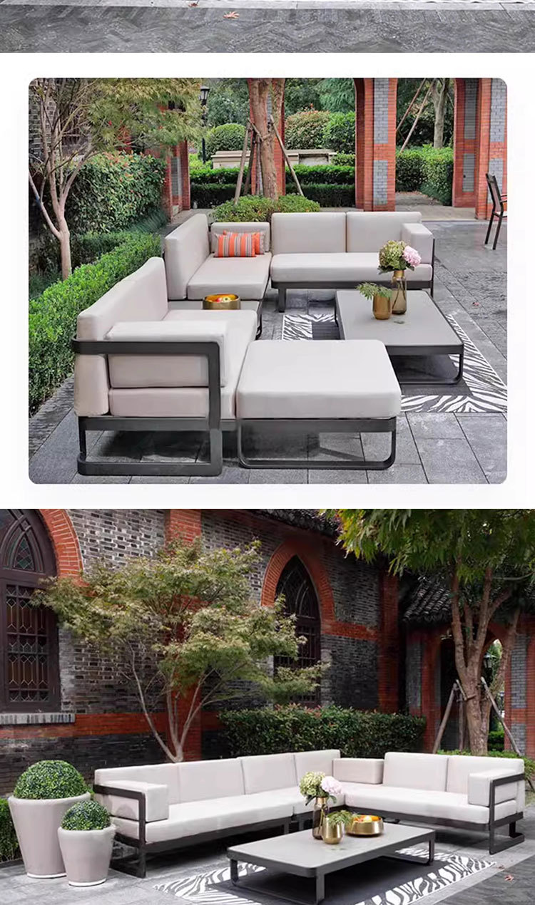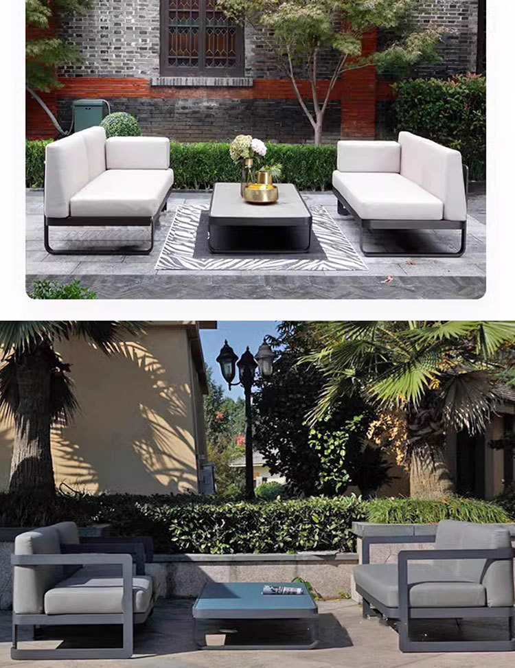 Sofá de aleación de aluminio al aire libre, villa de jardín, hotel, protección solar, impermeable, ocio, balcón al aire libre, combinación de muebles de acero inoxidable