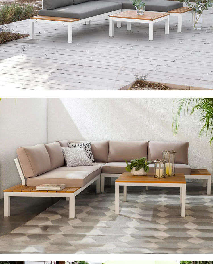Sofá al aire libre nórdico balcón al aire libre B & B hotel jardín aleación de aluminio impermeable protector solar madera anticorrosión muebles de ocio