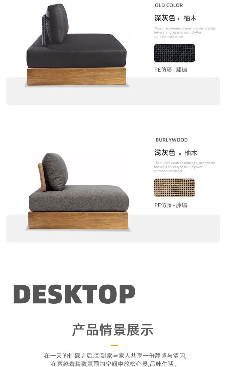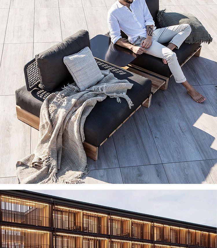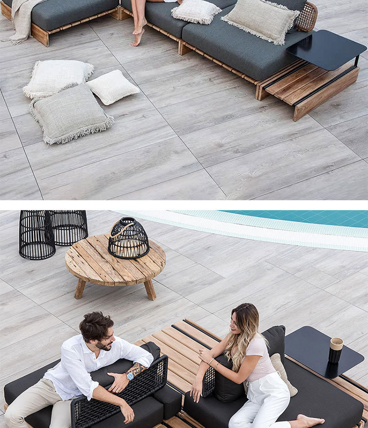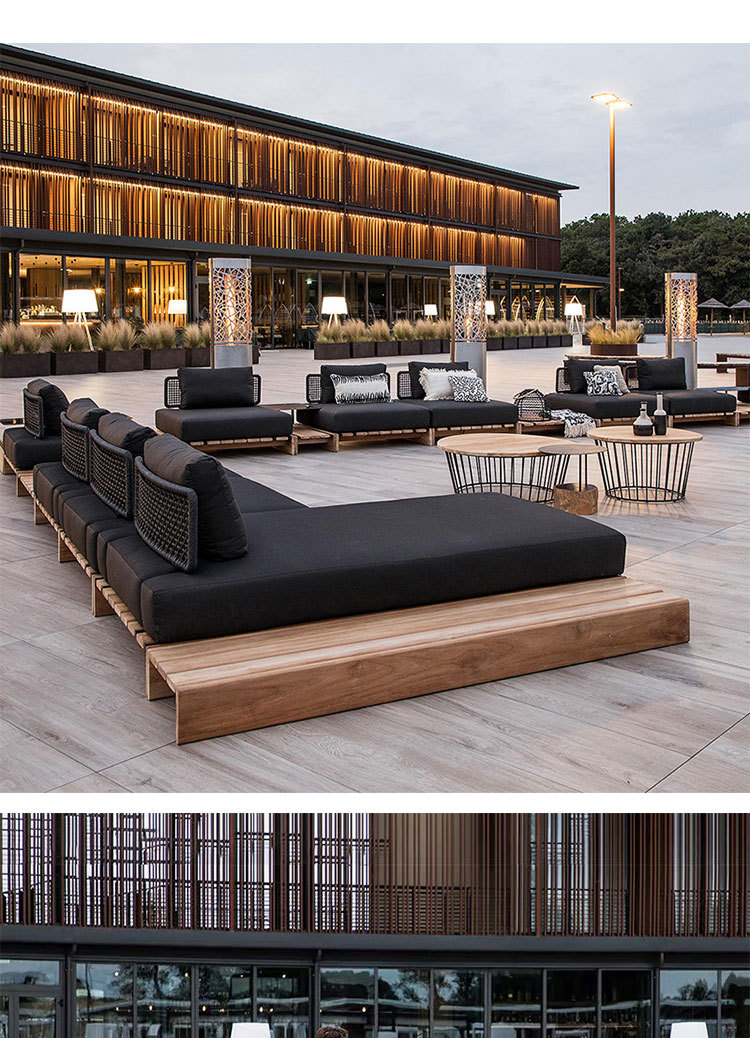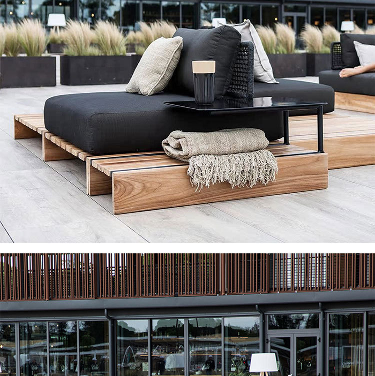 Sofá de ratán de teca al aire libre, patio, balcón al aire libre, jardín, ocio, hotel, muebles creativos de madera maciza
