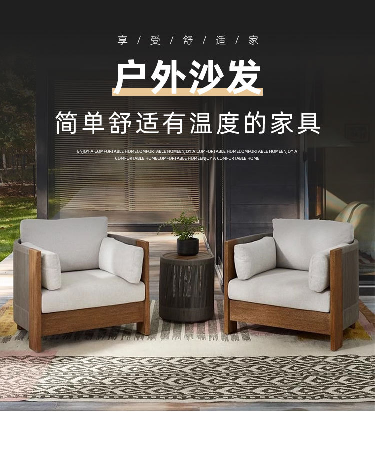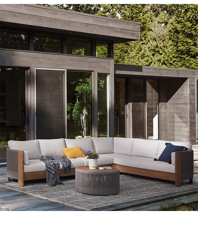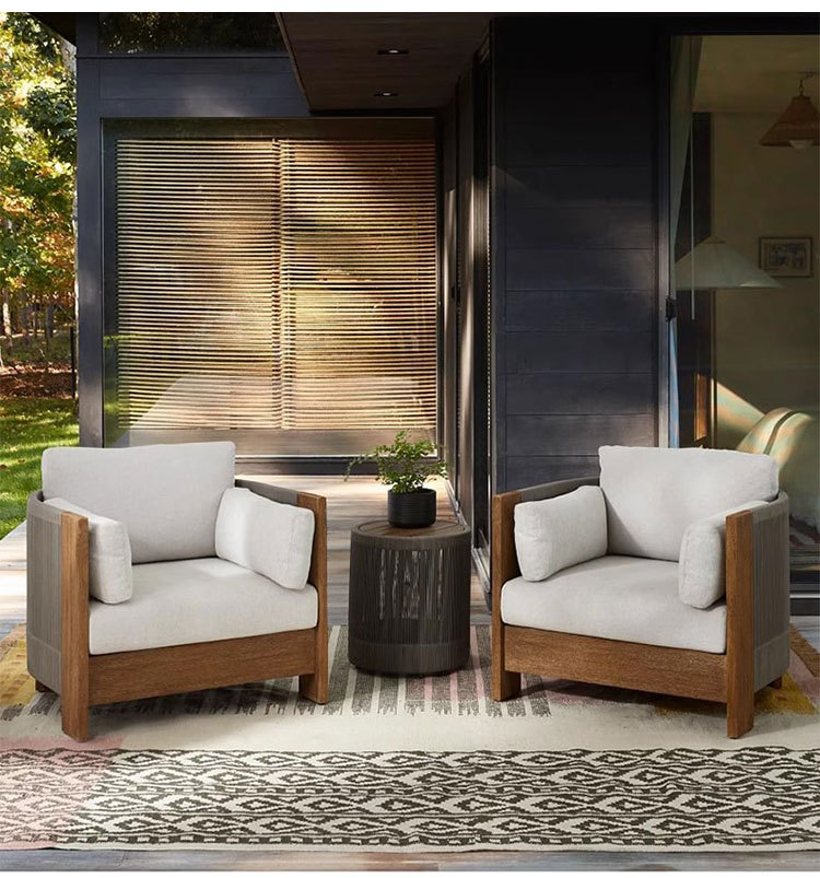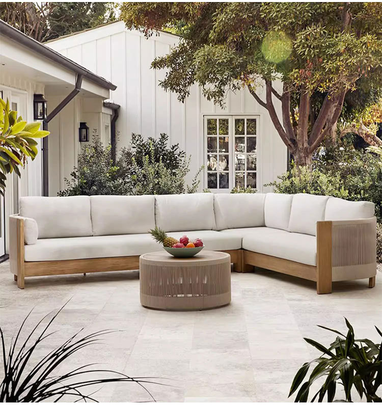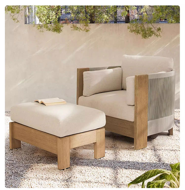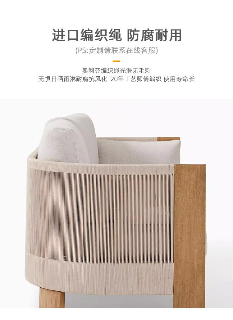 Sofá al aire libre de teca, patio, balcón, ocio, combinación de ratán de madera maciza, terraza de villa al aire libre, silla de ratán impermeable y de protección solar