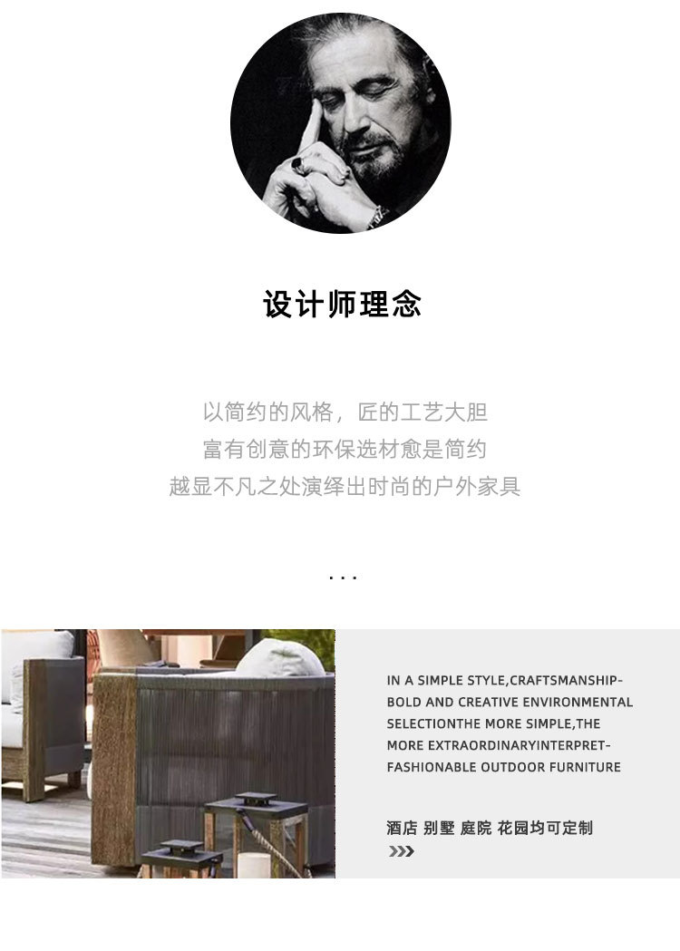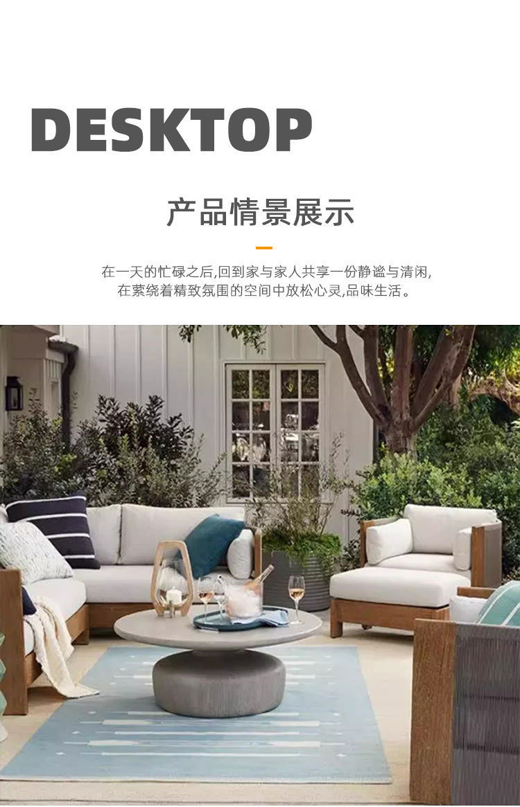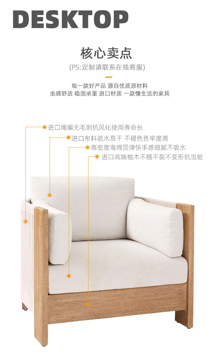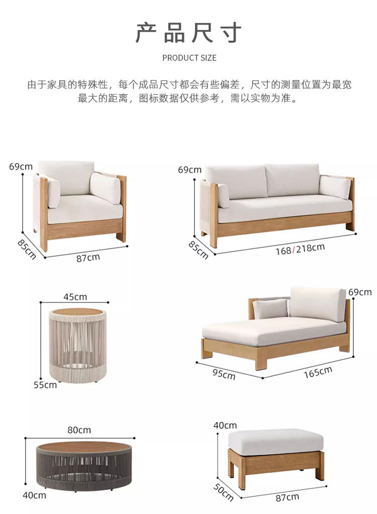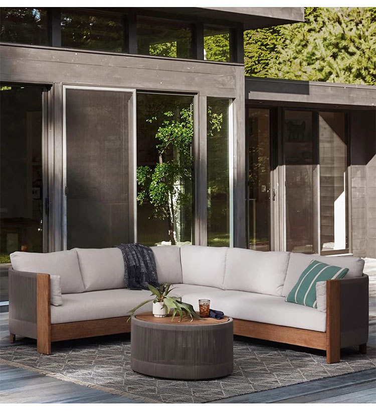 Sofá al aire libre de teca, patio, balcón, ocio, combinación de ratán de madera maciza, terraza de villa al aire libre, silla de ratán impermeable y de protección solar