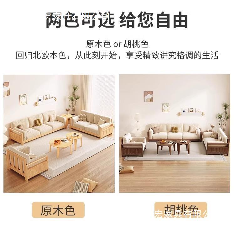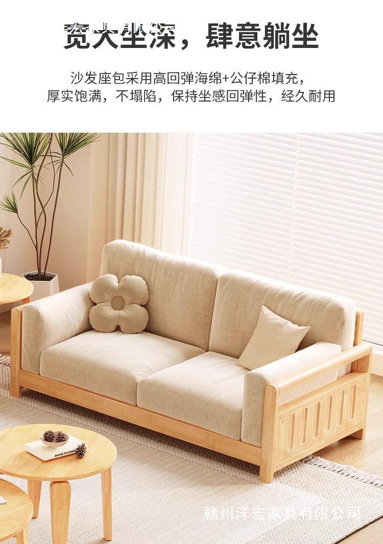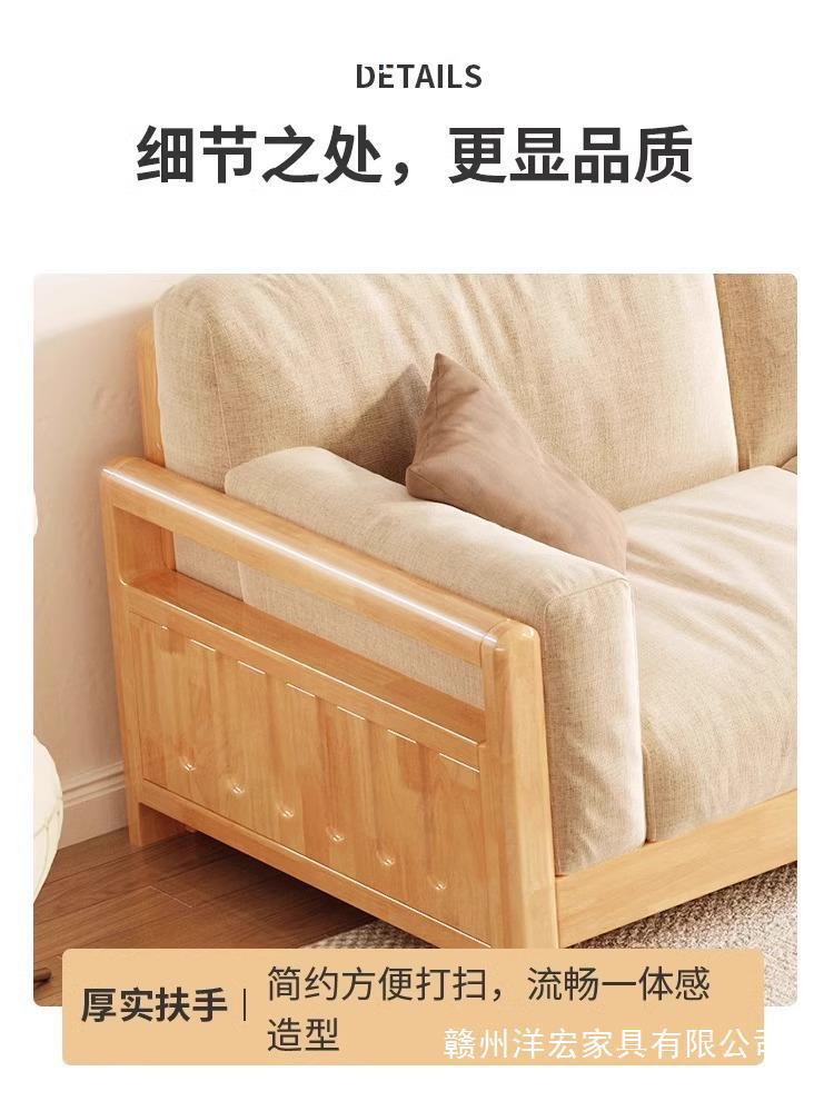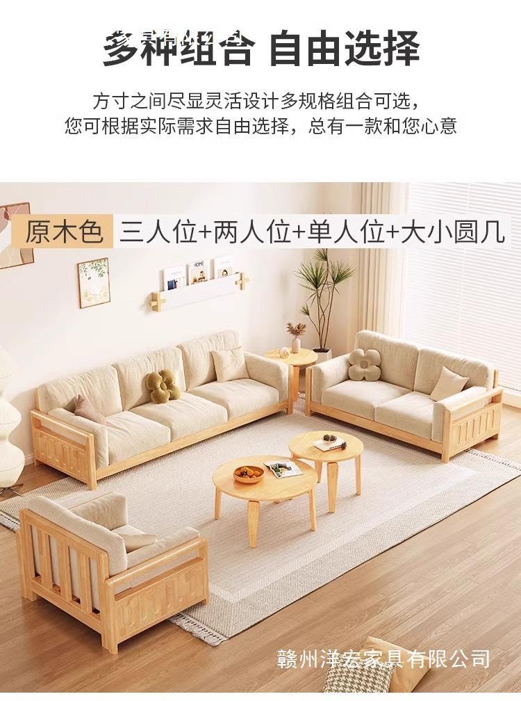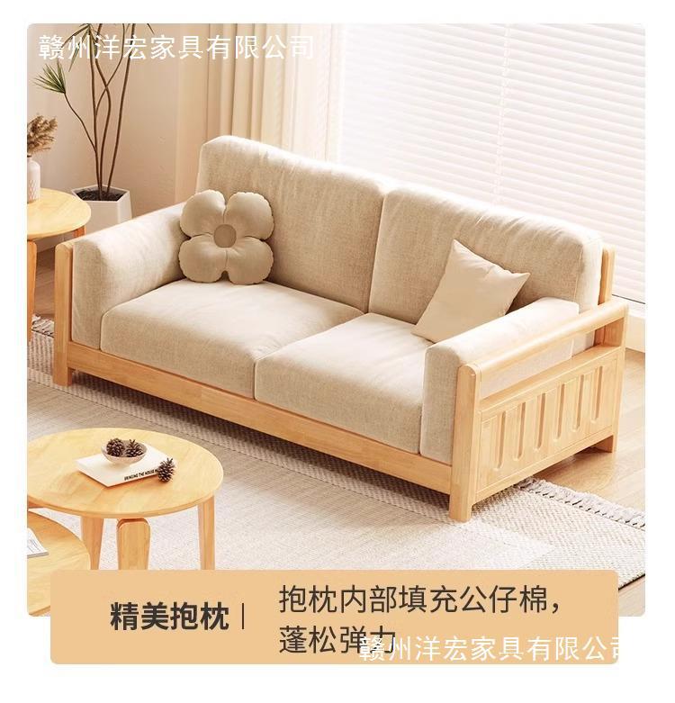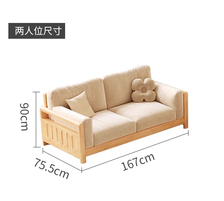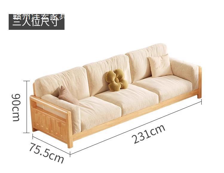 Sofá de madera sólida estilo nórdico japonés sala de estar pequeño moderno simple tela de madera de madera de estilo crema sofá de madera sólida