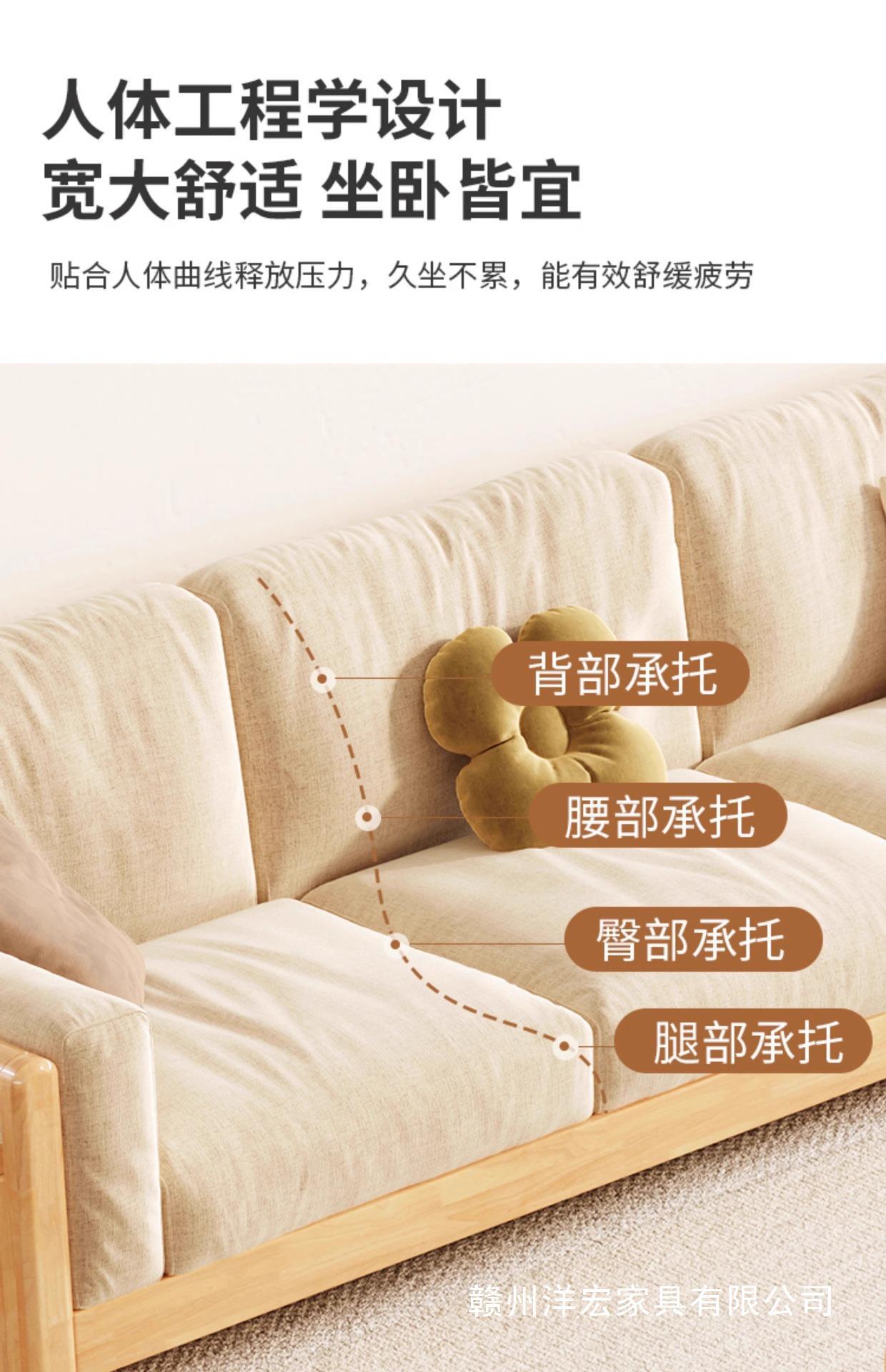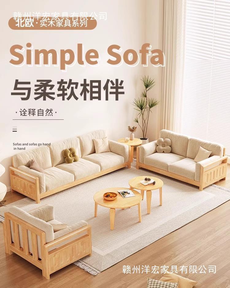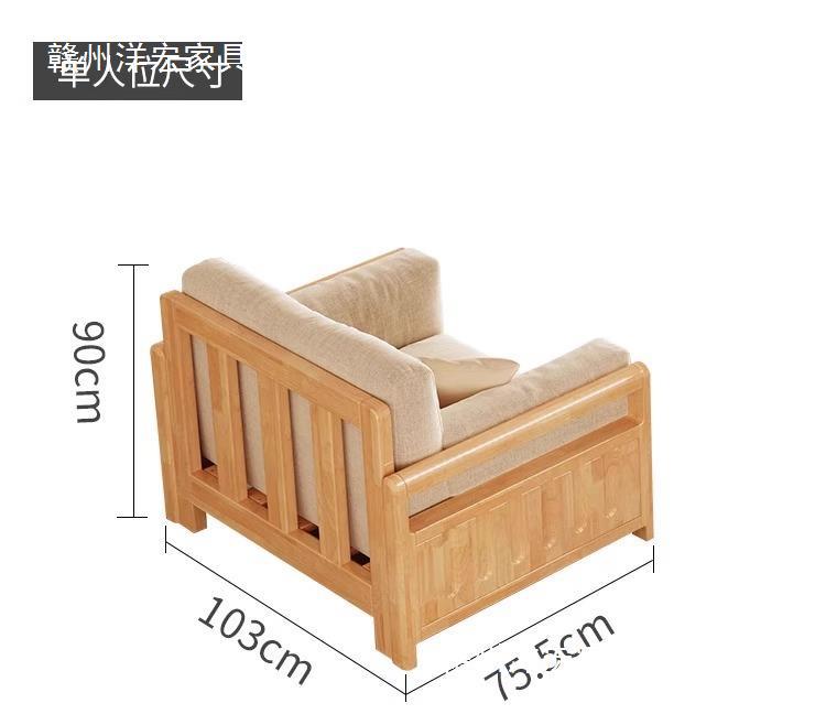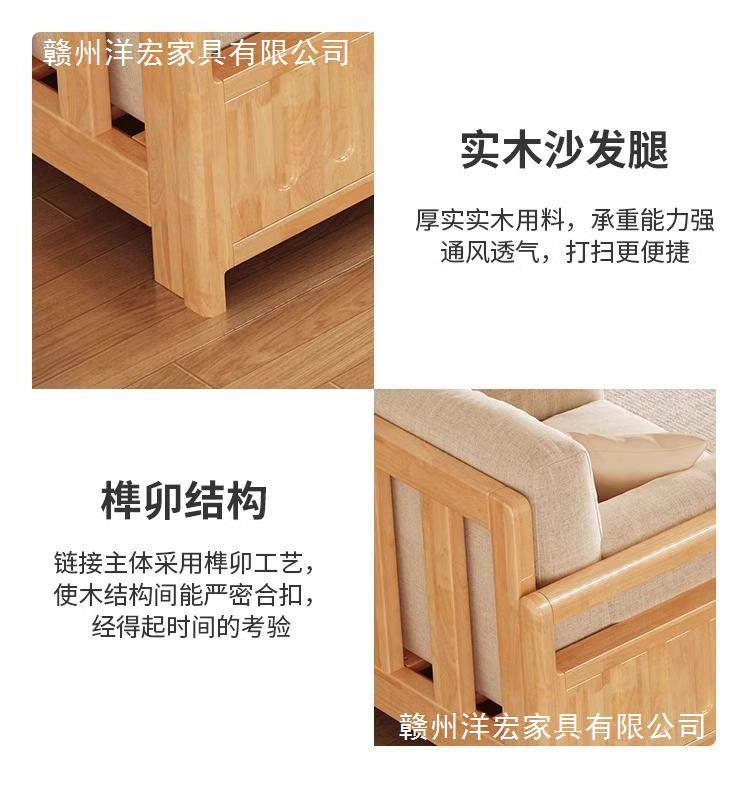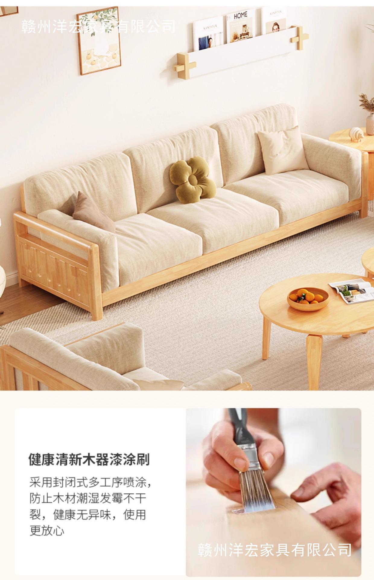 Sofá de madera sólida estilo nórdico japonés sala de estar pequeño moderno simple tela de madera de madera de estilo crema sofá de madera sólida