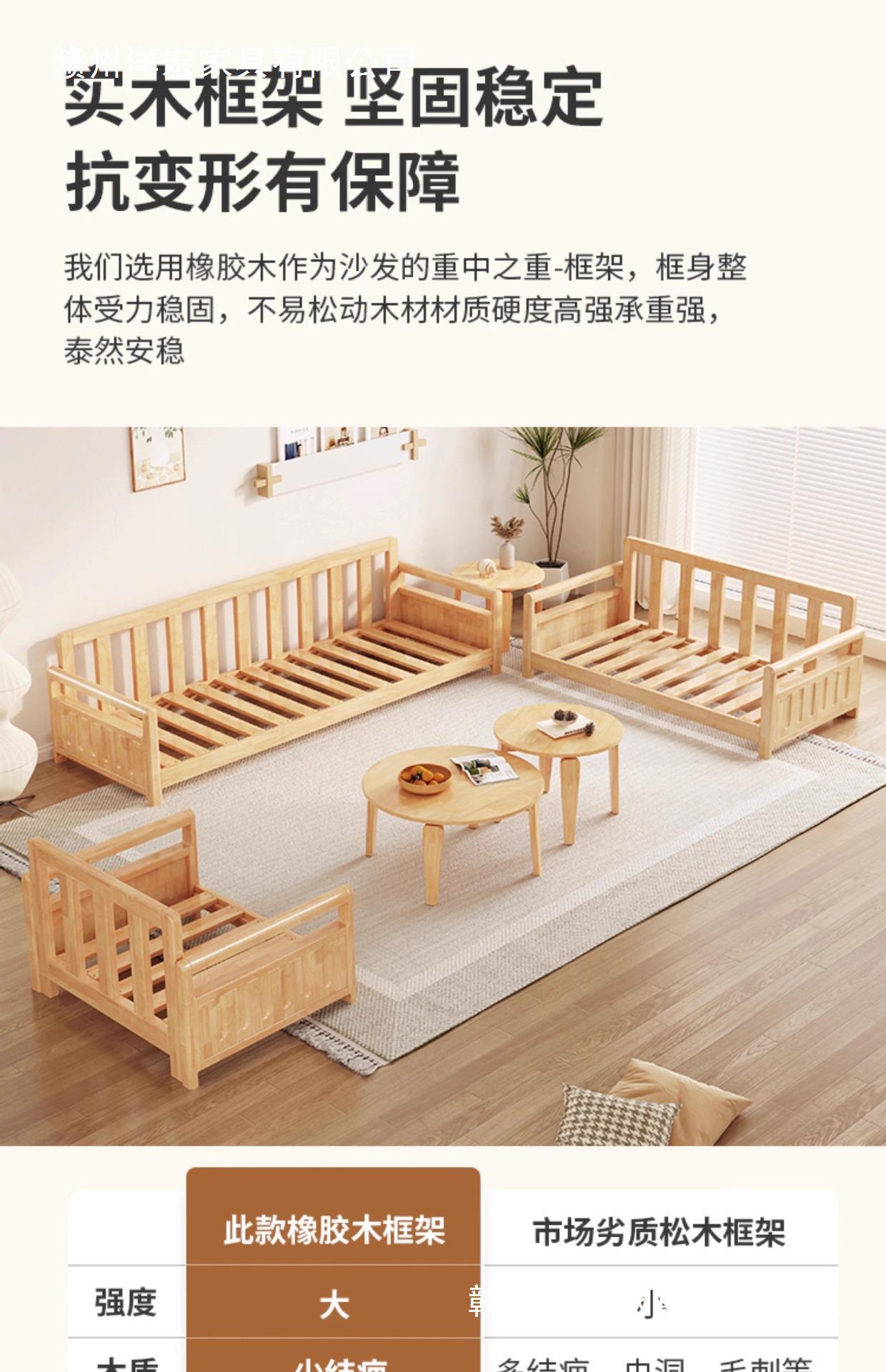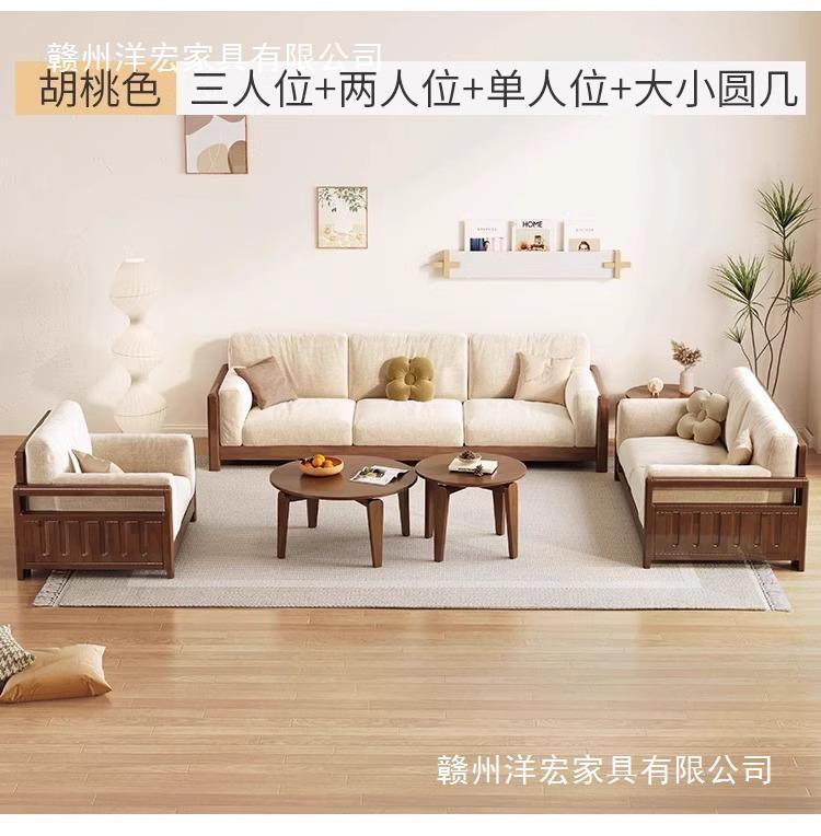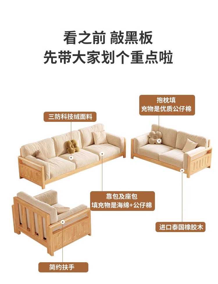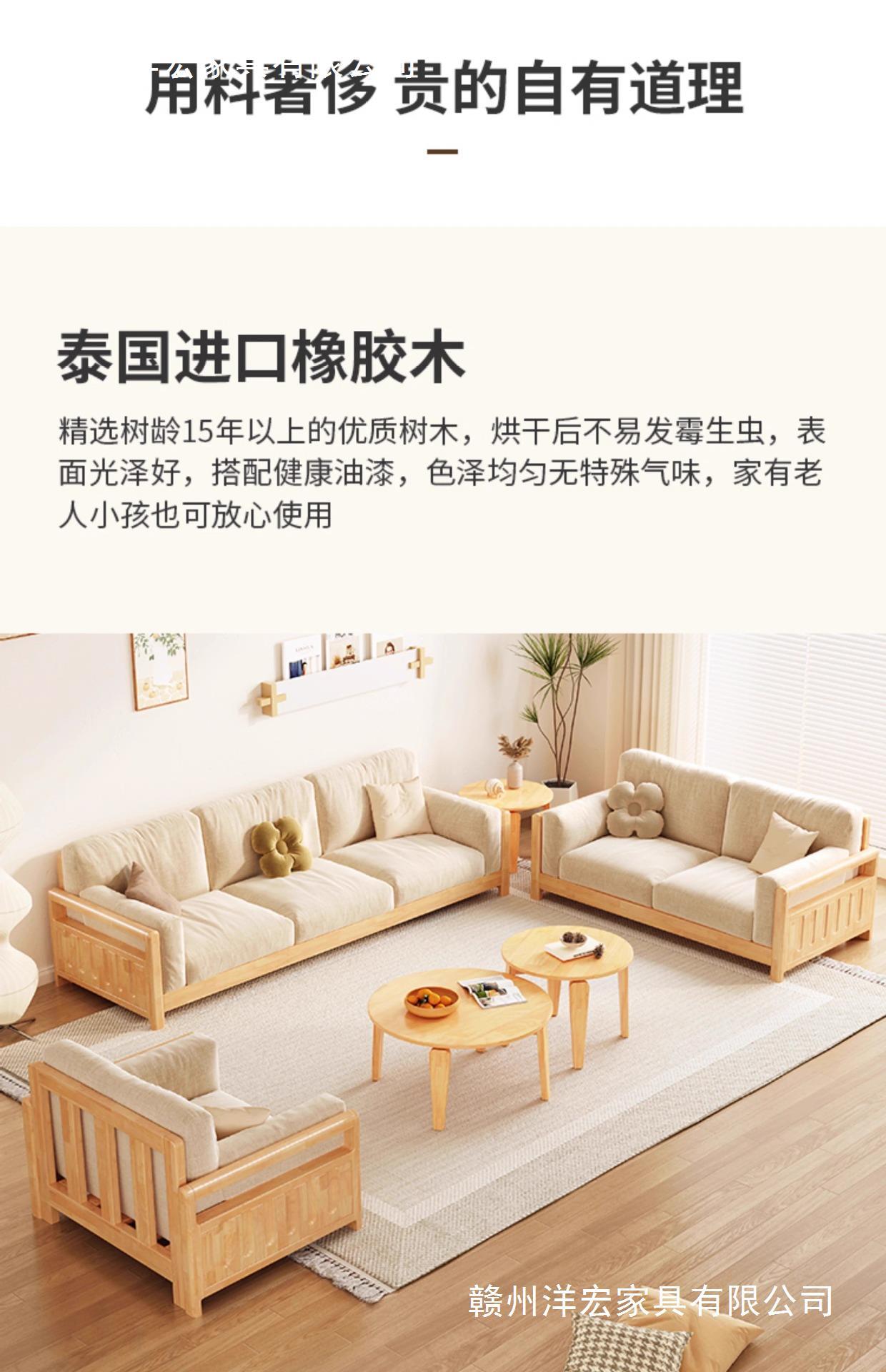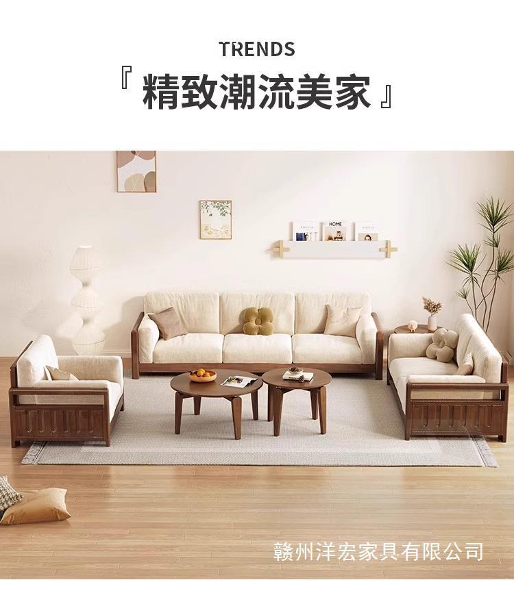 Sofá de madera sólida estilo nórdico japonés sala de estar pequeño moderno simple tela de madera de madera de estilo crema sofá de madera sólida