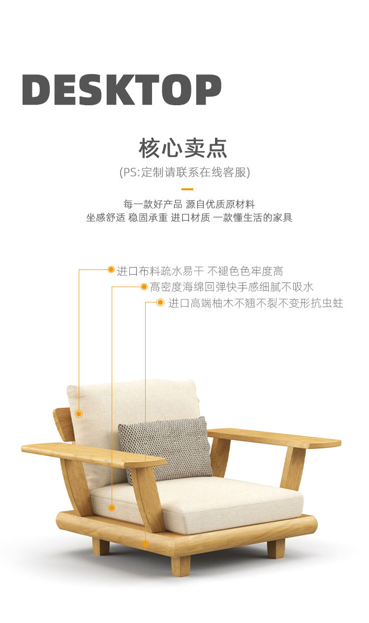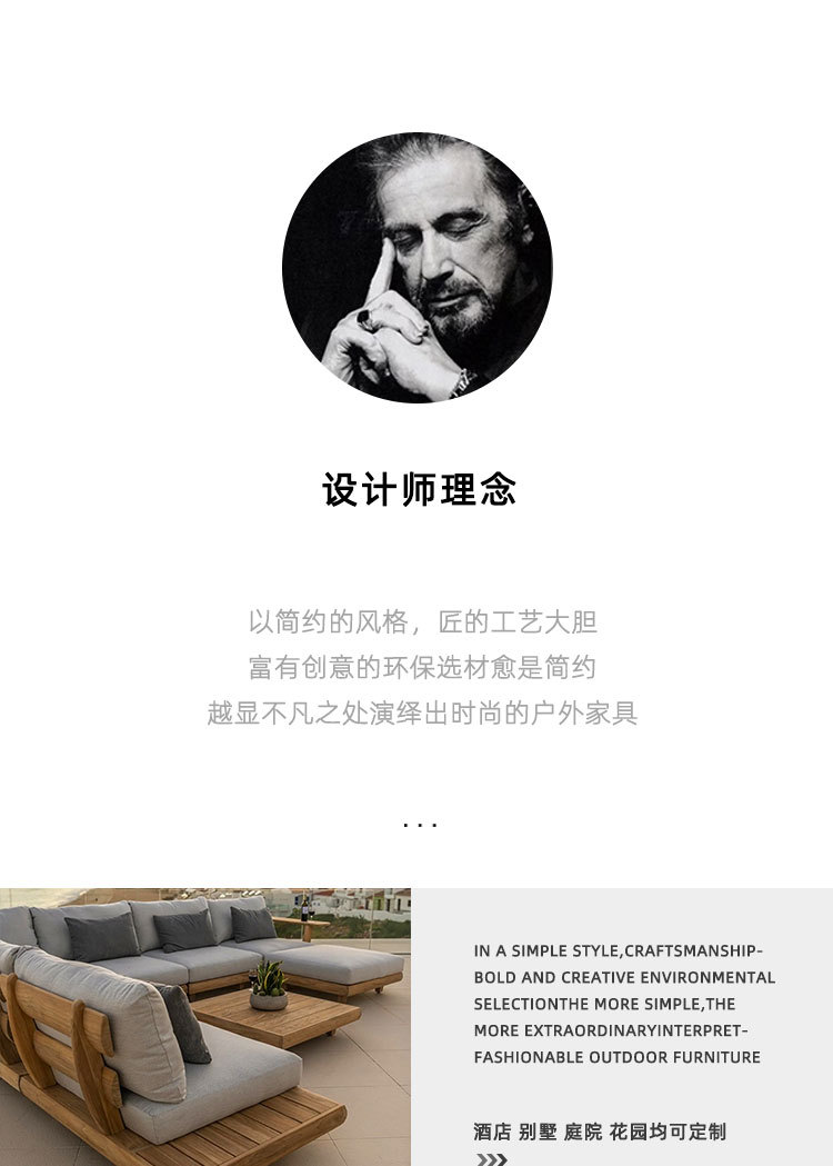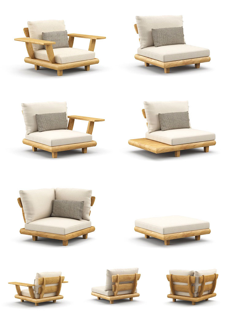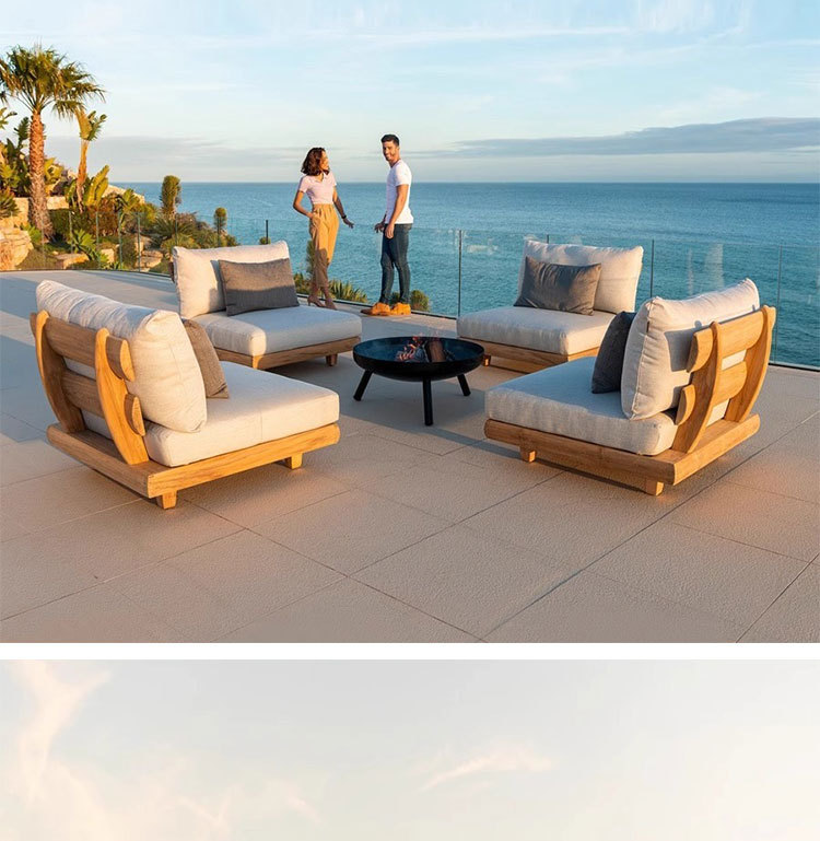 Sofá de teca al aire libre, patio, terraza, jardín de ocio, mesa de centro de ratán perezoso de madera maciza de alta gama, muebles combinados