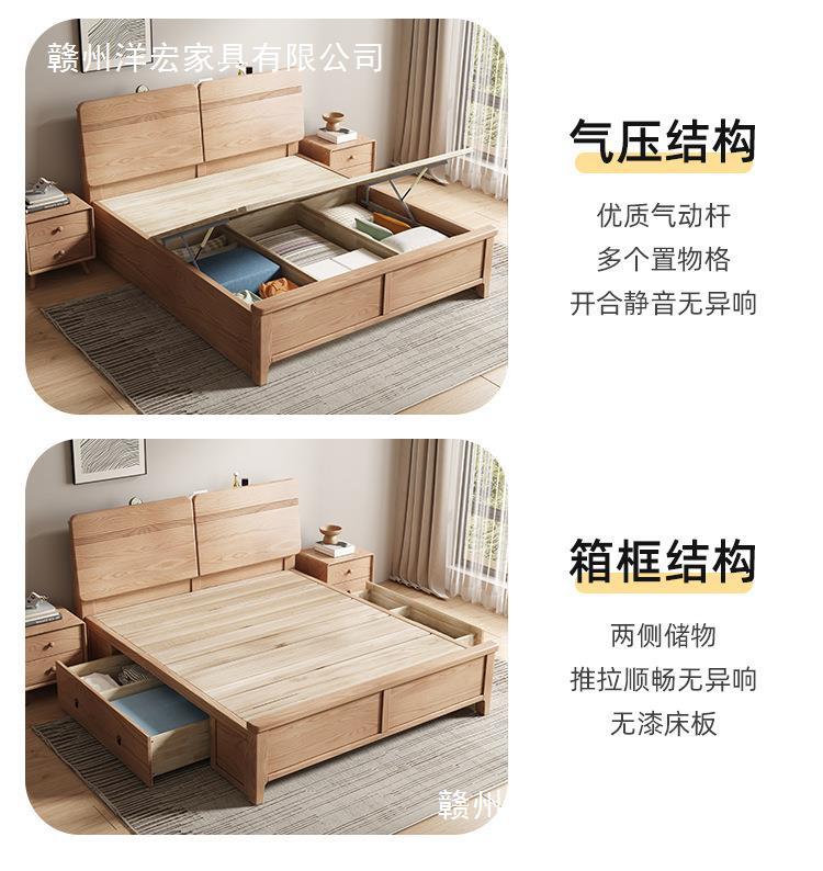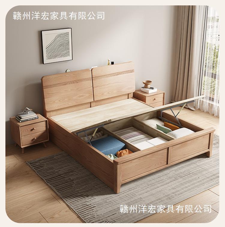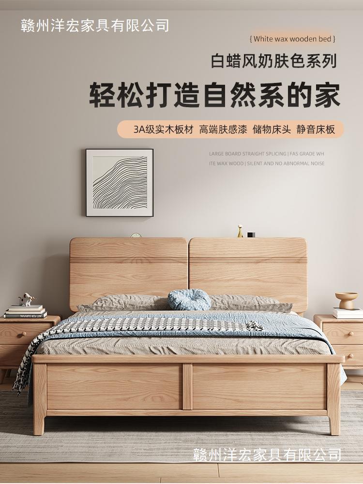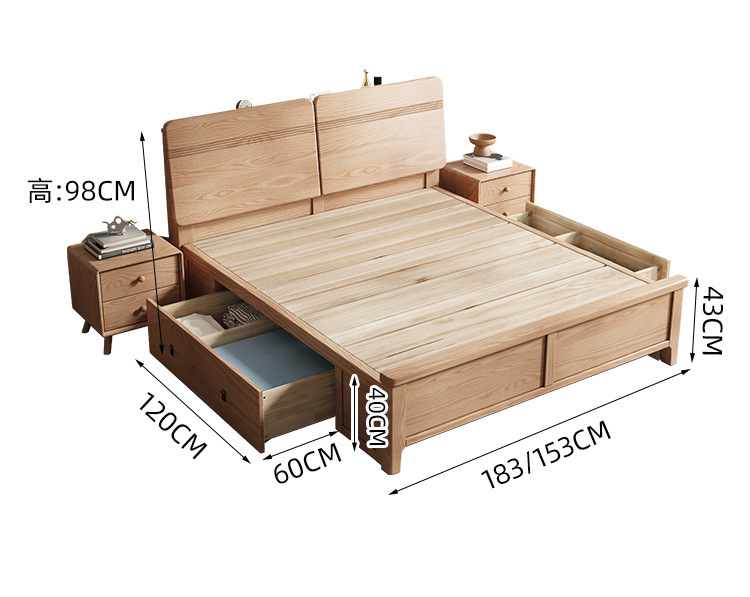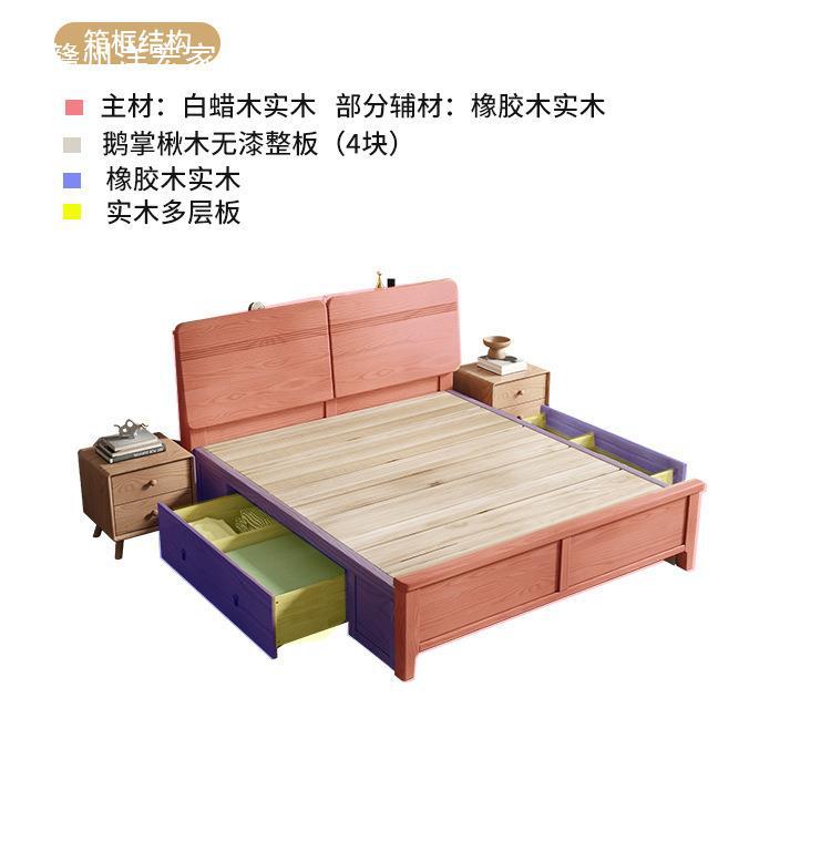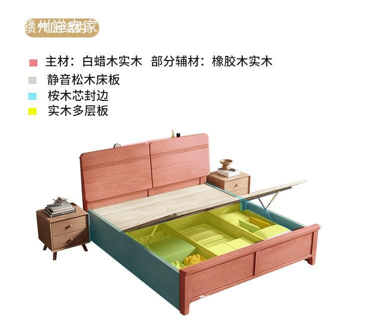 Madera sólida nórdica 1.8m madera de cera alta caja de almacenamiento cama doble 1.5m alquiler de hotel de alquiler de muebles de cama al por mayor