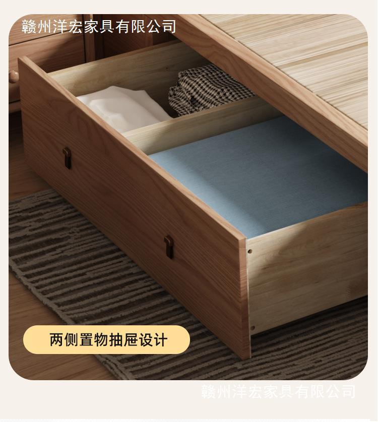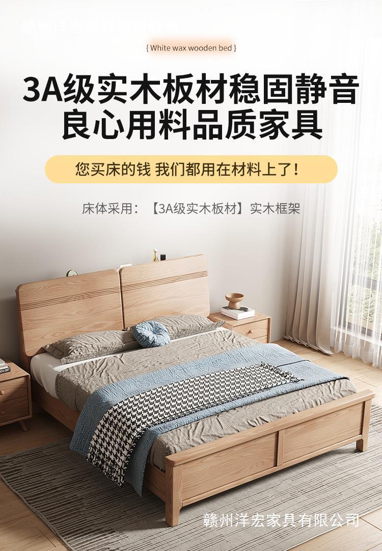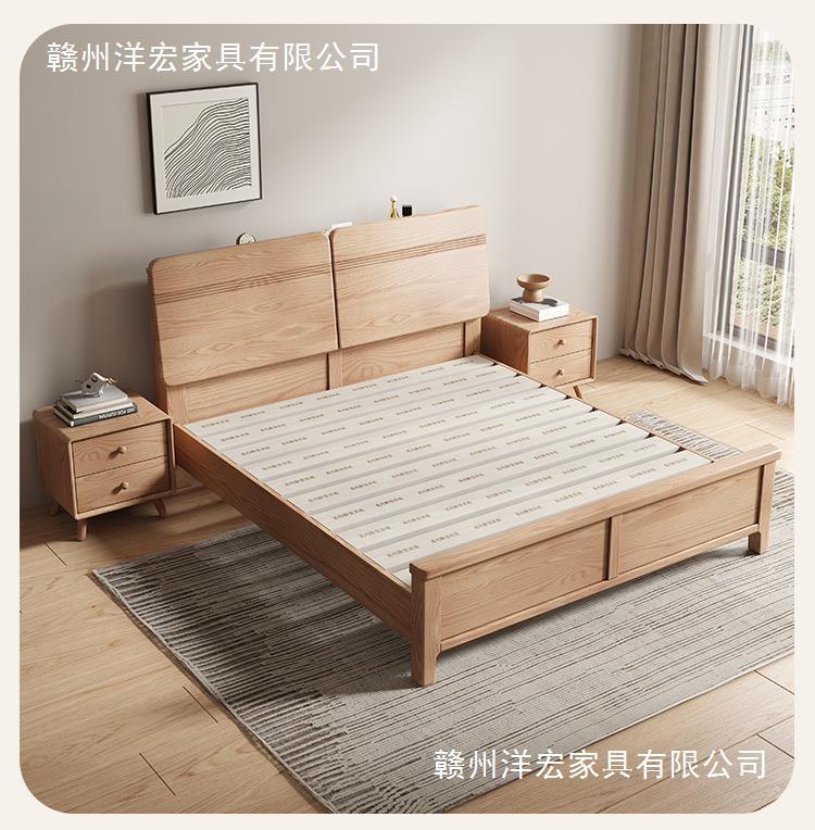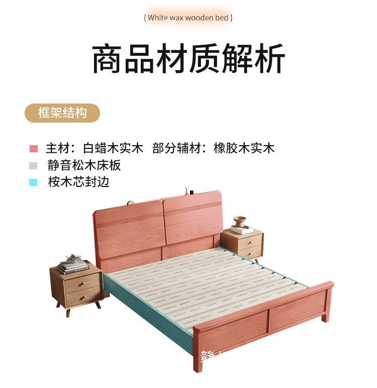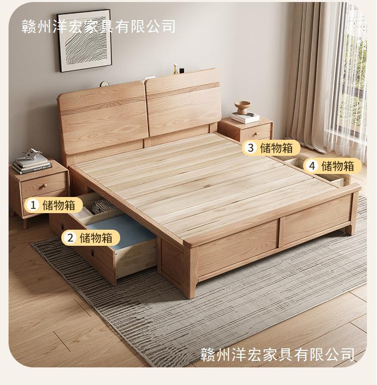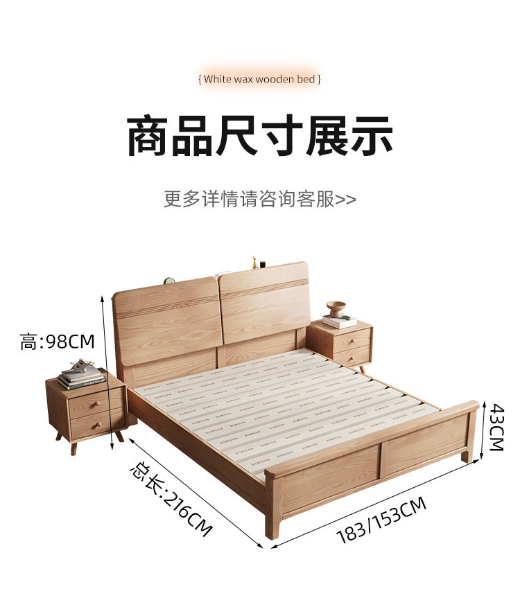 Madera sólida nórdica 1.8m madera de cera alta caja de almacenamiento cama doble 1.5m alquiler de hotel de alquiler de muebles de cama al por mayor