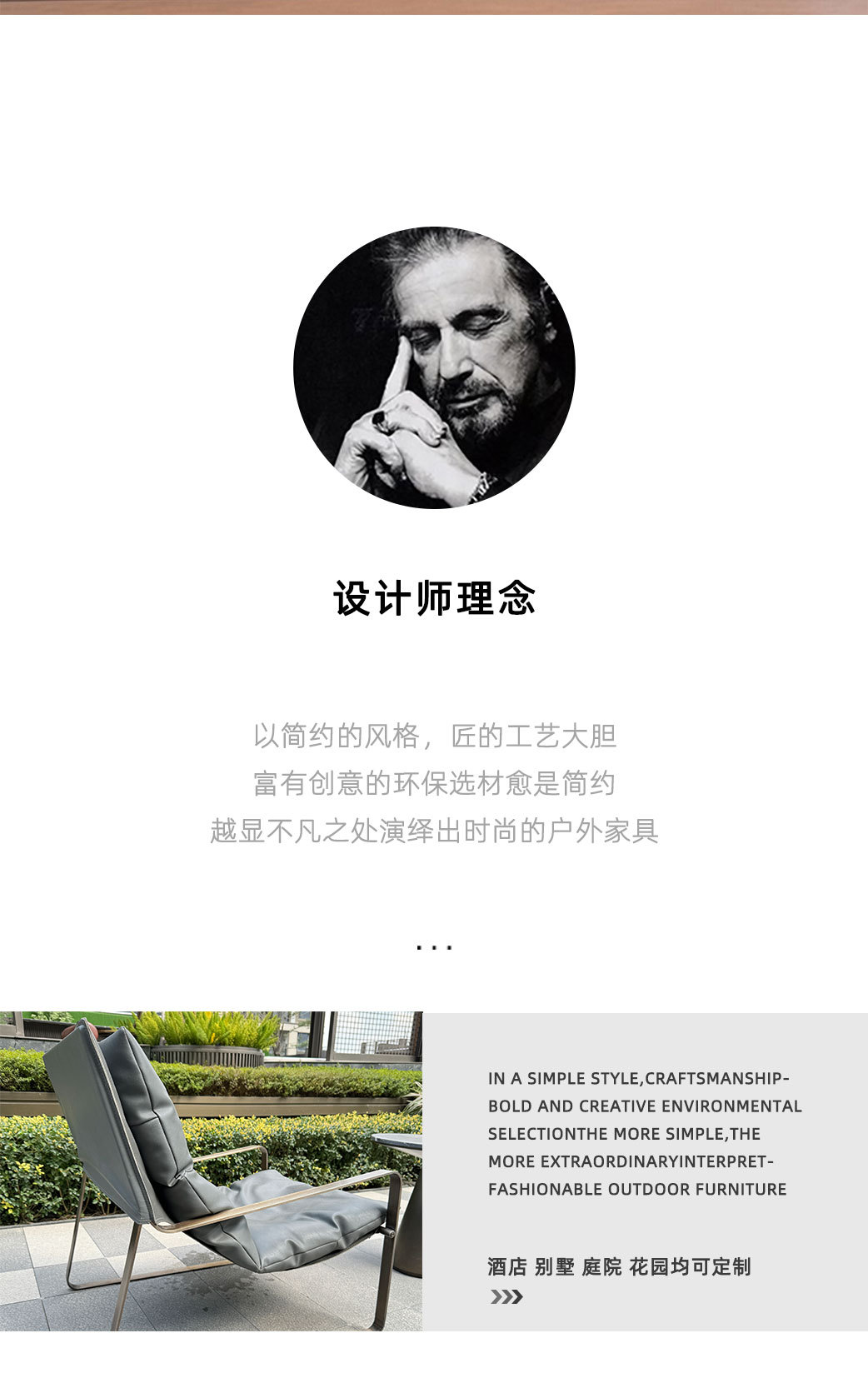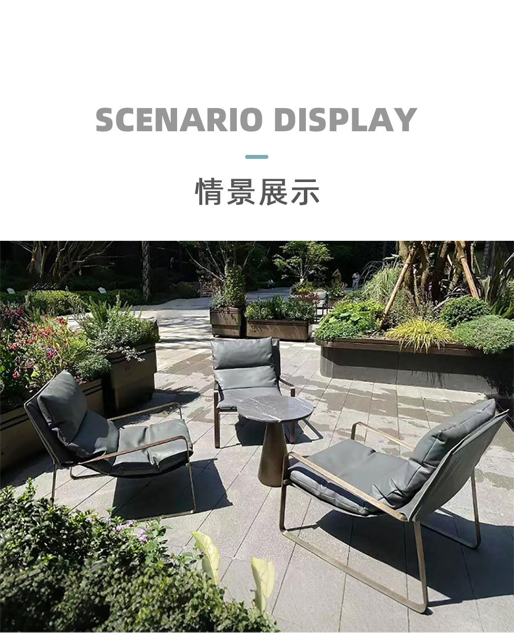 Sofá y silla al aire libre Jardín municipal Paisaje Patio Casa de familia Departamento de ventas Balcón de acero inoxidable combinación de muebles de ocio