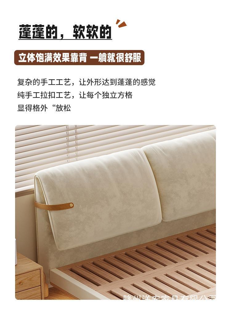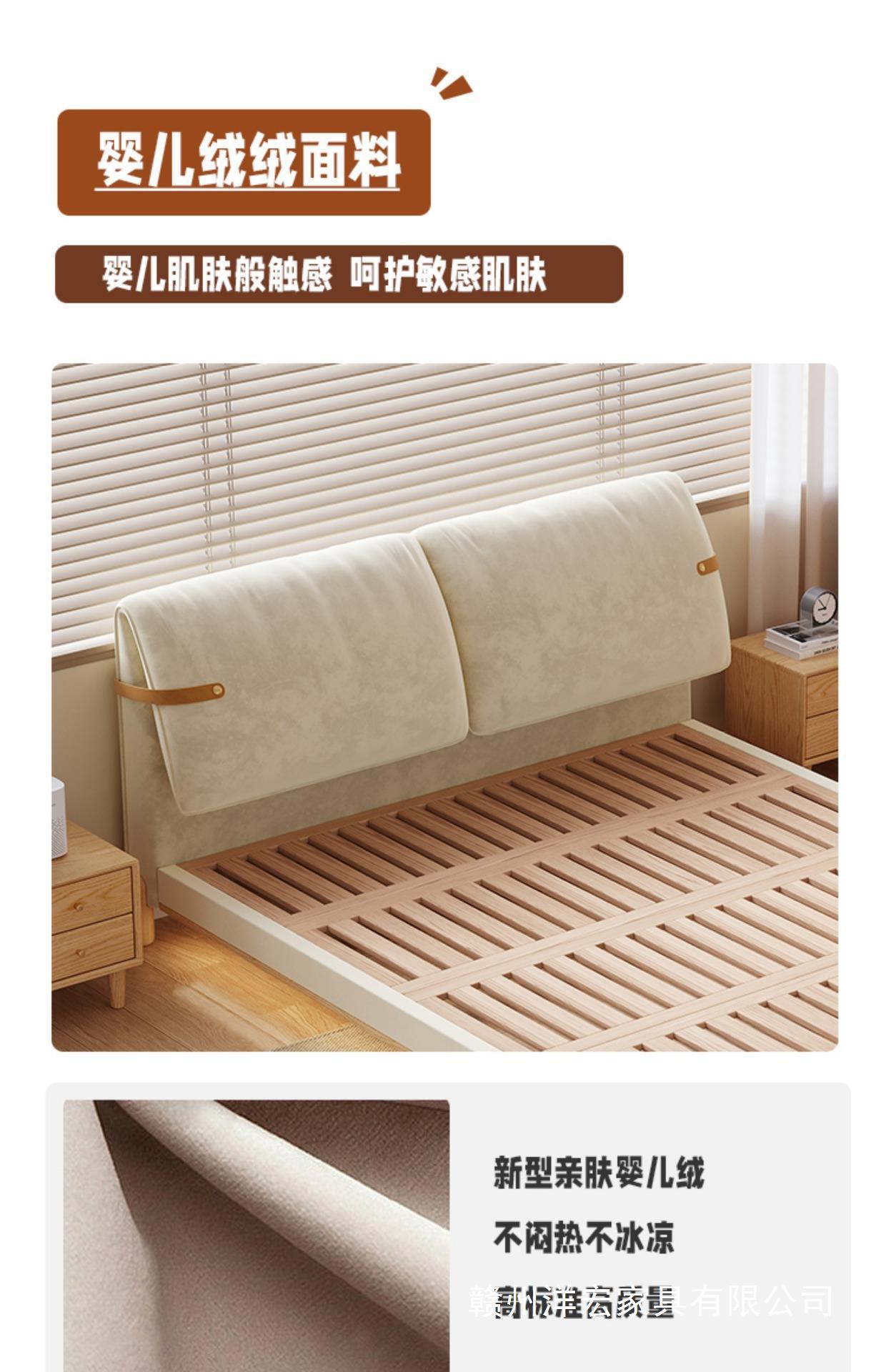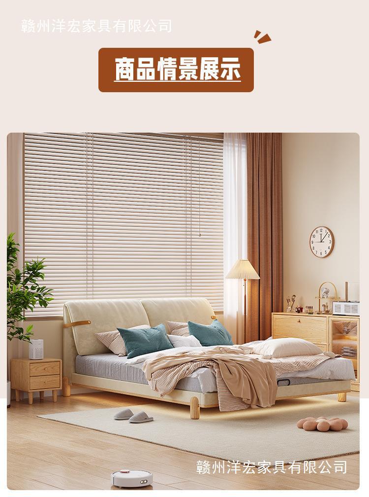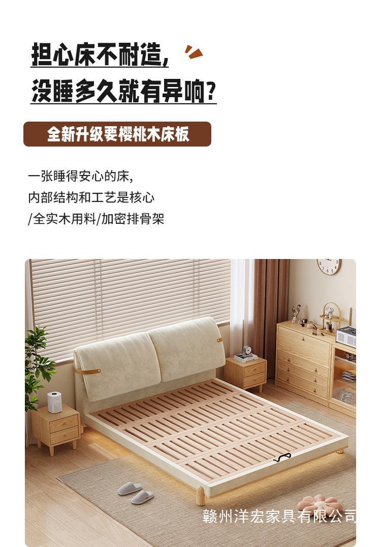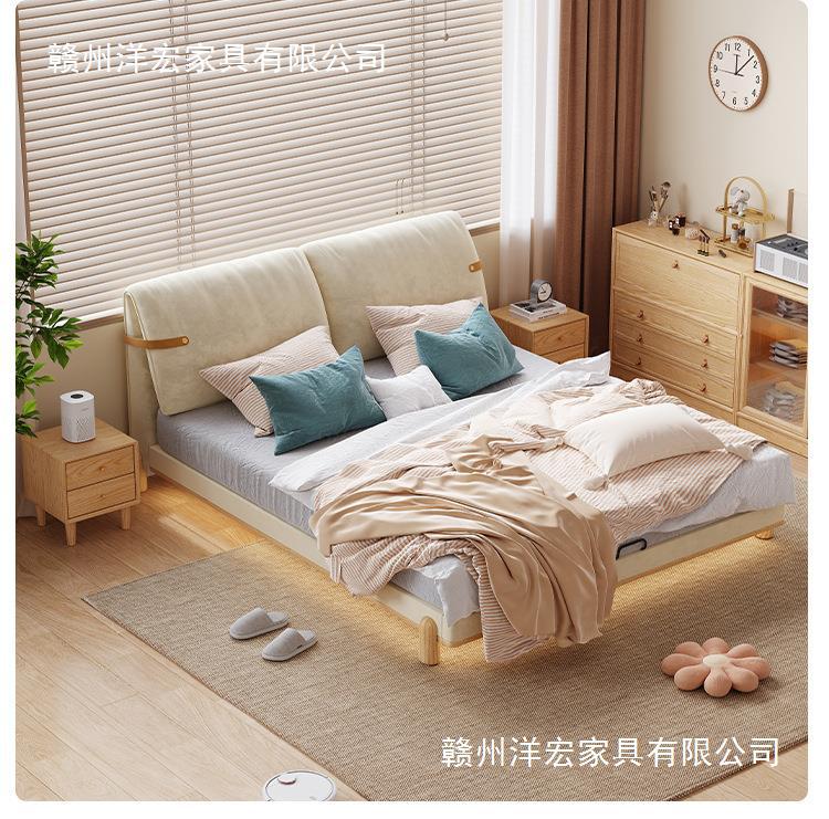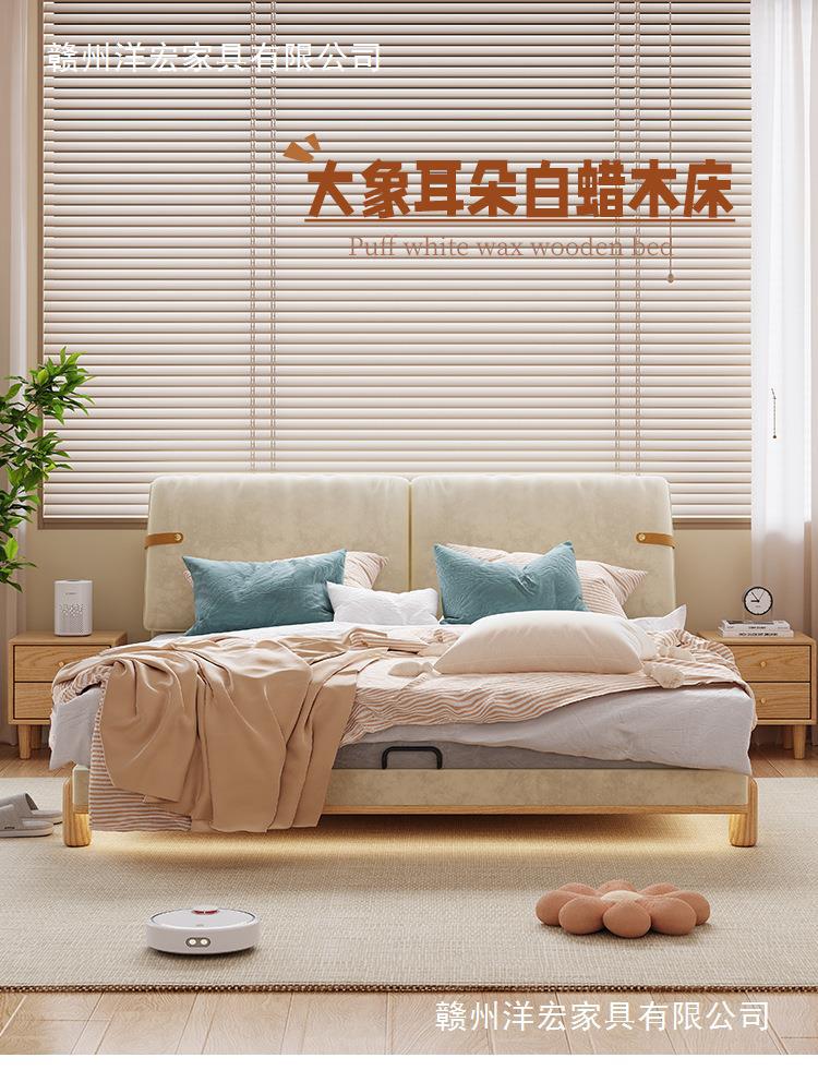 Cama de madera sólida de orejas moderna y simple estilo nórdico crema de viento pequeño dormitorio estilo japonés red de madera roja cama doble