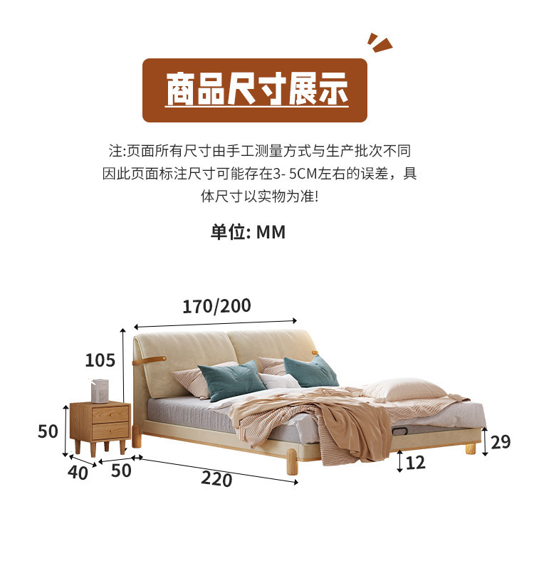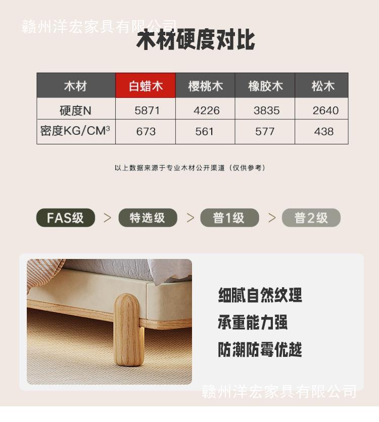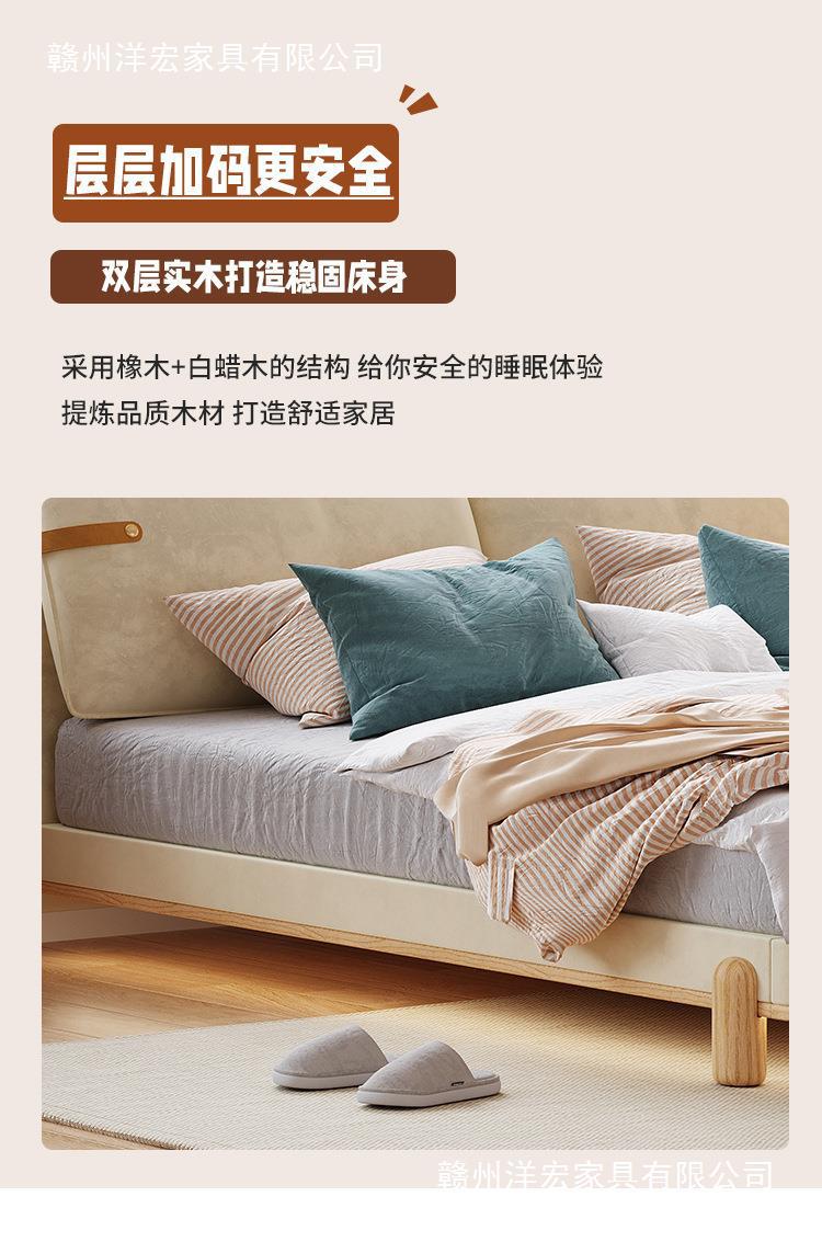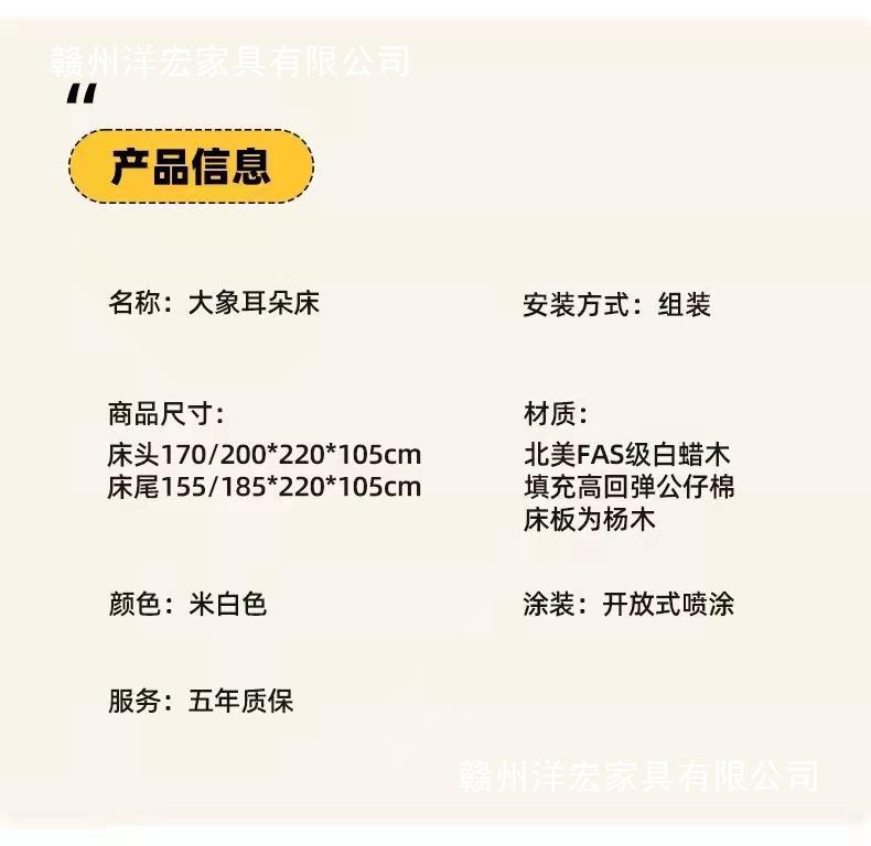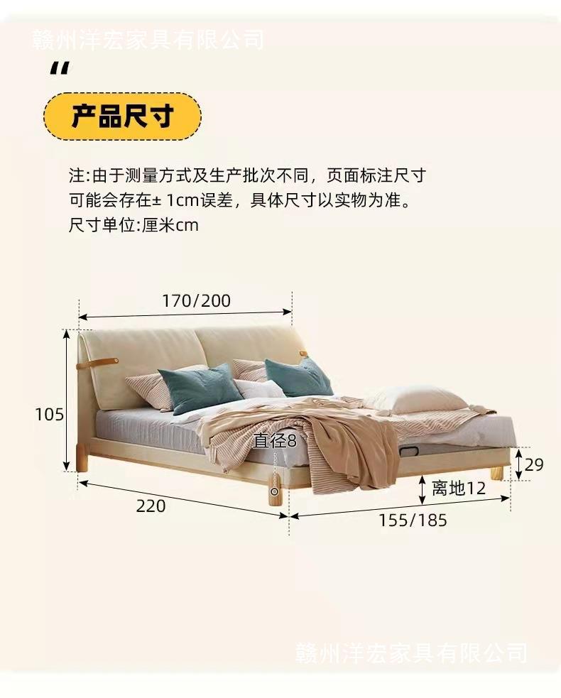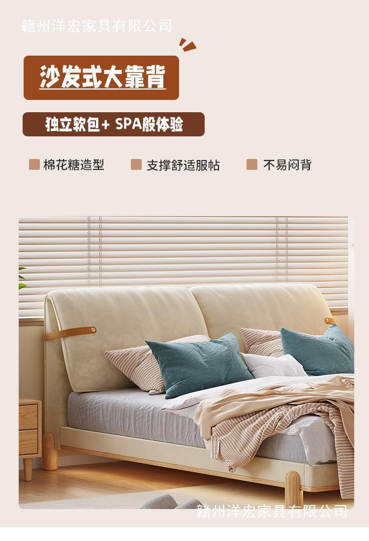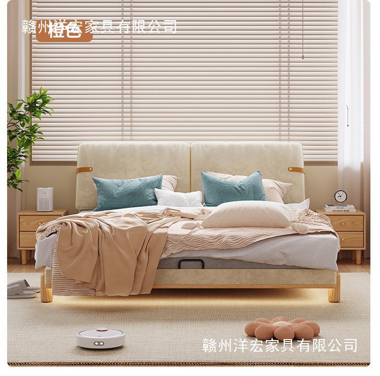 Cama de madera sólida de orejas moderna y simple estilo nórdico crema de viento pequeño dormitorio estilo japonés red de madera roja cama doble