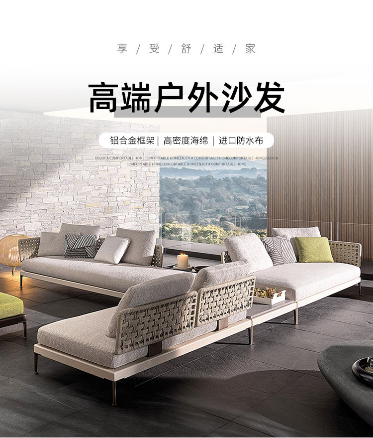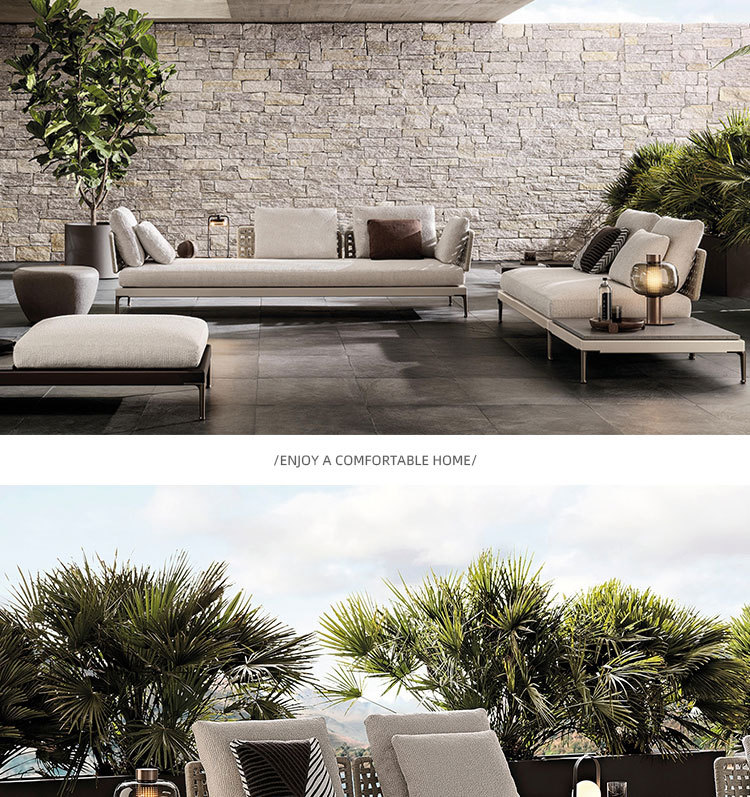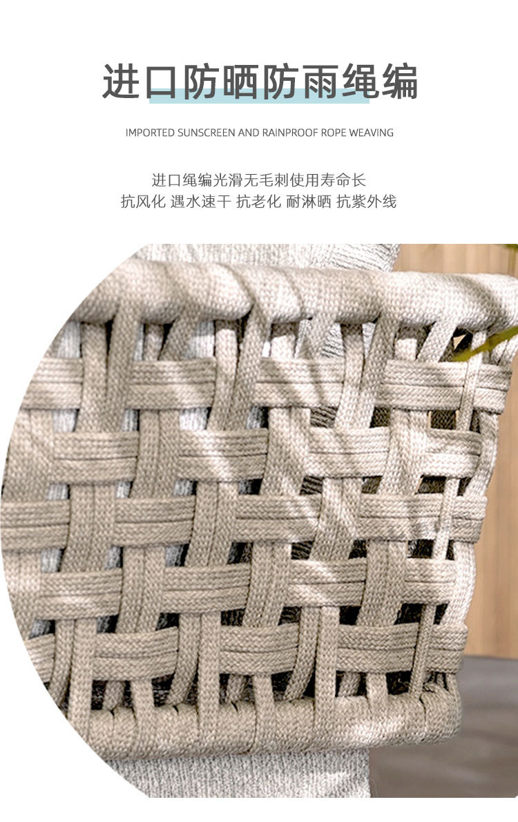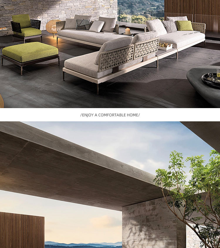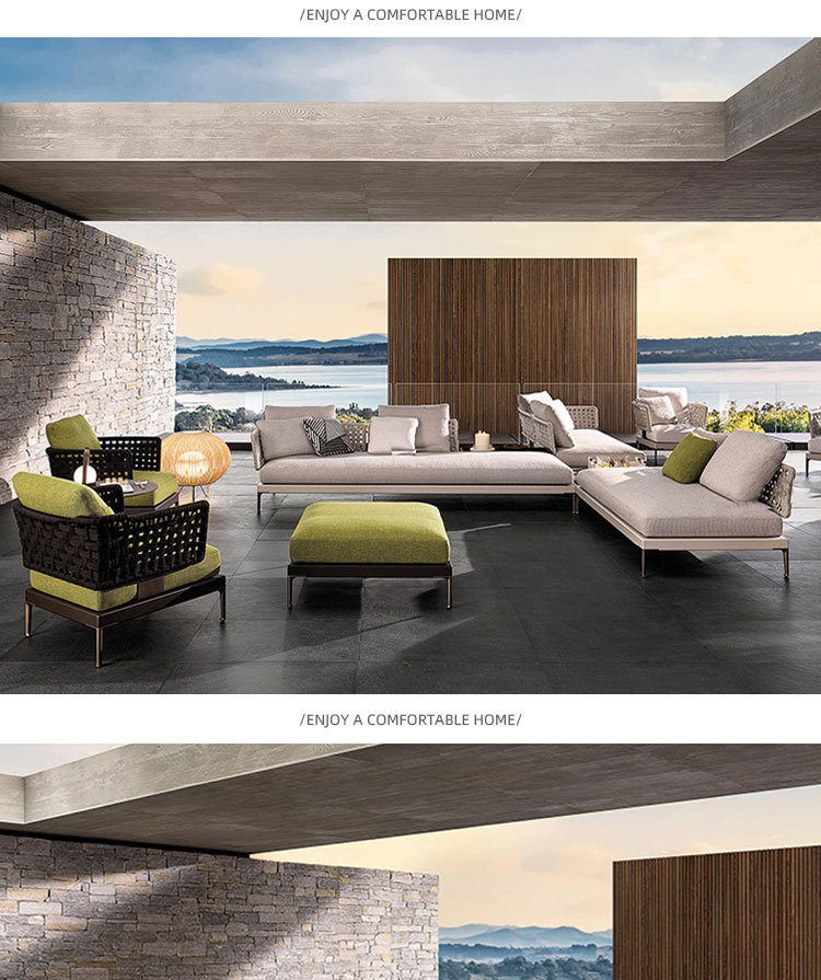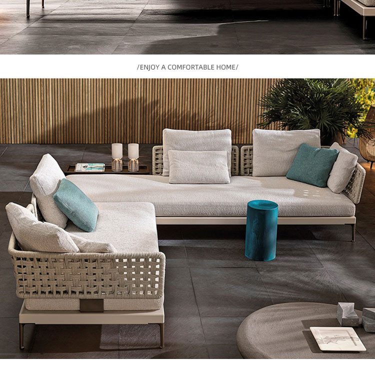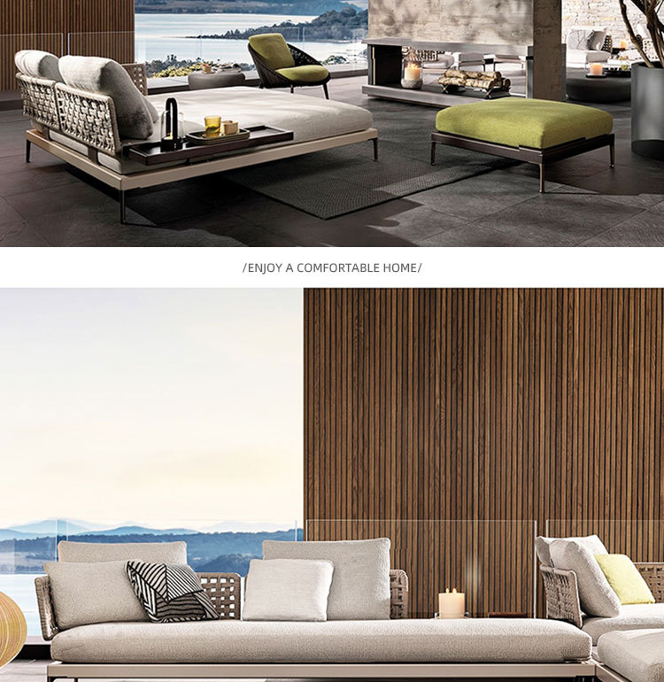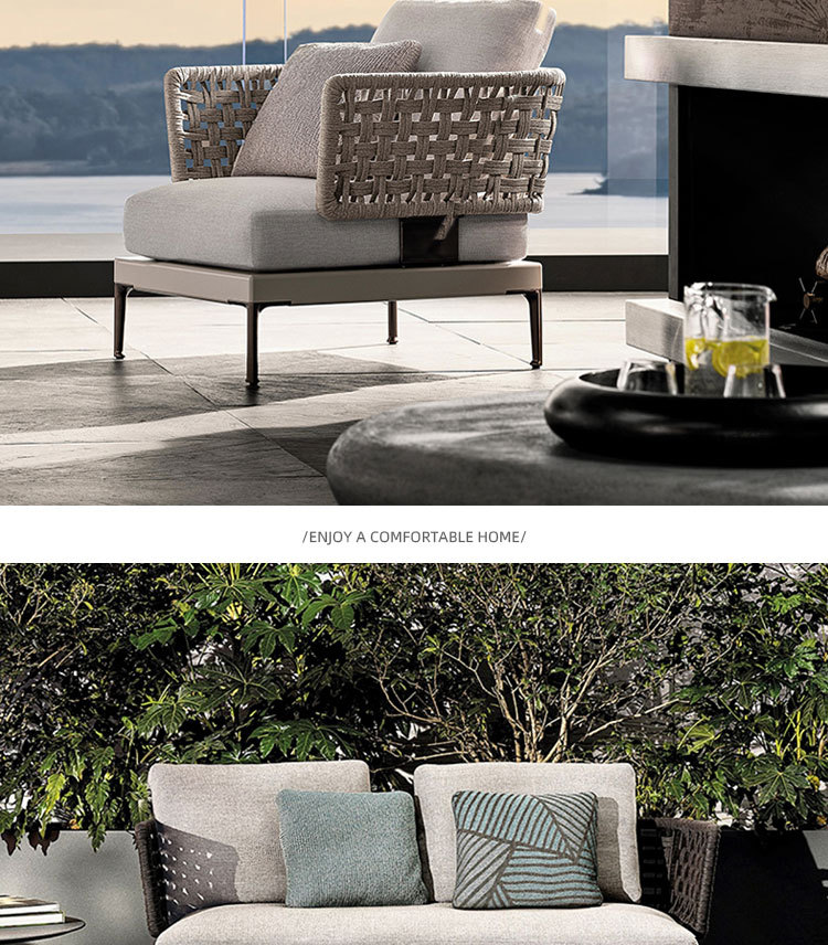 Combinación de sofá de ratán al aire libre Villa nórdica Patio Ocio Muebles de madera maciza Balcón Combinación de cuerda trenzada impermeable y solar