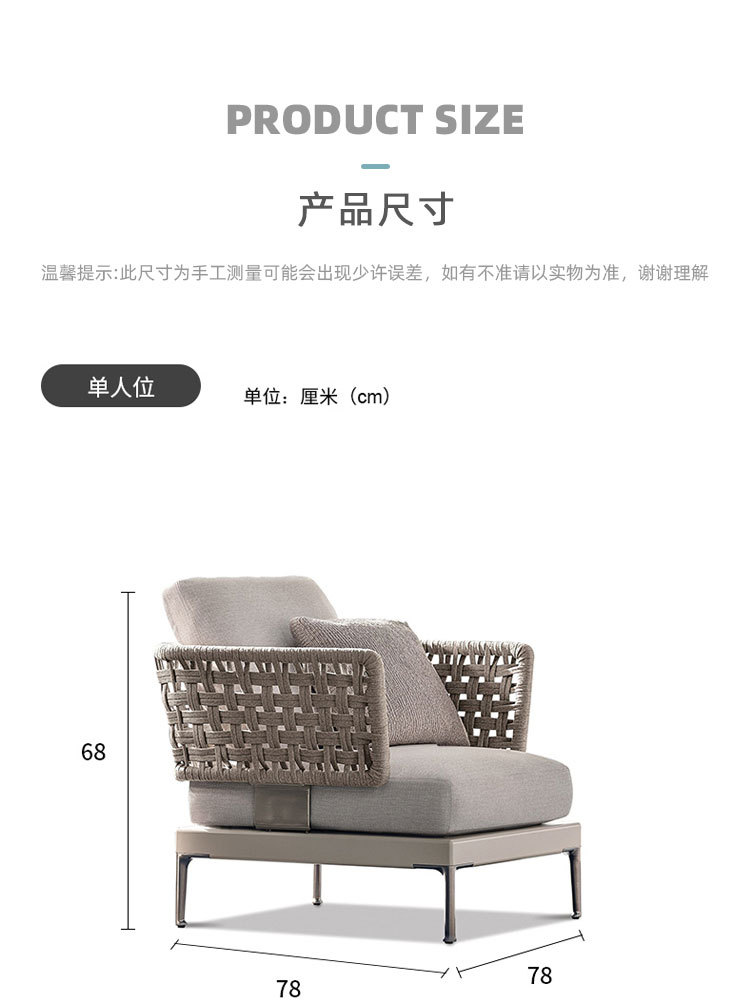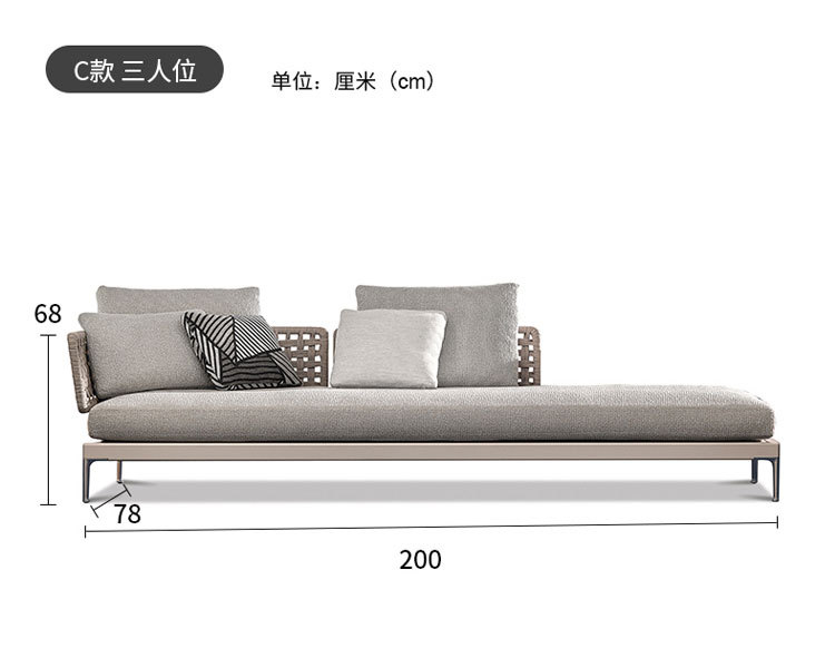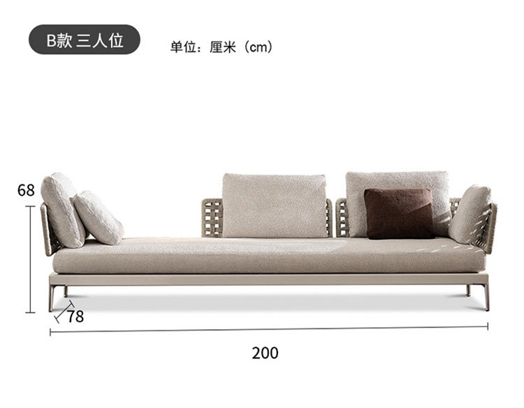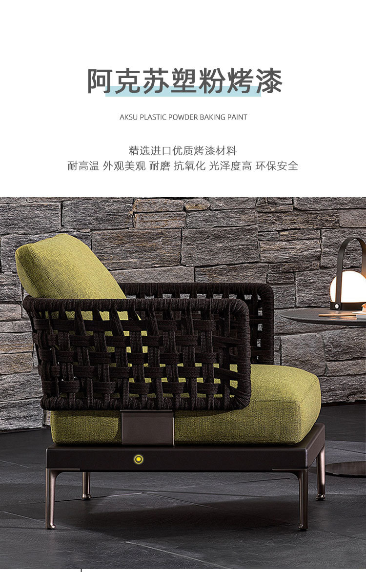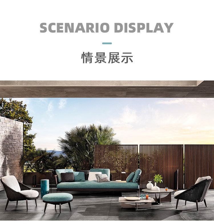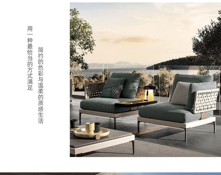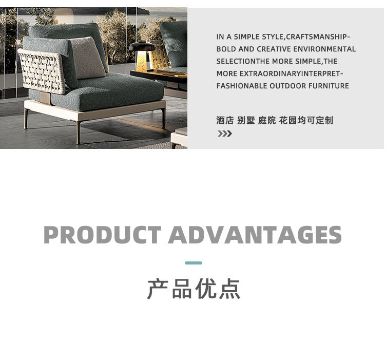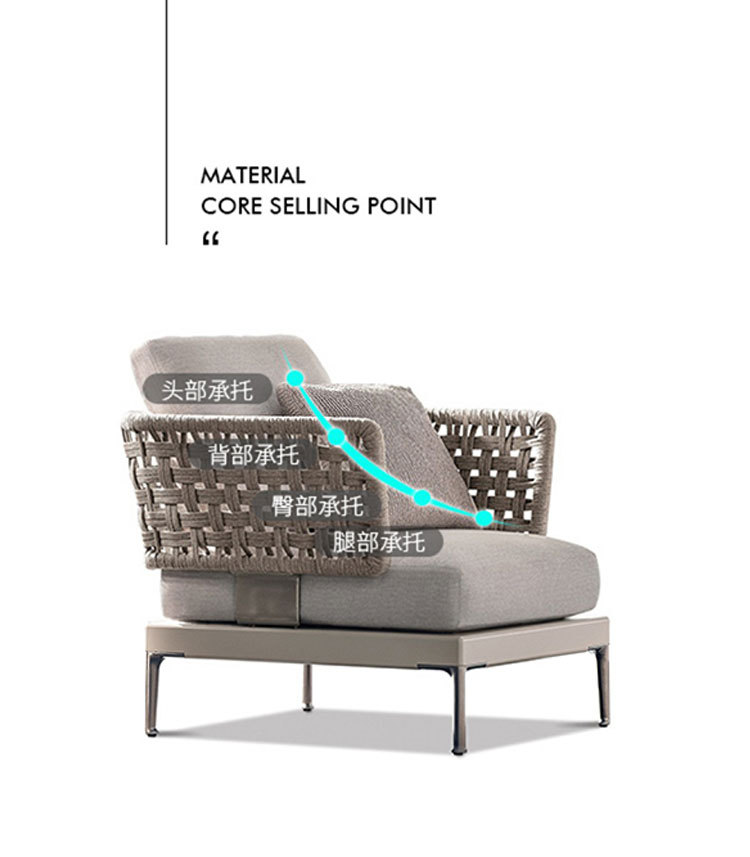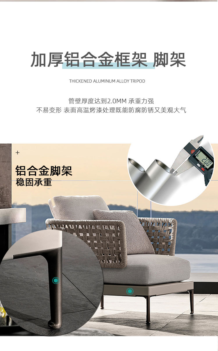Combinación de sofá de ratán al aire libre Villa nórdica Patio Ocio Muebles de madera maciza Balcón Combinación de cuerda trenzada impermeable y solar