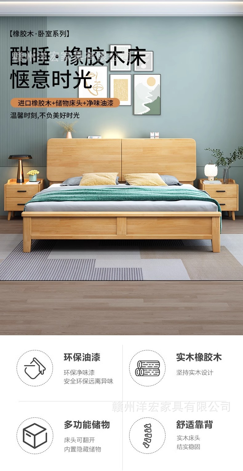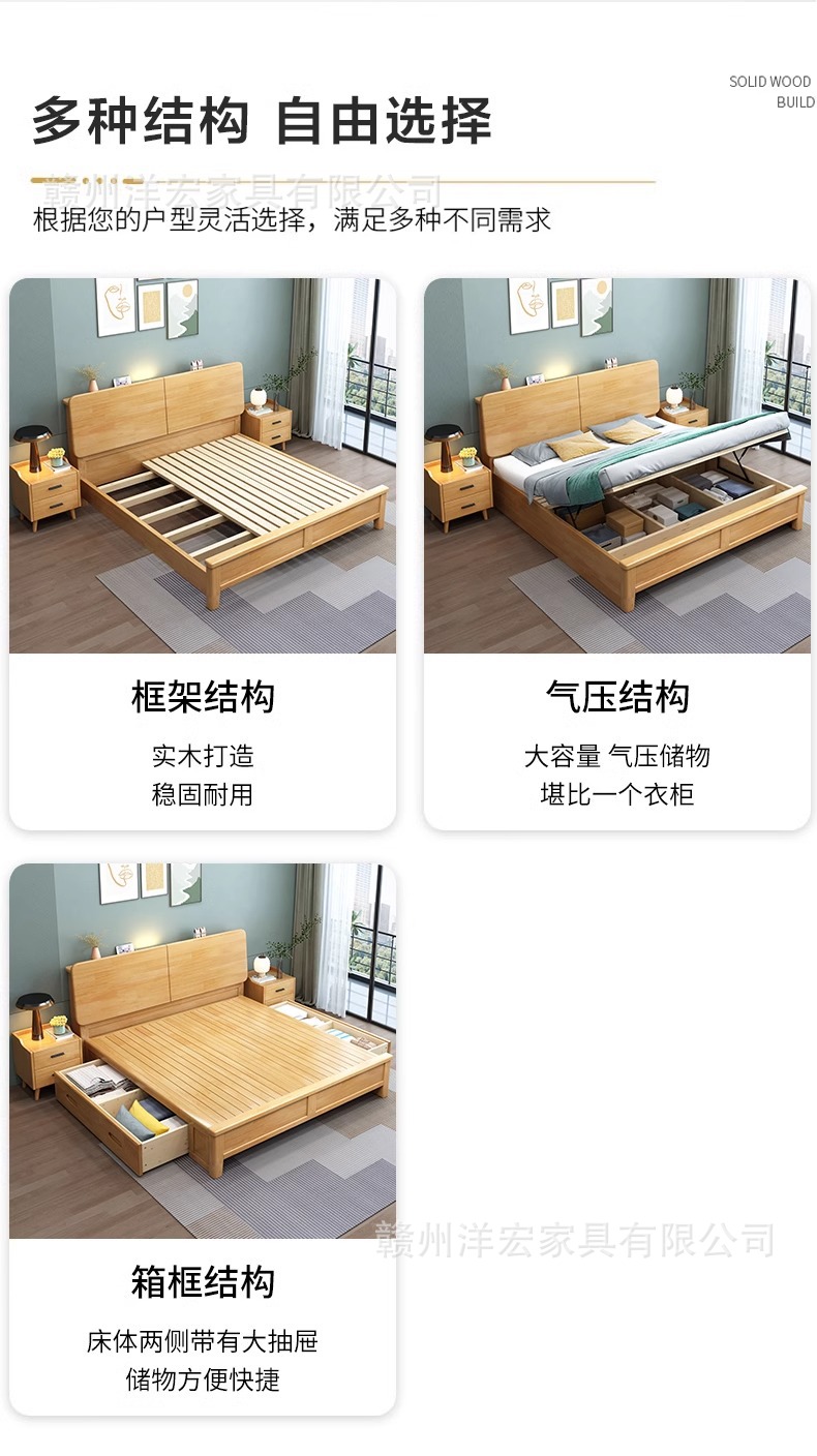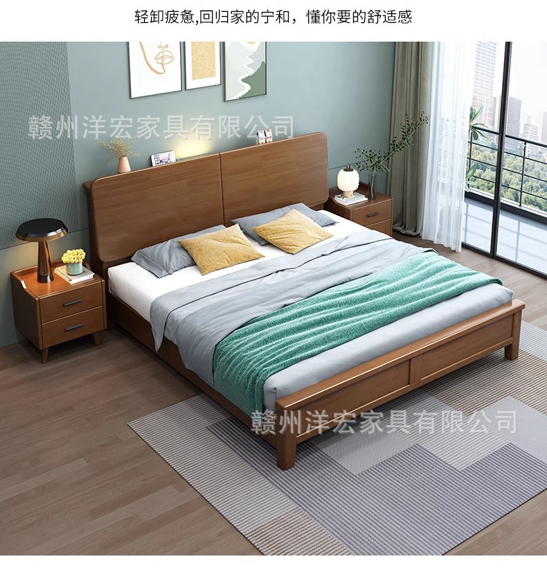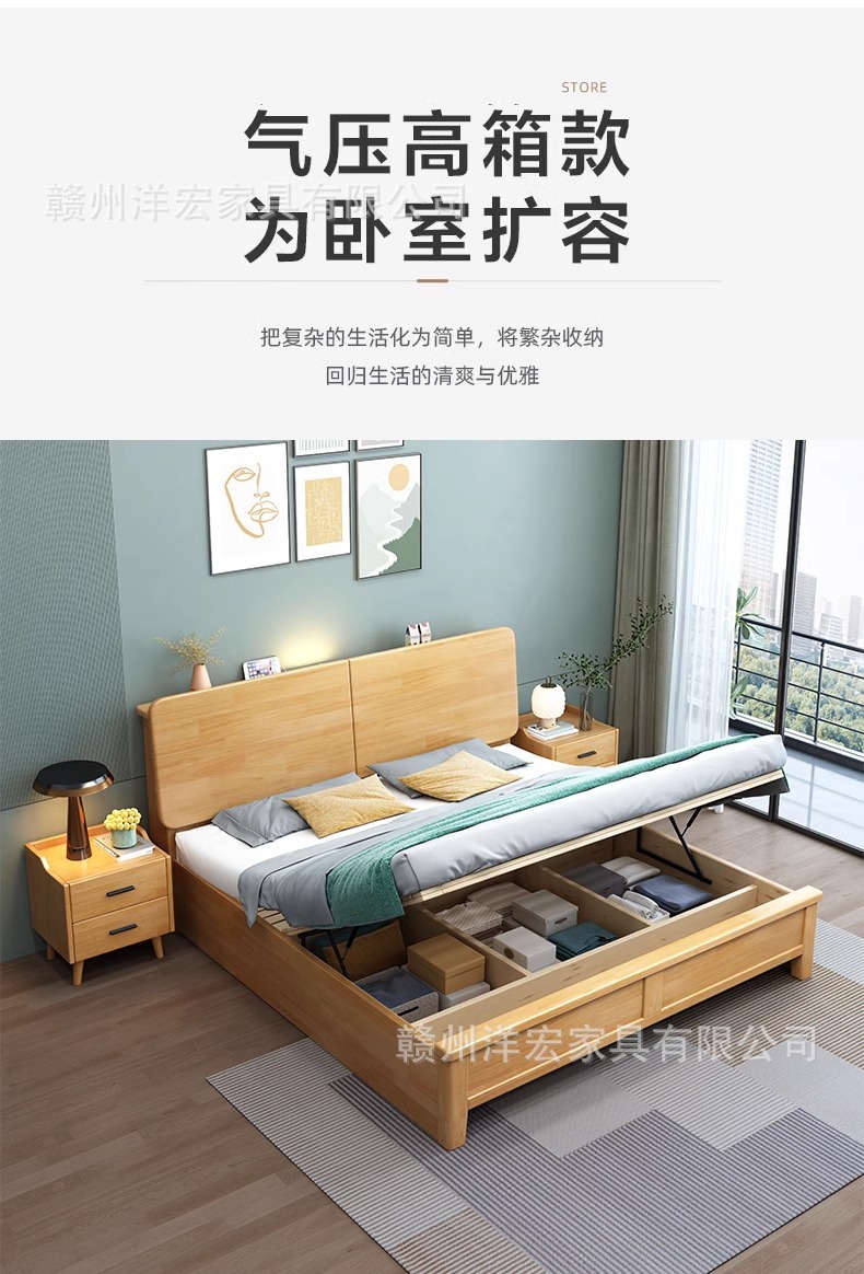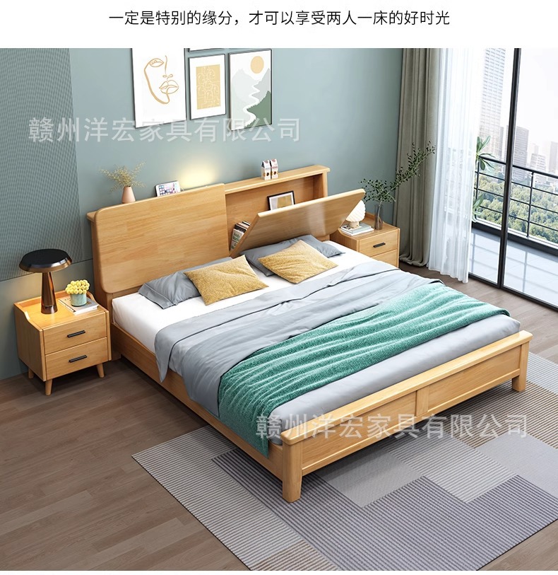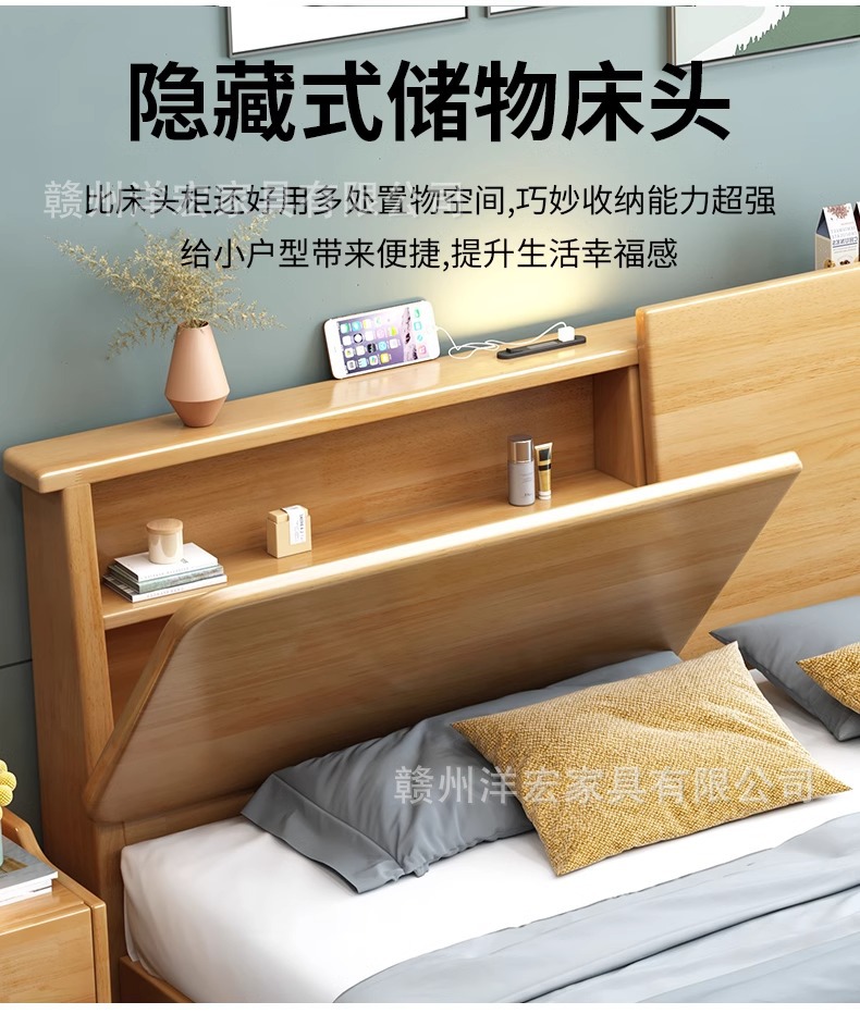 Cama de madera sólida nórdica de 1,5 m cabezal de cama de cabecera de cama de almacenamiento de 1,8 m dormitorio cama doble pequeña cama de alquiler