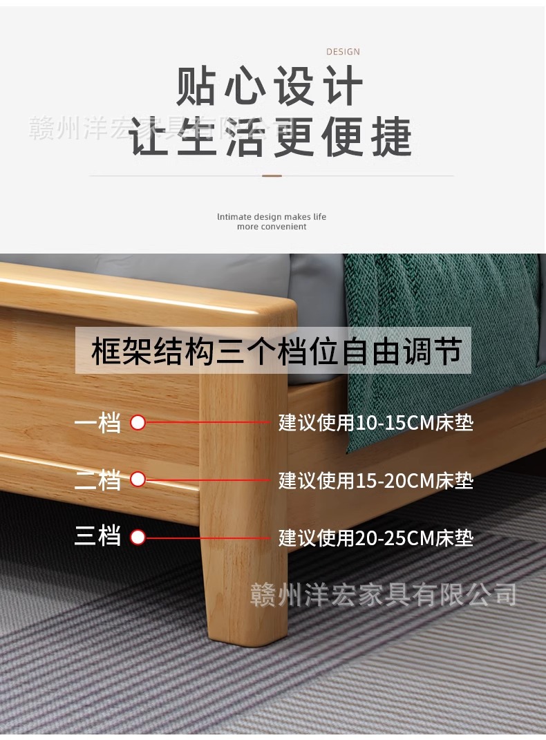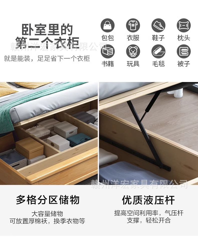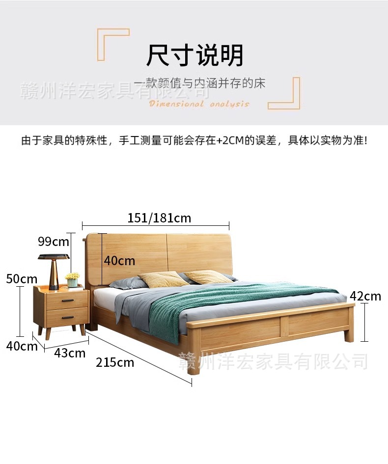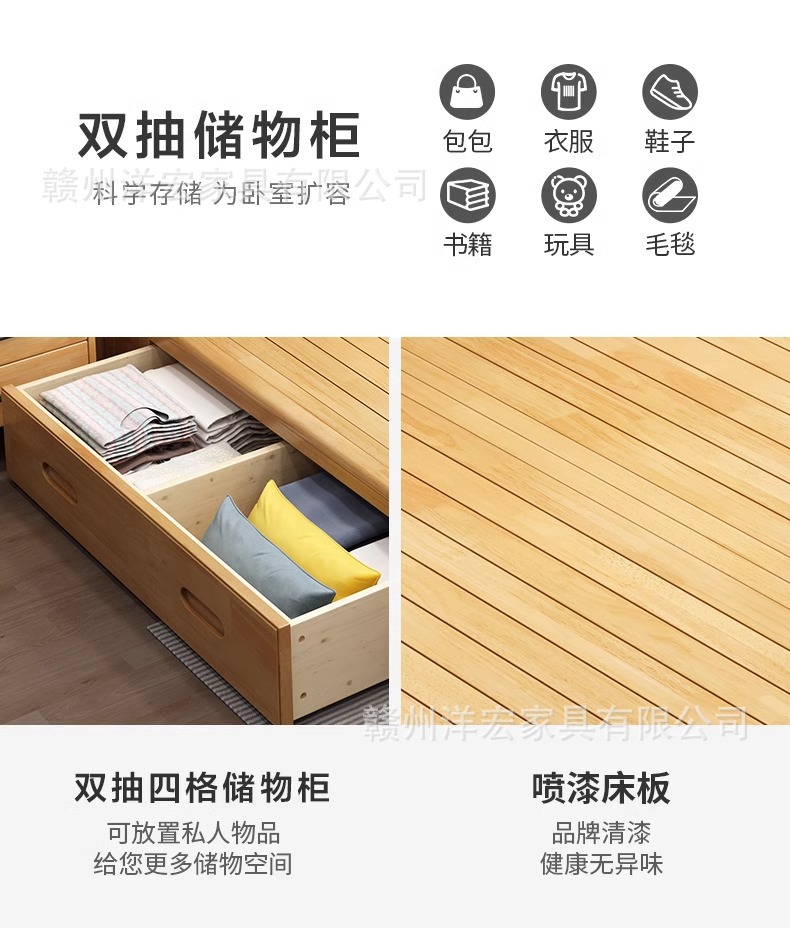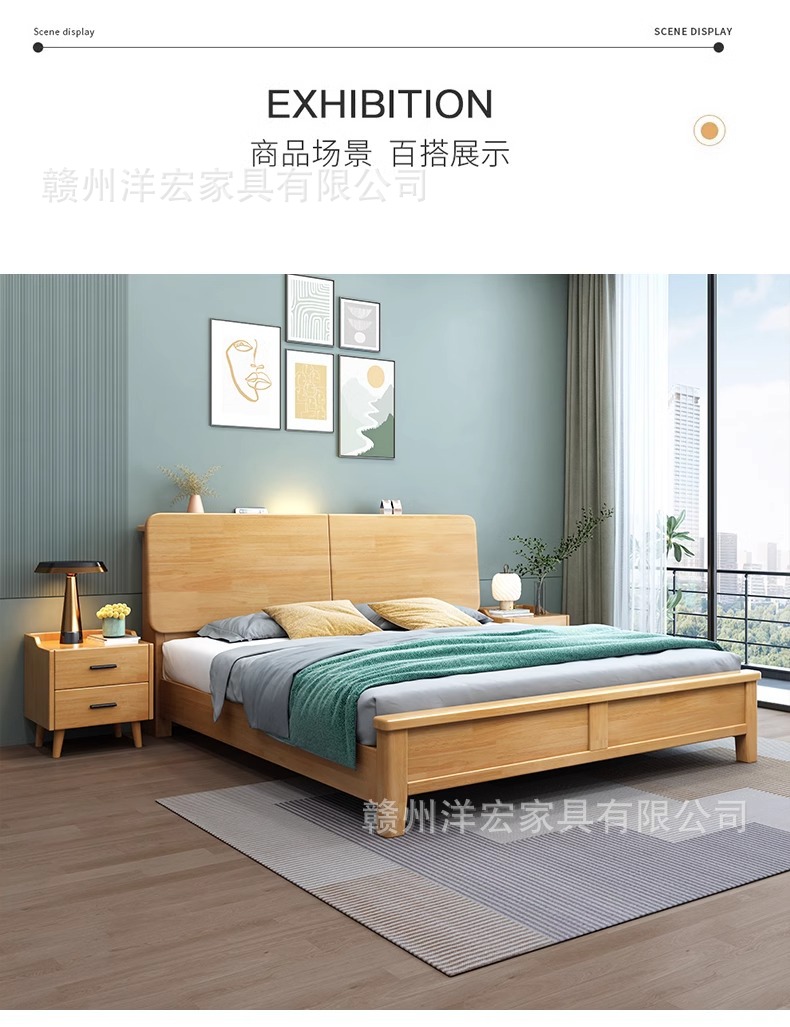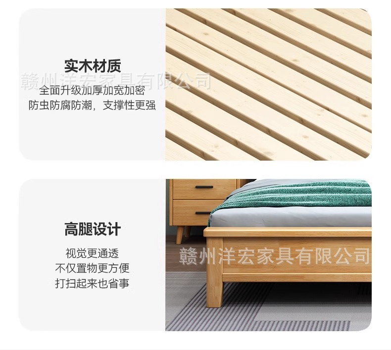 Cama de madera sólida nórdica de 1,5 m cabezal de cama de cabecera de cama de almacenamiento de 1,8 m dormitorio cama doble pequeña cama de alquiler