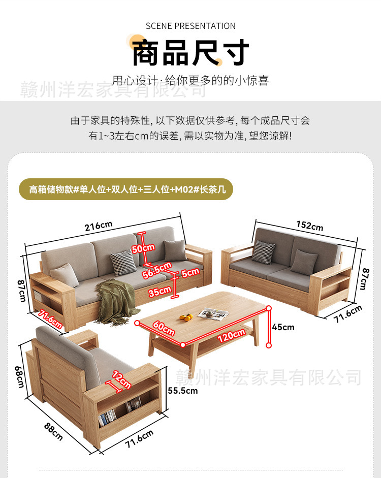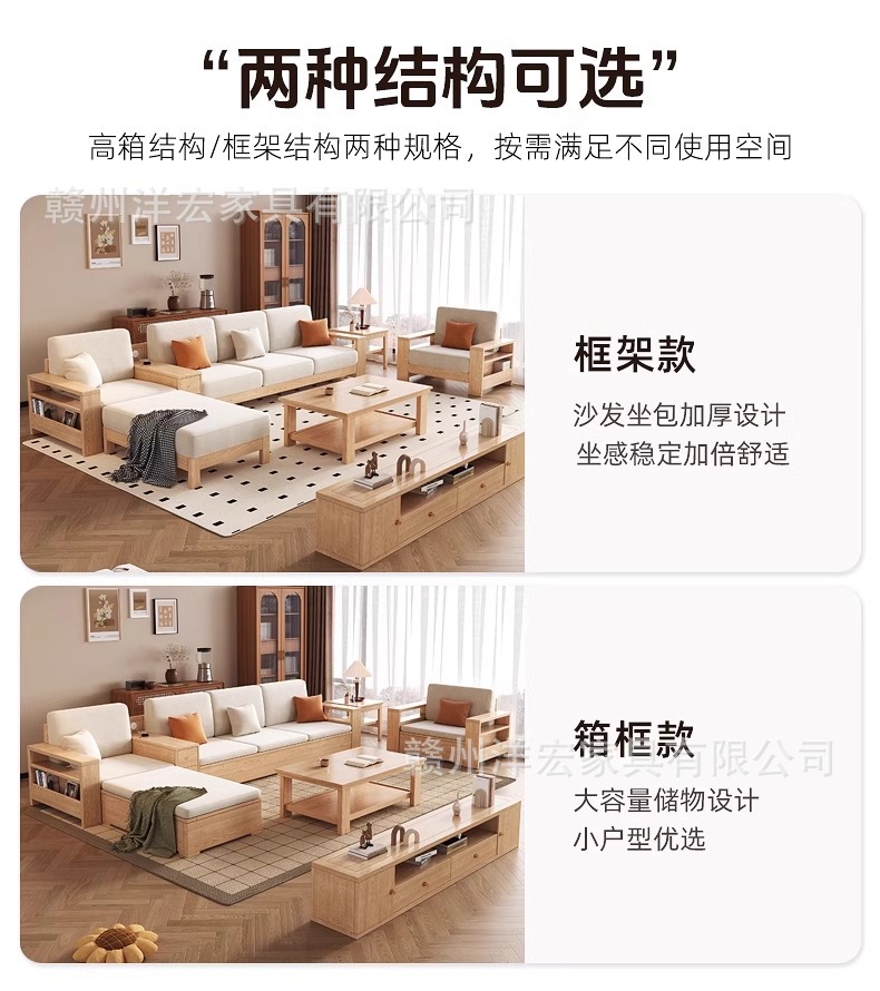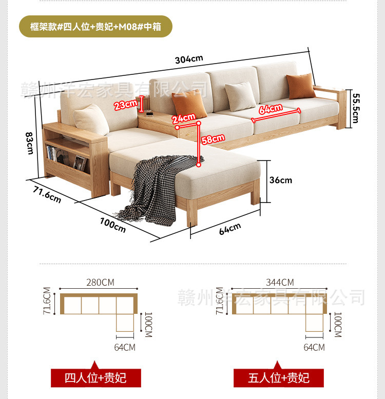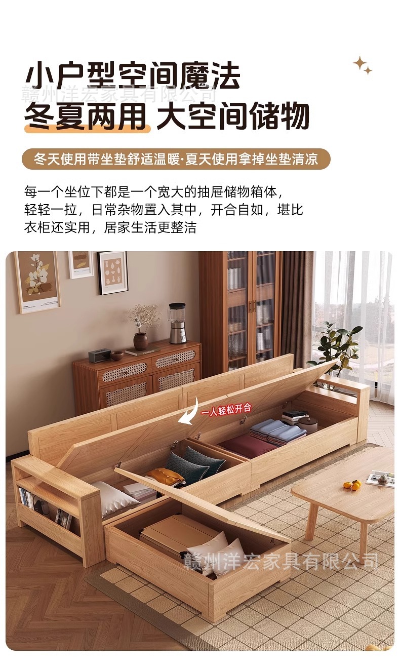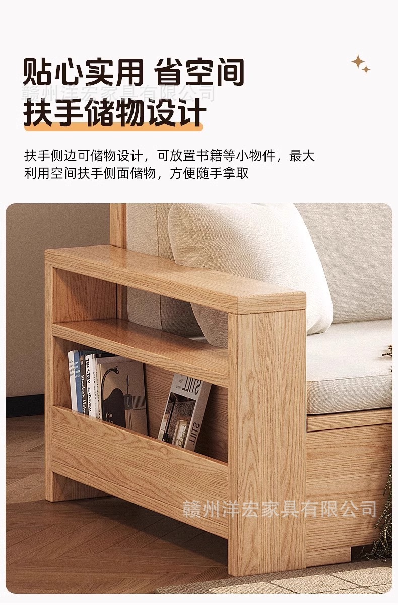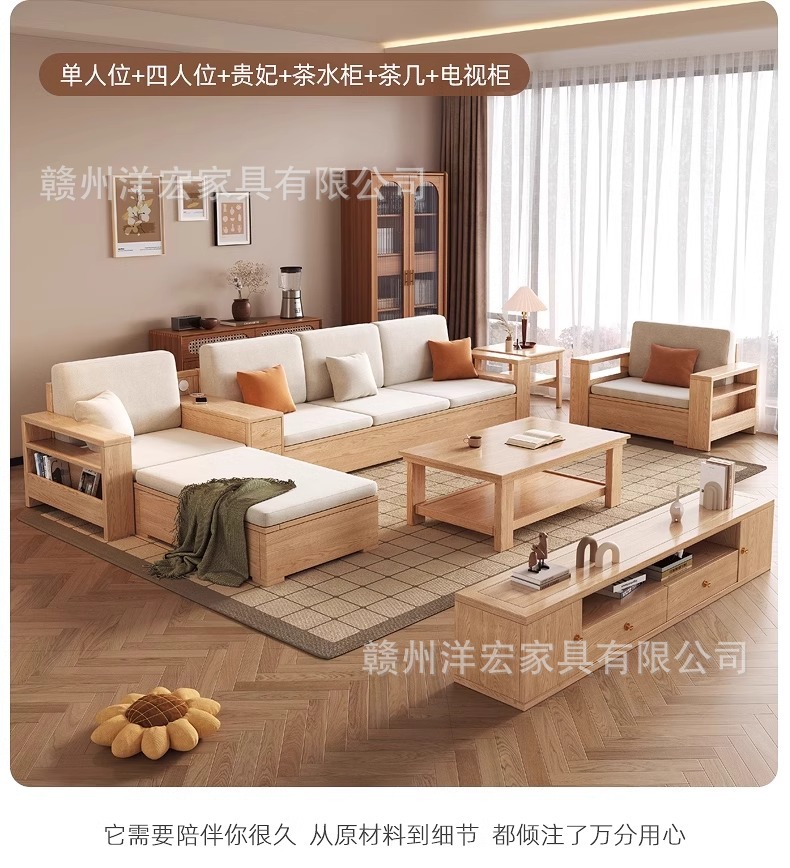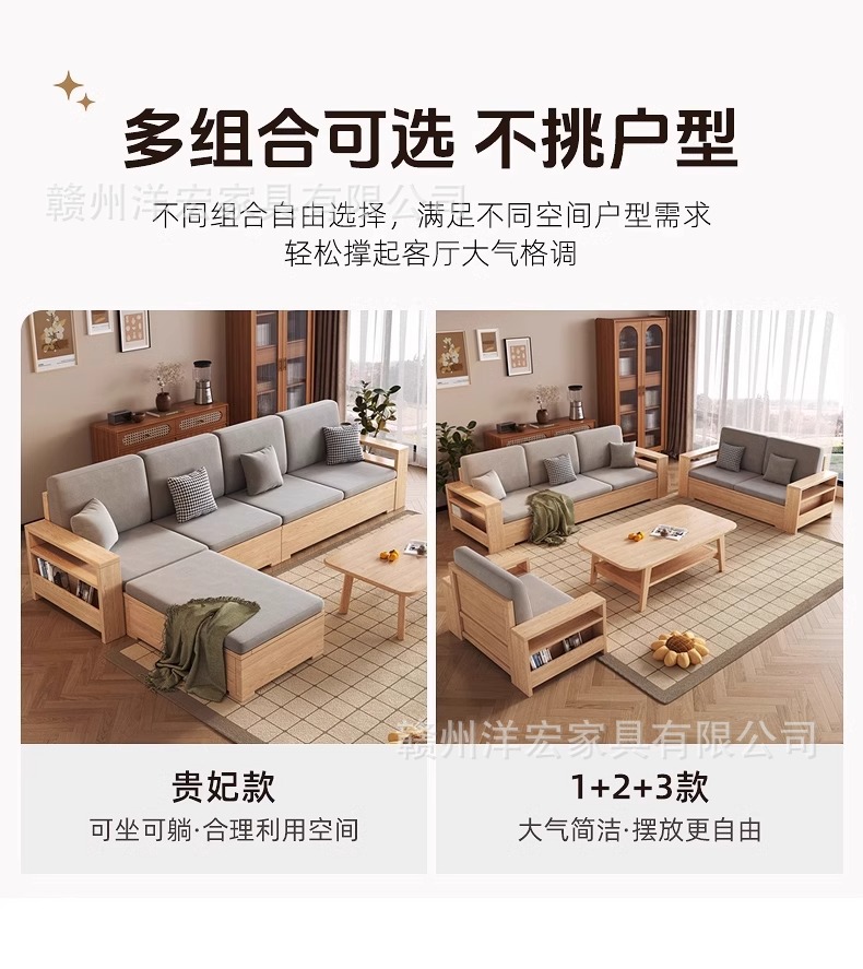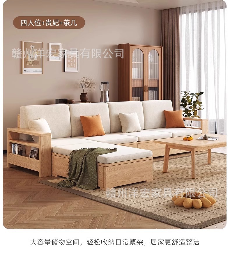 Sofá de madera sólida nórdica sofá de tela de madera de cera blanca simple sala de estar doméstica de madera de madera de tres filas
