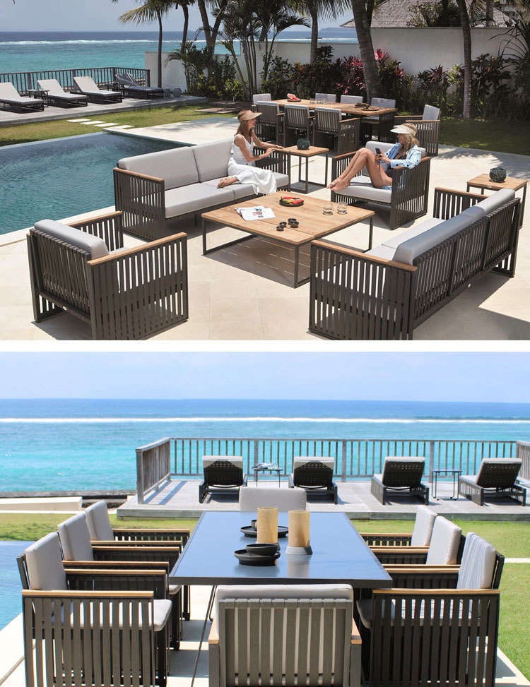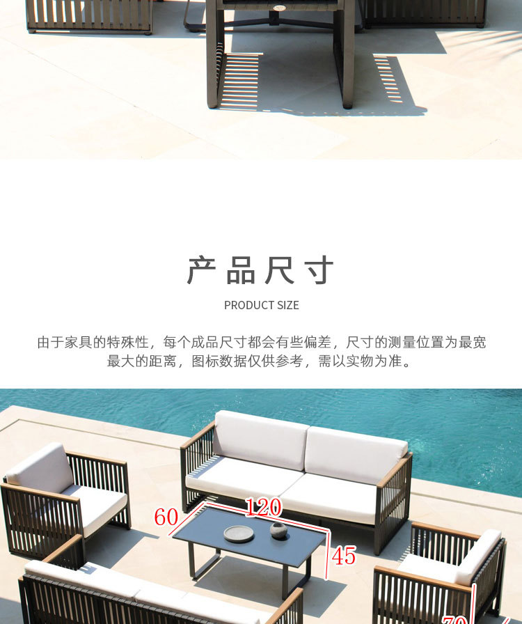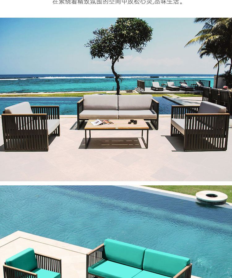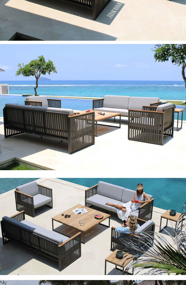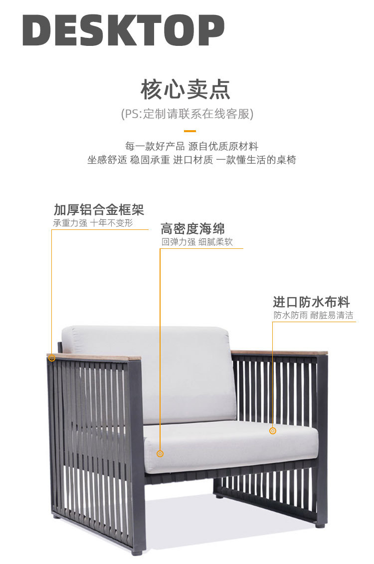 Sofá al aire libre Patio al aire libre Balcón al aire libre Aleación de aluminio Cuerda de teca Tejida Ocio Silla de ratán Muebles de jardín