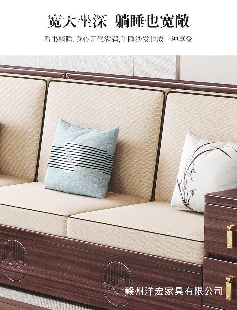 Nuevo sofá de madera maciza de estilo chino, muebles de sala de estar modernos y simples, sofá de madera de almacenamiento de invierno y verano
