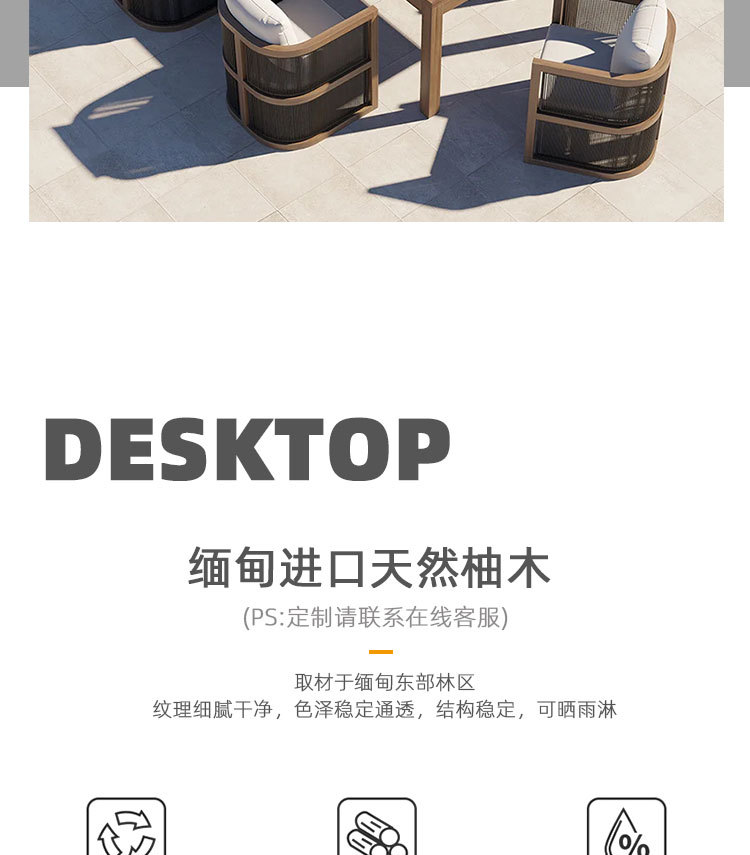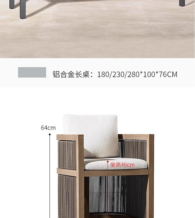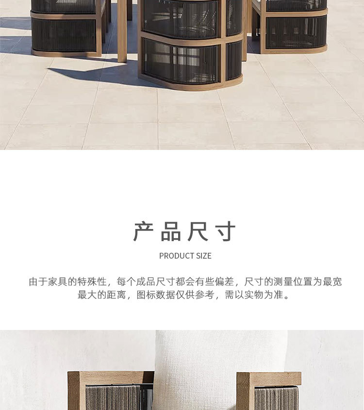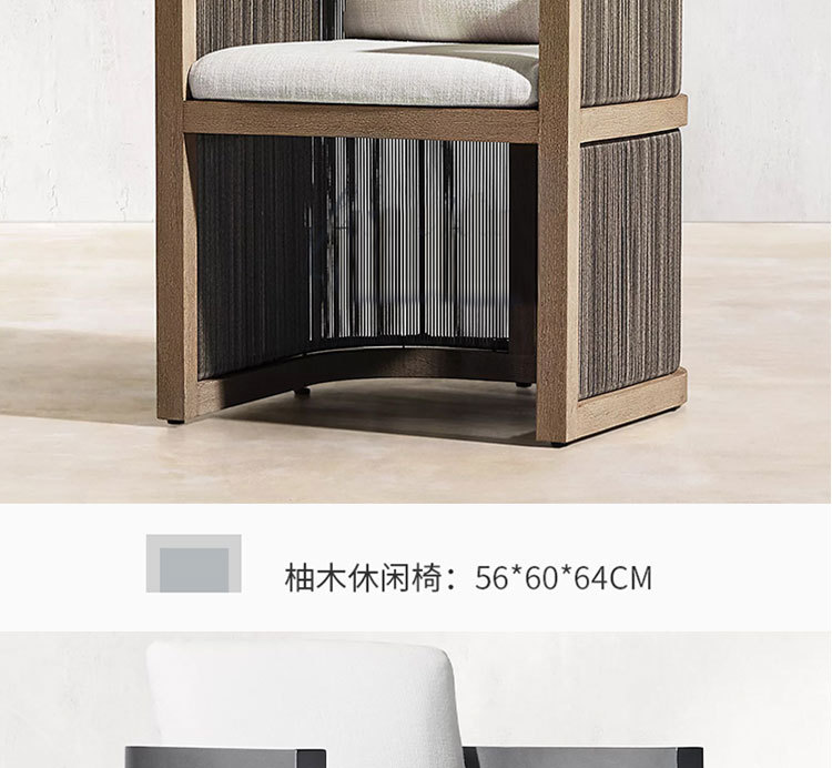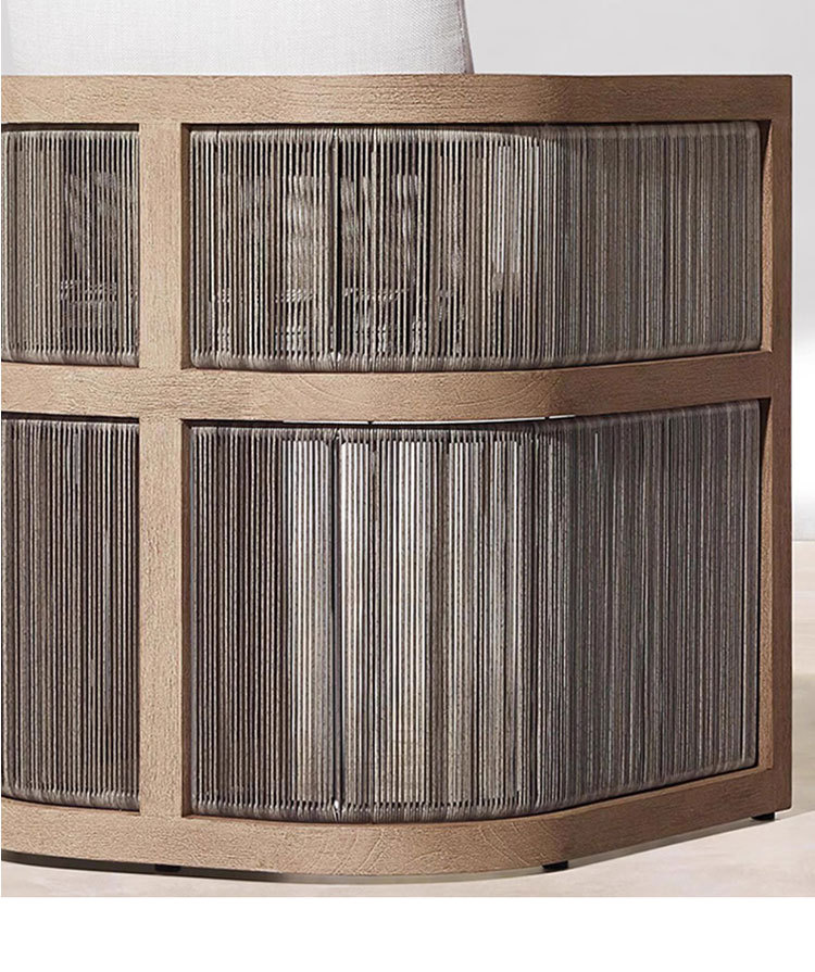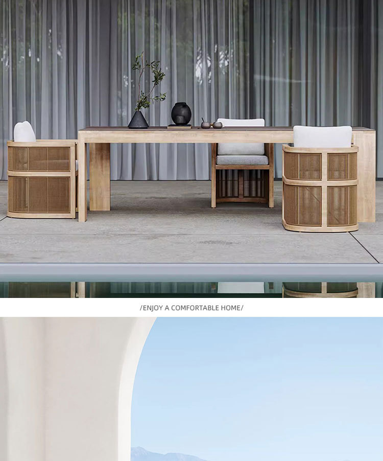 Mesa y silla de teca de caña al aire libre patio balcón al aire libre ocio de alta gama anticorrosión cuerda de madera trenzada silla combinación de muebles