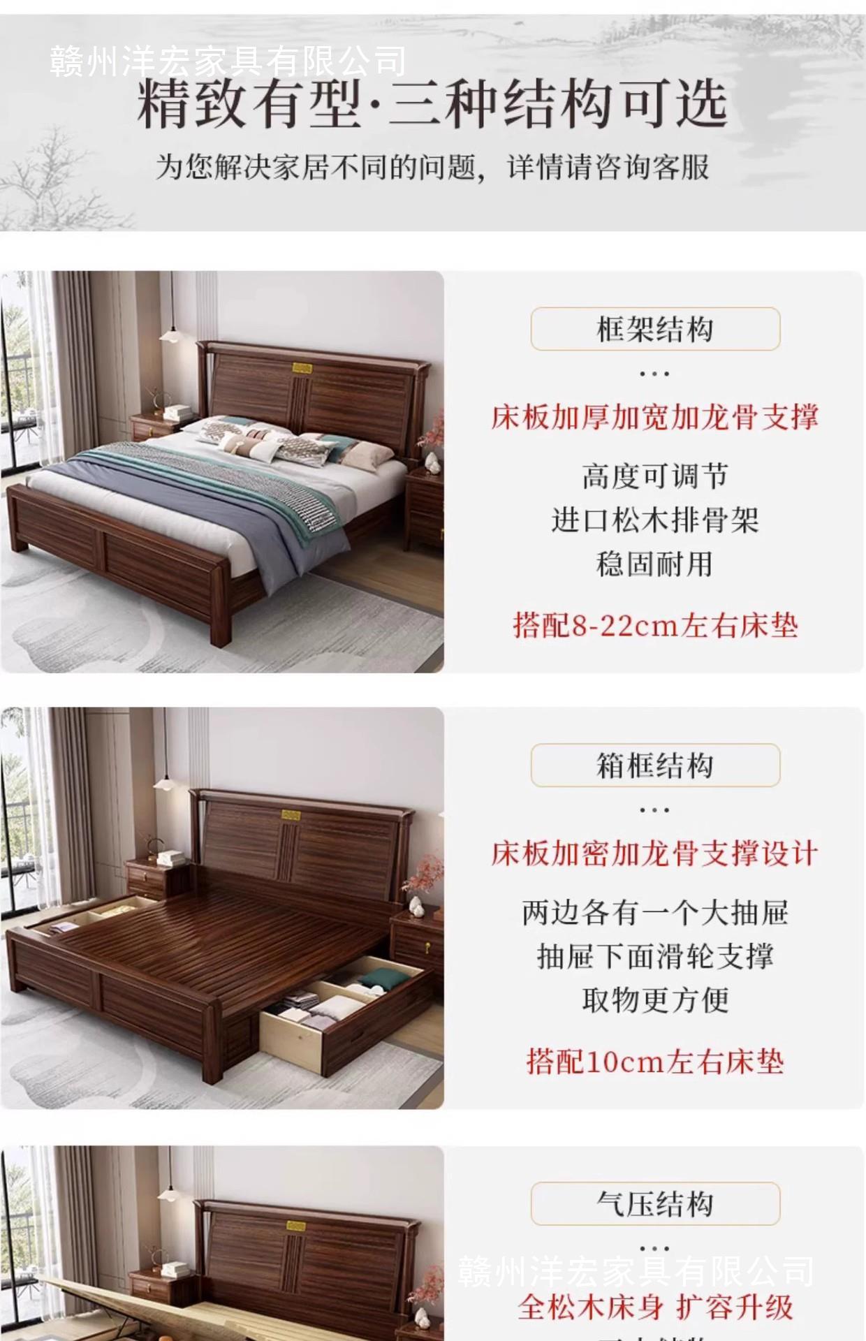 Nuevo estilo chino cama de madera sólida dormitorio doméstico madera sólida écono cama doble simple almacenamiento de muebles de dormitorio