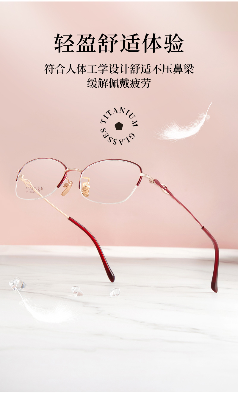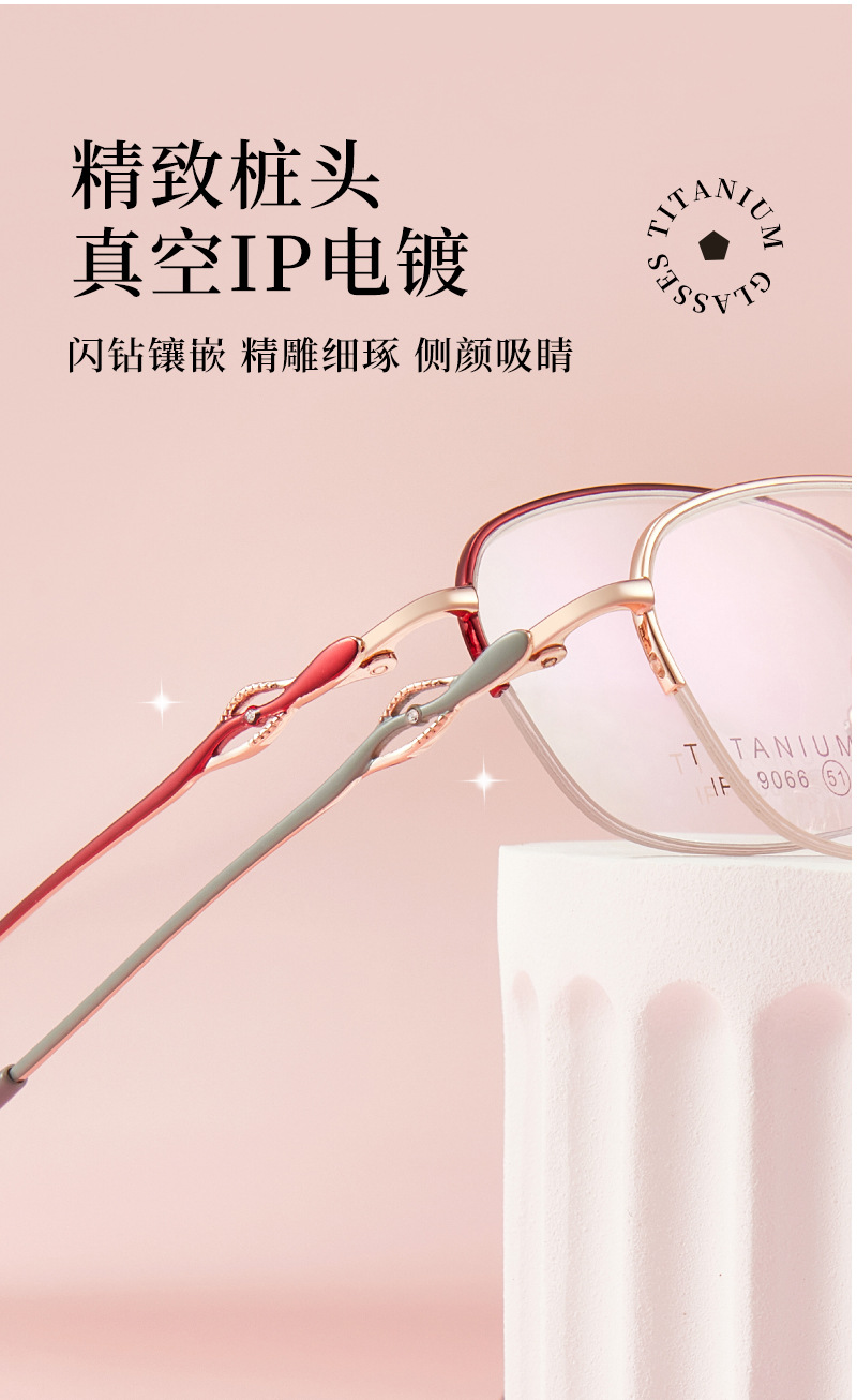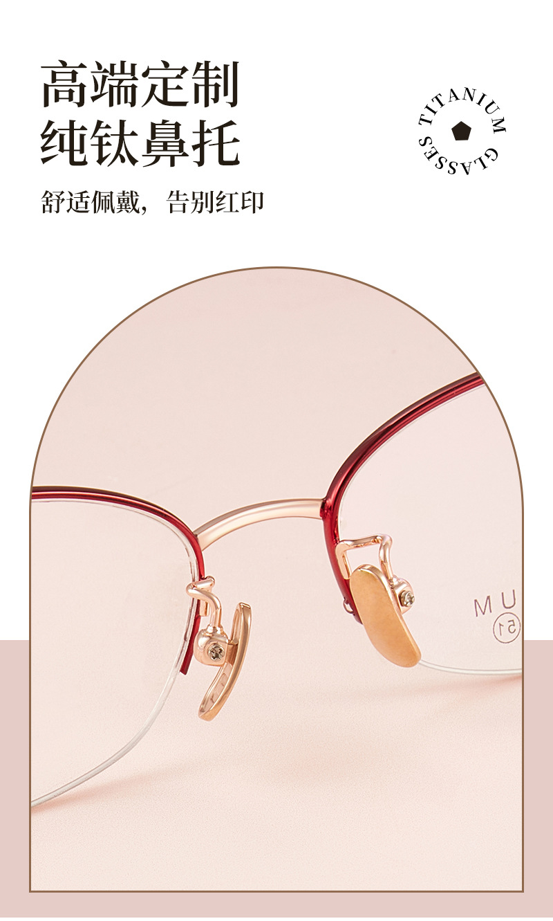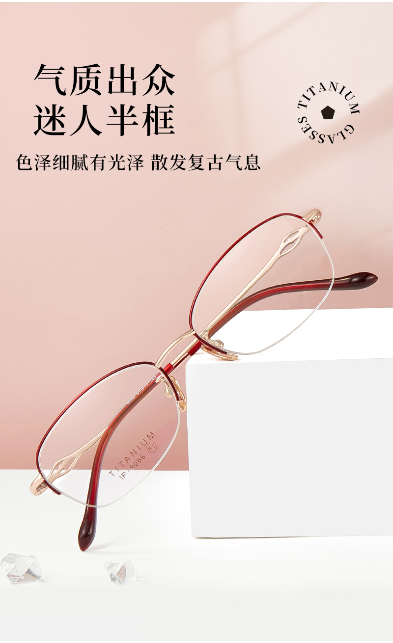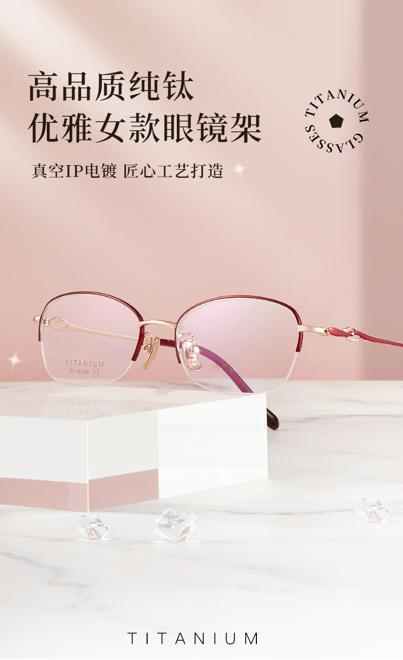 Alta calidad elegante de las mujeres de titanio puro medio marco gafas marco IP chapado temperamento encantador puede coincidir con miopía presbicia Danyang lote