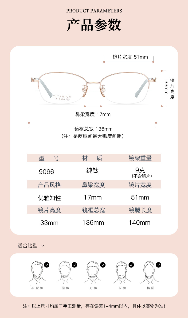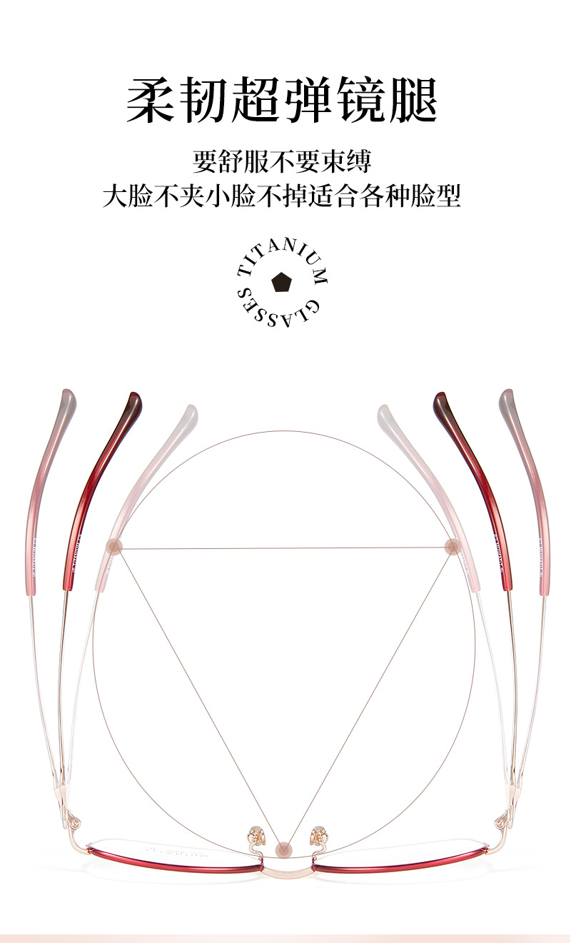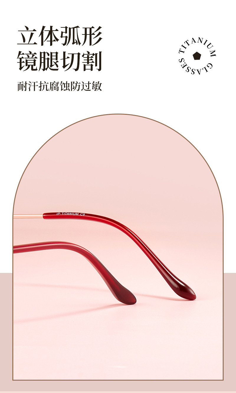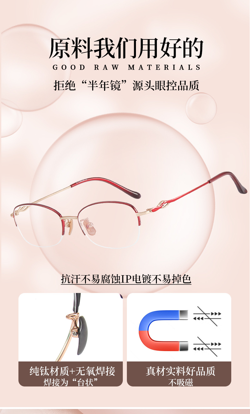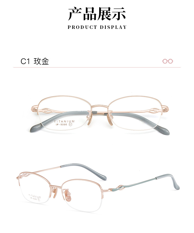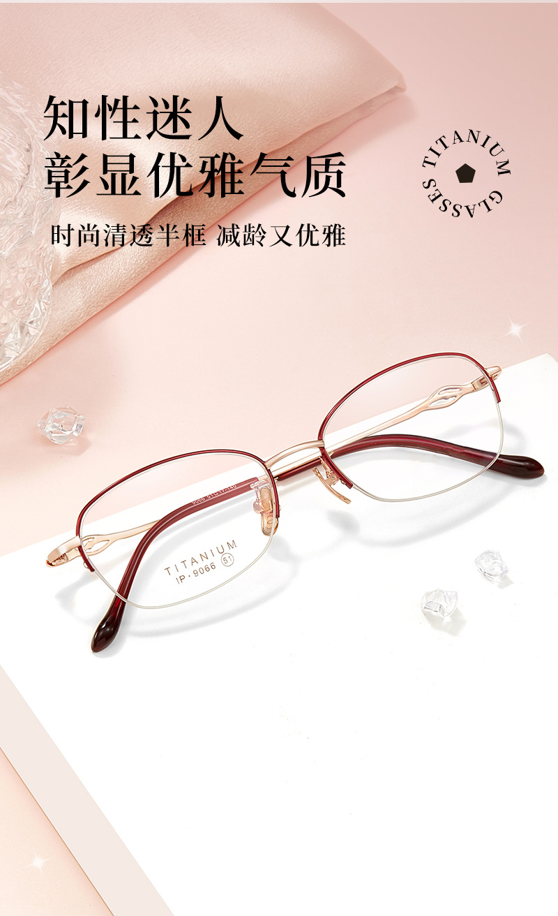 Alta calidad elegante de las mujeres de titanio puro medio marco gafas marco IP chapado temperamento encantador puede coincidir con miopía presbicia Danyang lote