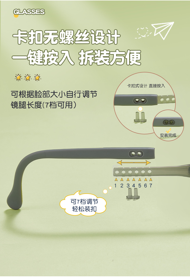 Niños de moda ajustable ajustable desenfoque TR retrógrado marco de gafas de silicona soporte de nariz ajustable de gafas Danyang mayorista