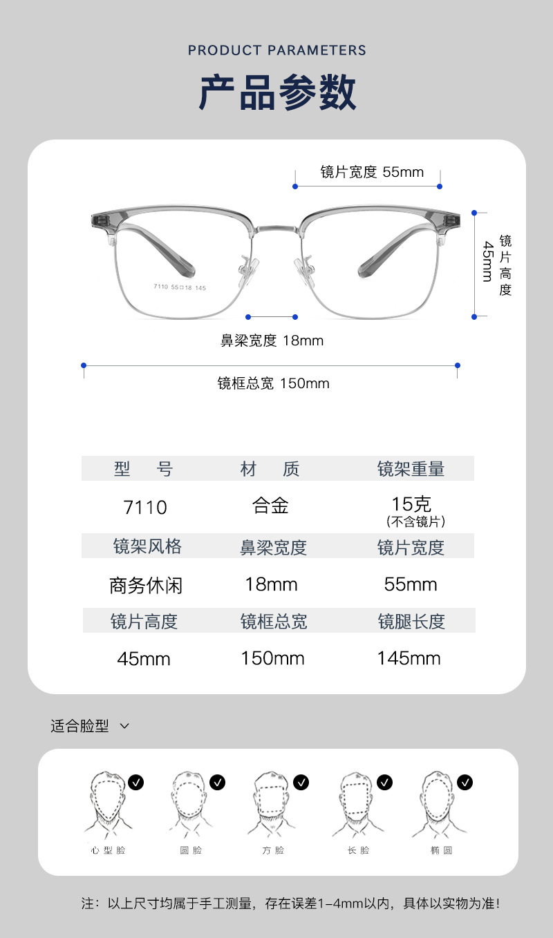 Montura de cejas de aleación de ocio de negocios minimalista, montura de gafas, pierna TR flexible, sin sujetar la cara, se puede combinar con grado Danyang