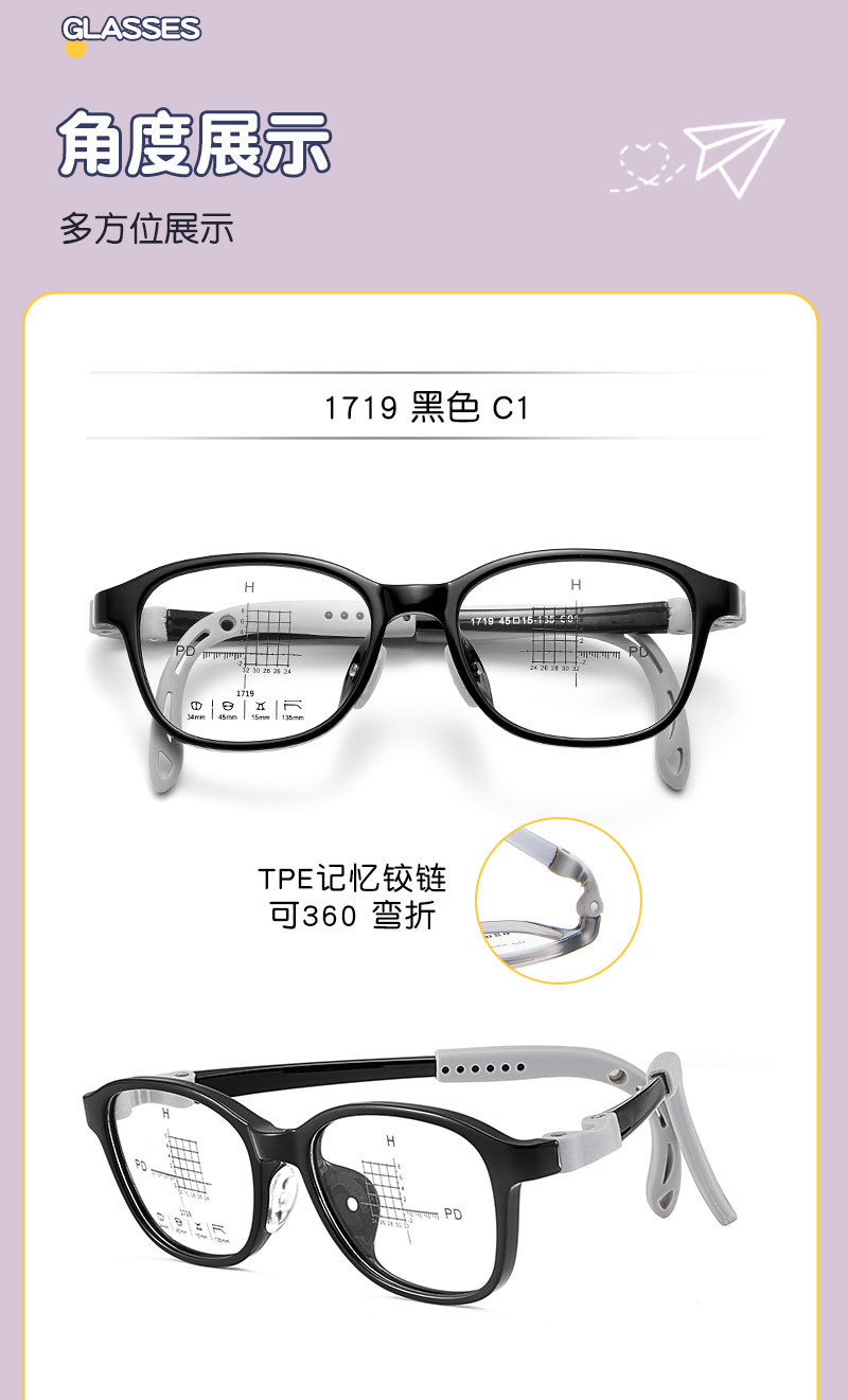gafas para niños pueden equiparse con miopía TR90 silicona suave soporte nasal marco de gafas de memoria bisagra anti-deformación Danyang al por mayor