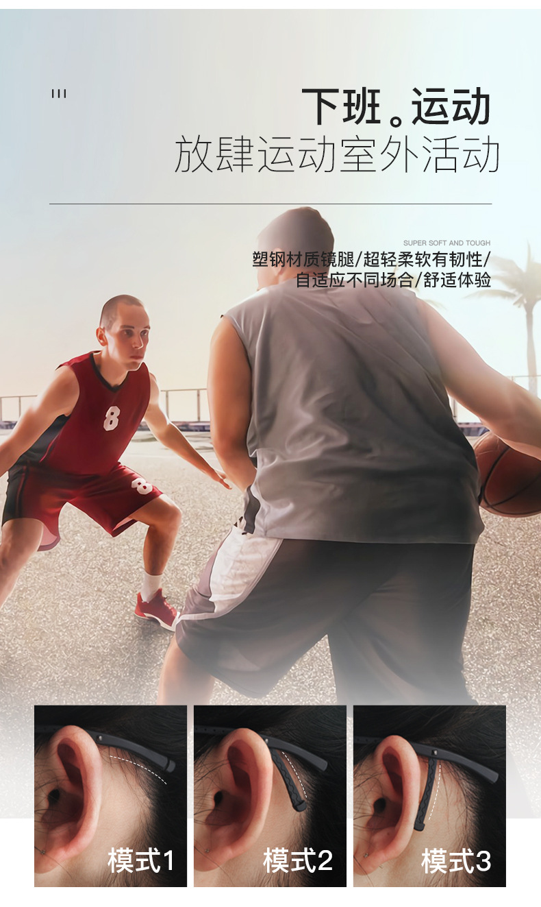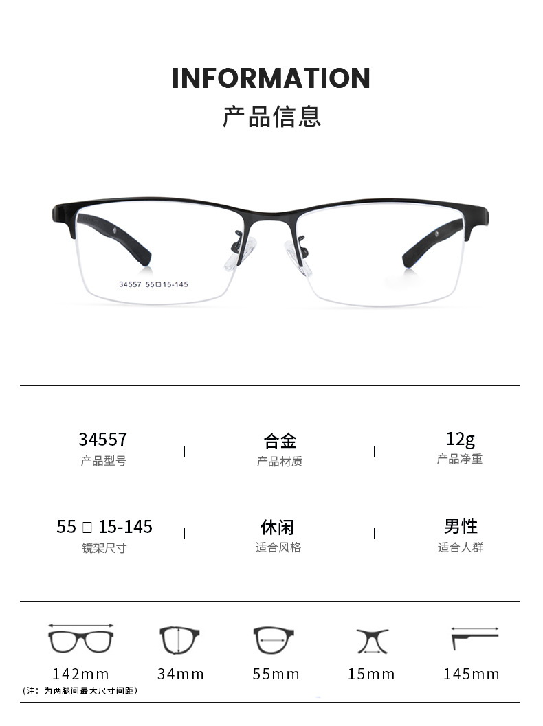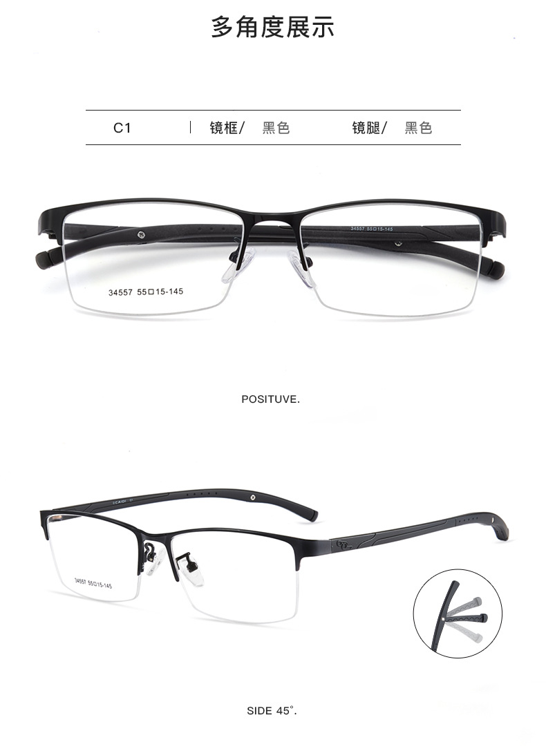 Deportes y ocio ultra-ligero de aleación de negocios medio marco gafas marco plástico acero pierna antideslizante no clip cara gafas Danyang lote