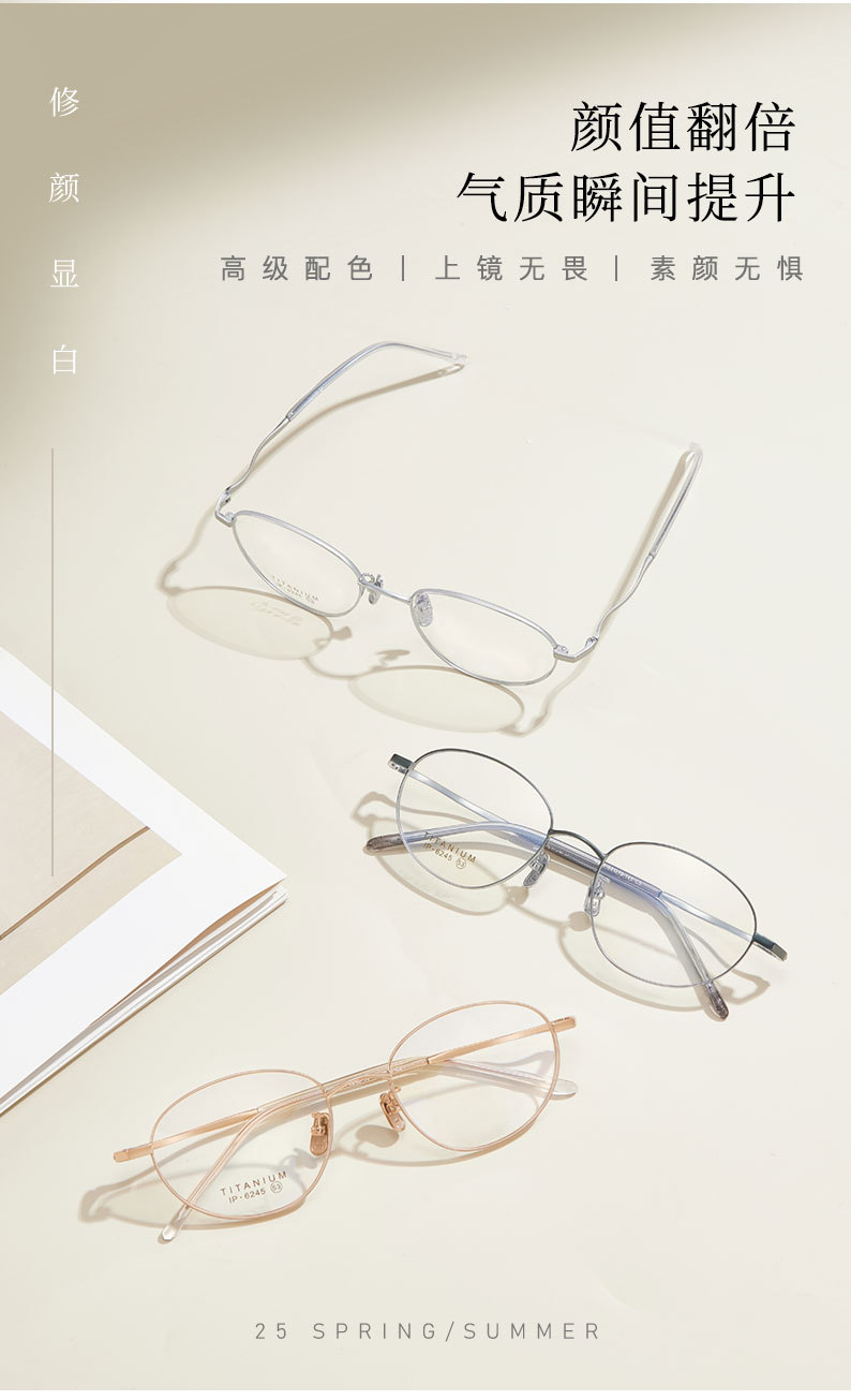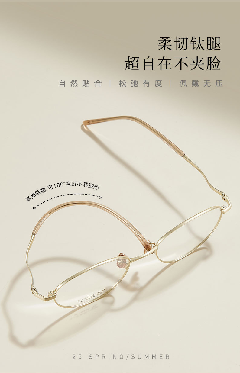 Little Red Book Blogger Girl 's Sense Elíptico Retro Titanium Frame Glasses Frame ensanchado radiante gran cara puede usar gafas al por mayor