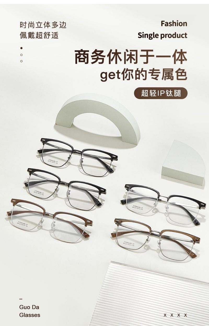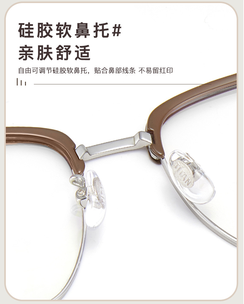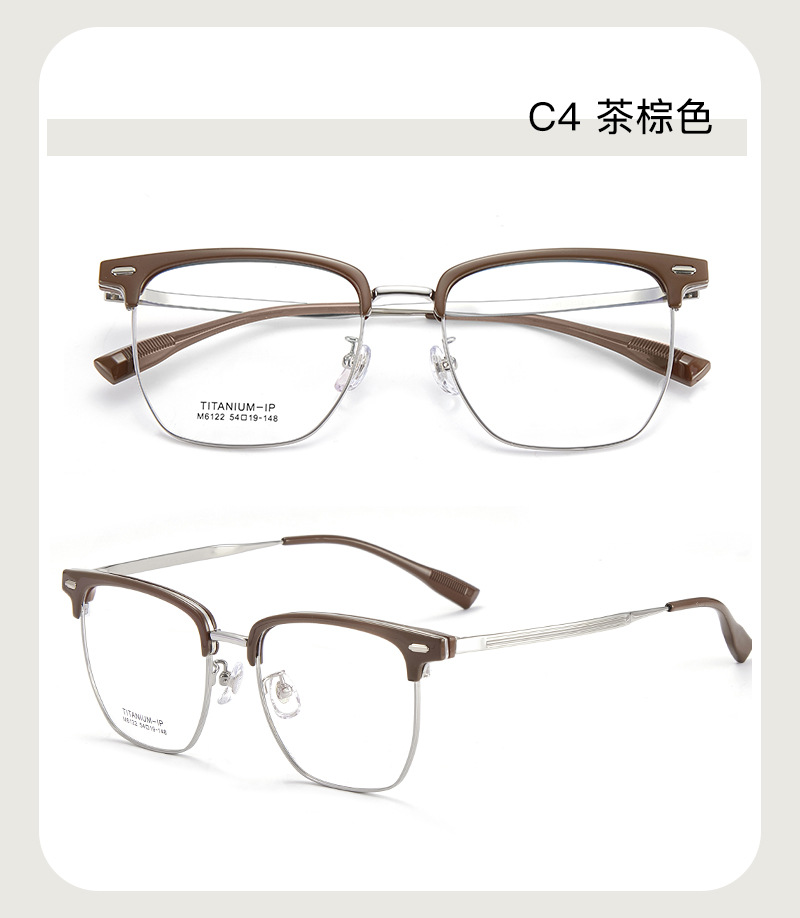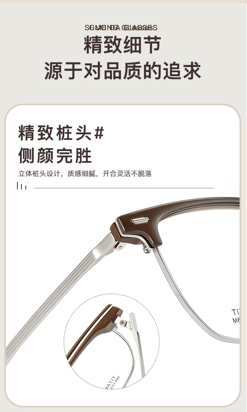 Temperamento suave, té cálido blanco, marrón TR, titanio, cejas, gafas, marco, reparación tridimensional, gafas, aprobación Danyang