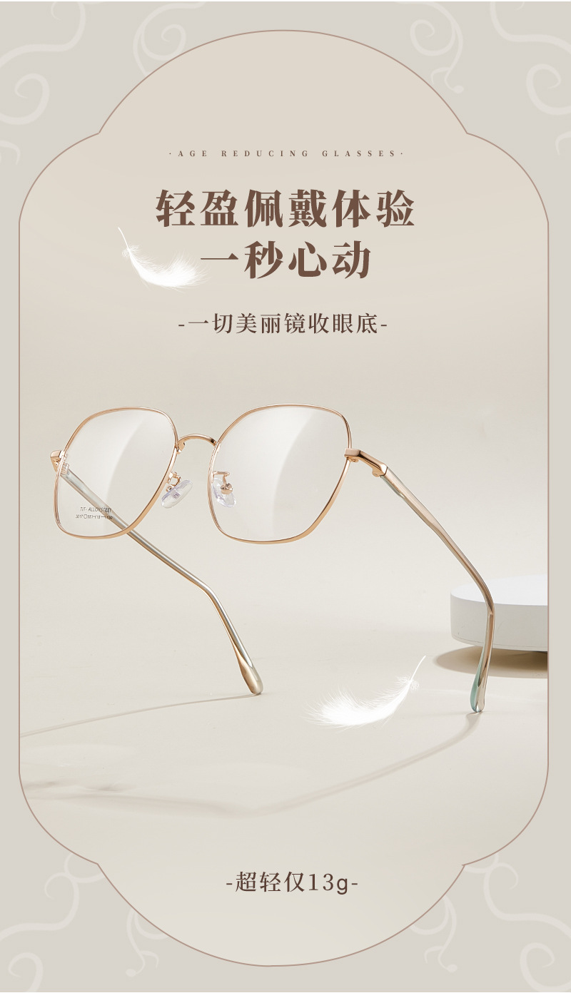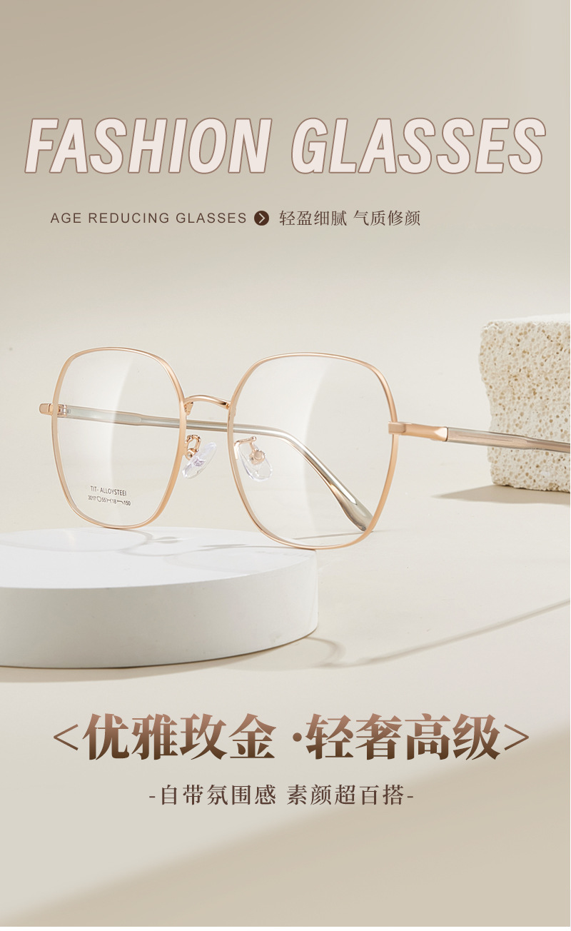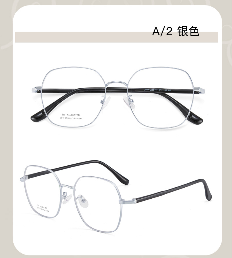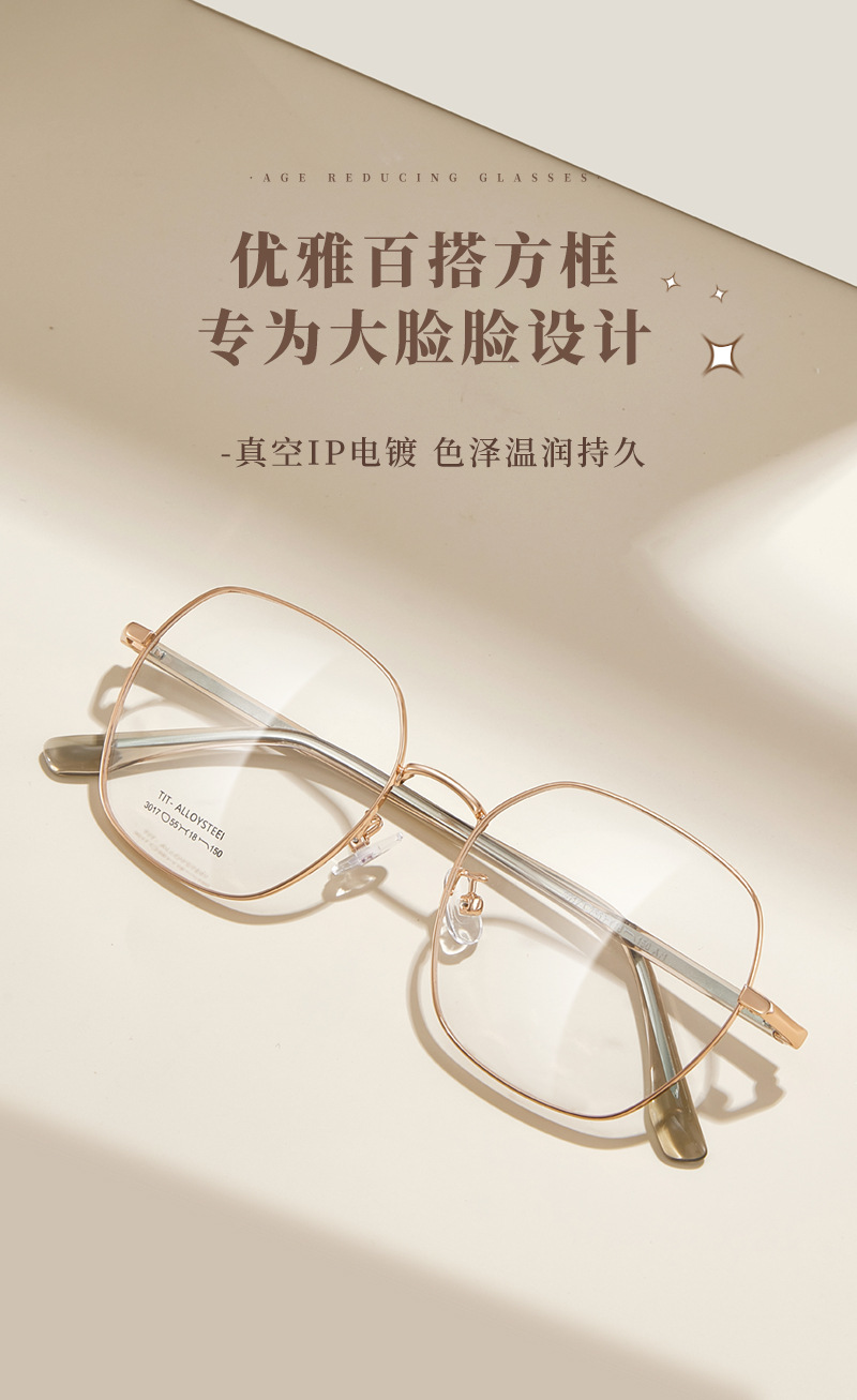 Marco grande de alto valor, artefacto de maquillaje sin maquillaje, marco de gafas de metal retro multilateral, placa antideslizante, pierna con núcleo, espejo al por mayor