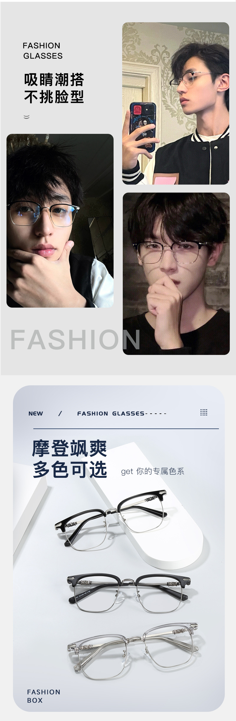 Moda Red negocio ceja marco hombres Pu Shuai gafas marco Luz de lujo todo partido gafas Danyang al por mayor