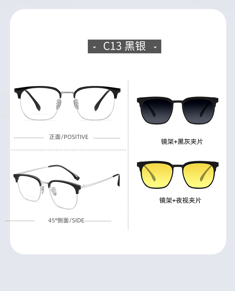 HD polarización 3 - en - 1 gafas de absorción magnética gafas de sol miopía cejas marco de gafas cómodo anti-caída Danyang al por mayor