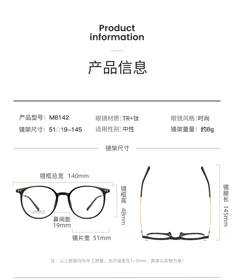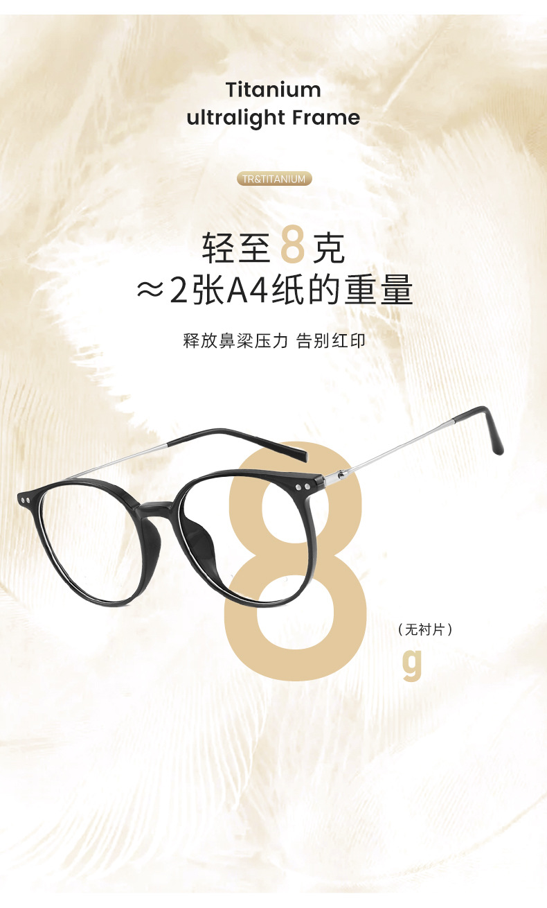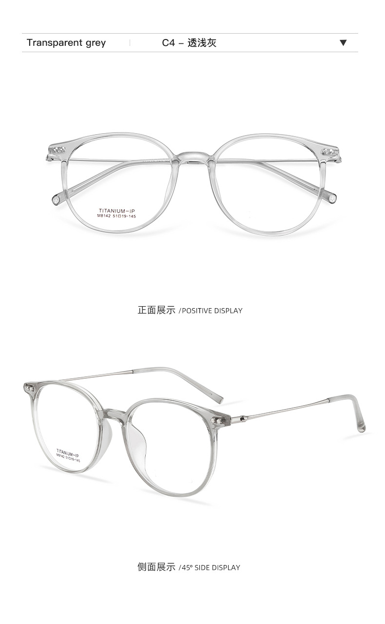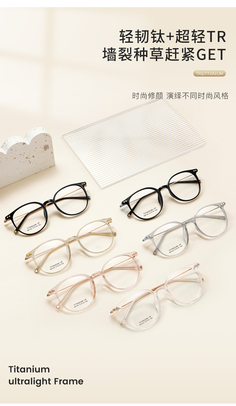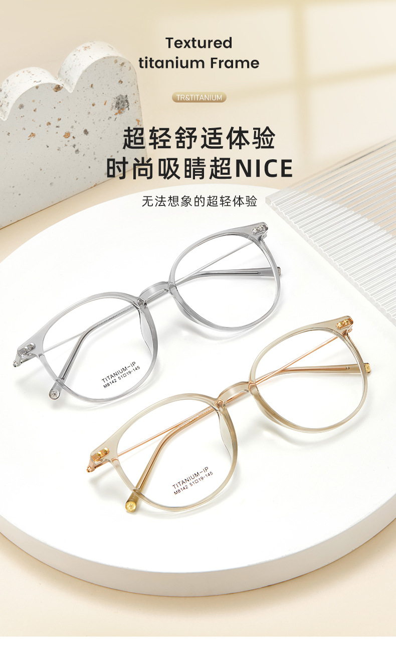 Estilo japonés joven ronda ultra-ligero gafas de titanio puro piernas serie clara blanco neto rojo liso marco de gafas TR puede ser equipado con gafas Danyang venta al por mayor