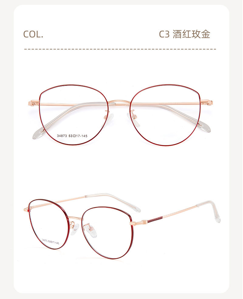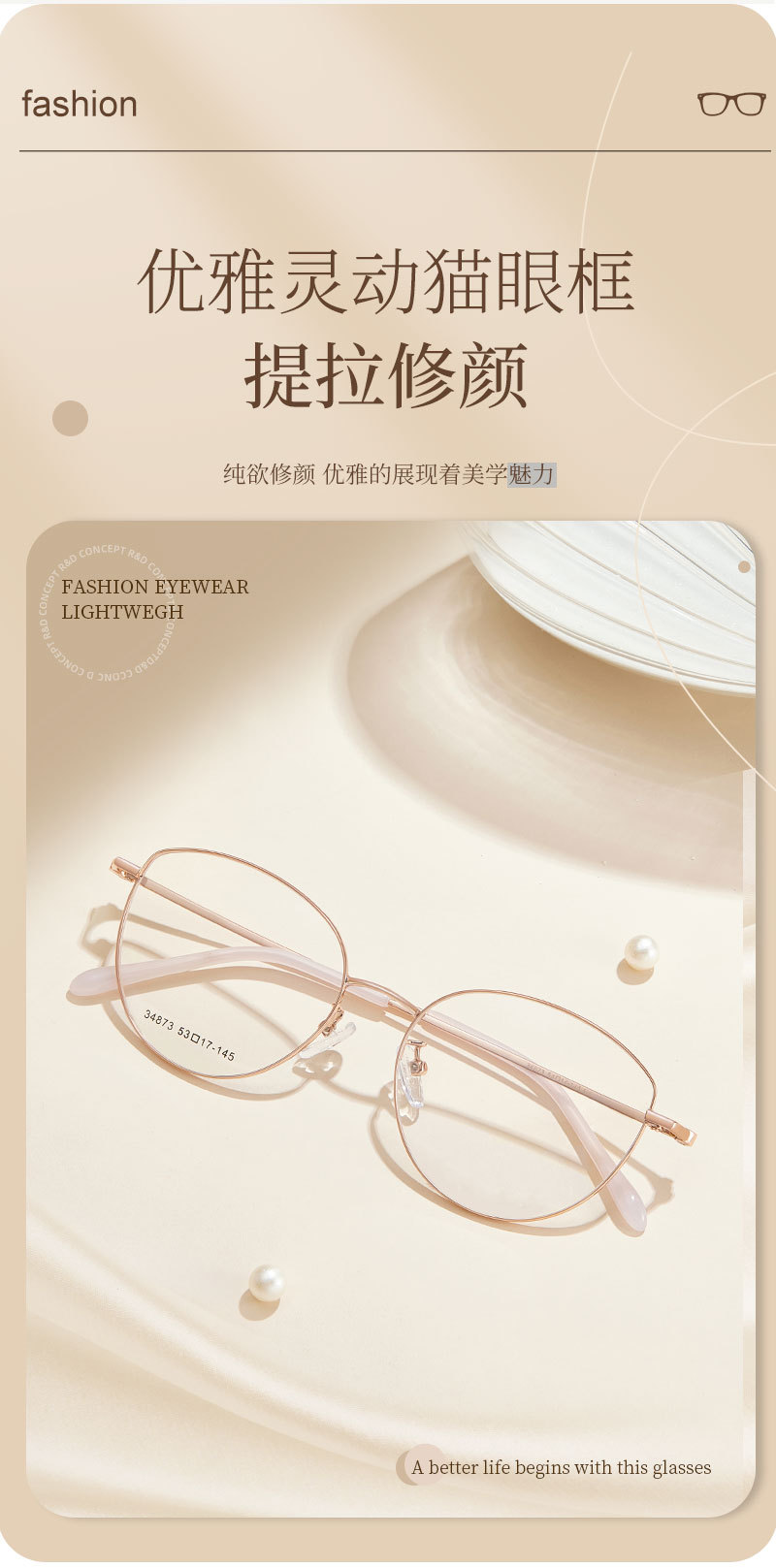 Elegante puro deseo de ojo de gato aleación de alta calidad marco de gafas retro chapado IP ± 15 grados gafas flexibles con gafas al por mayor