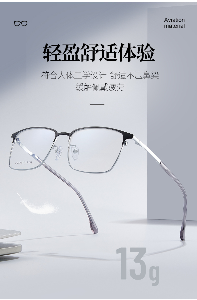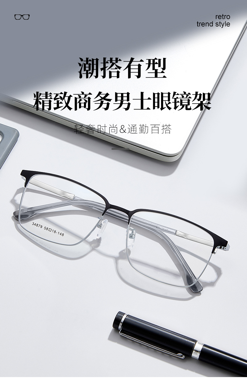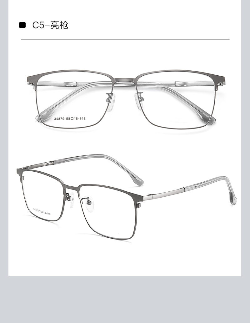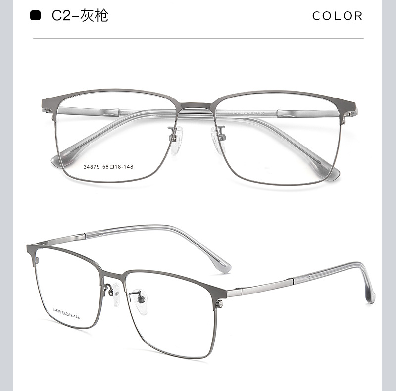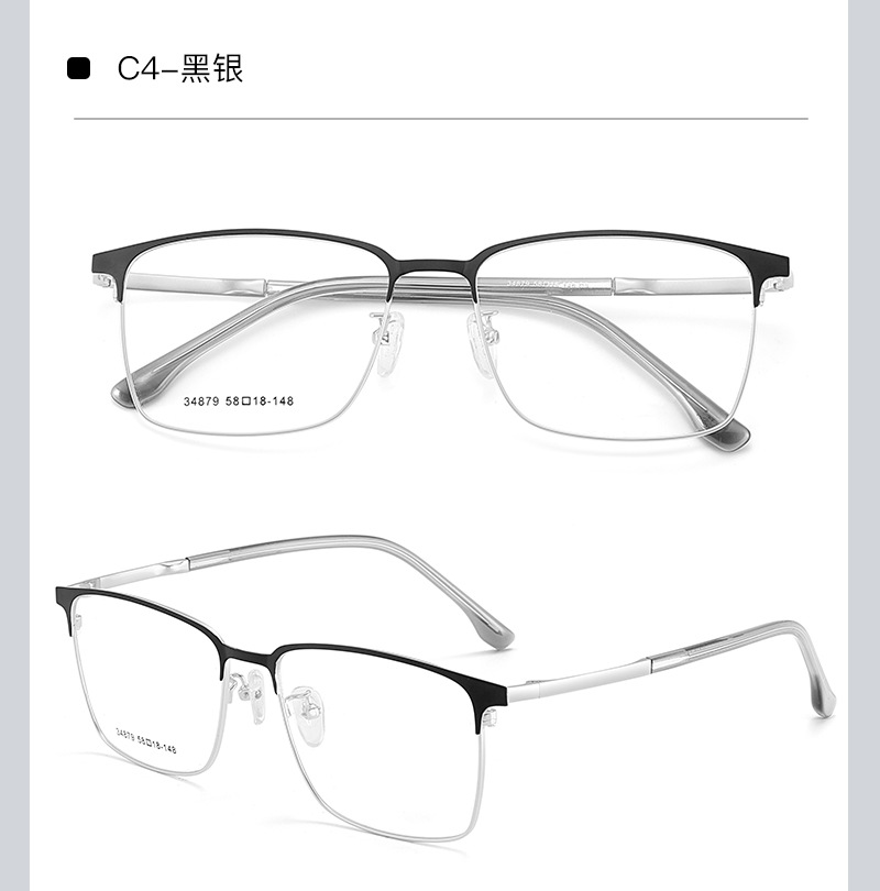 El marco cuadrado de aleación simple para hombres de cara grande se puede equipar con montura de gafas de miopía, marco de espejo literario ultraligero para estudiantes, Danyang al por mayor