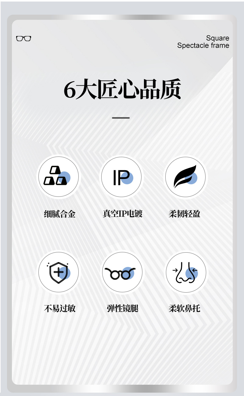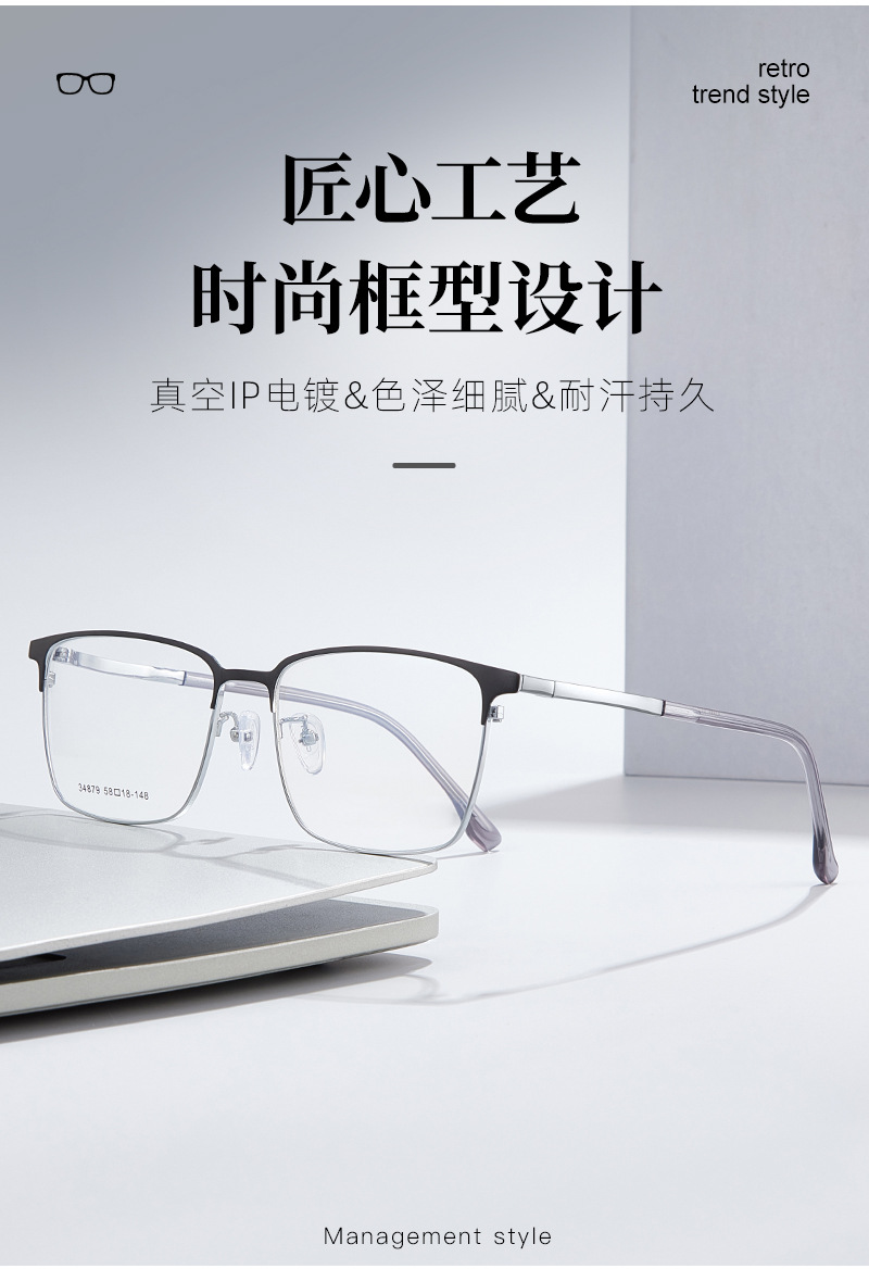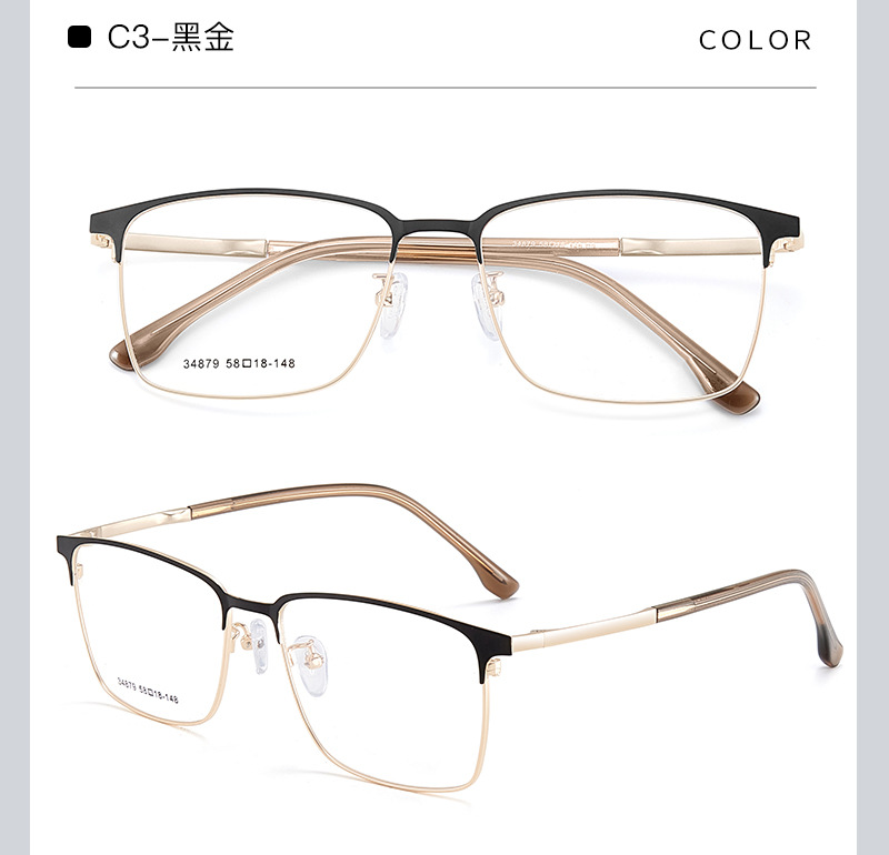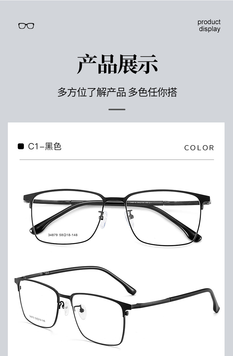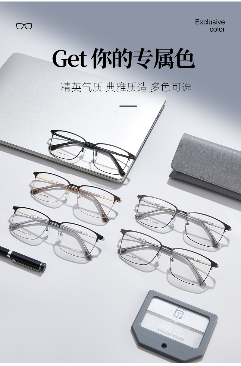 El marco cuadrado de aleación simple para hombres de cara grande se puede equipar con montura de gafas de miopía, marco de espejo literario ultraligero para estudiantes, Danyang al por mayor