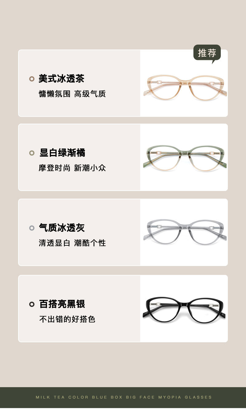 Gran marca reticulante artefacto facial ojo de gato anti-luz azul TR90 marco de gafas de 4 mm de ancho puede equiparse con miopía al por mayor