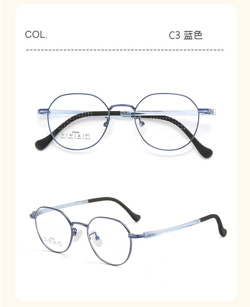 Estudiante especial de protección de ojos cómodos retrógrado marco de gafas metálicas bicolor gafas de goma de goma de seguridad anti-caída puede equiparse con miopía al por mayor