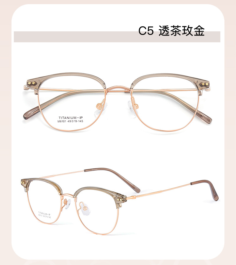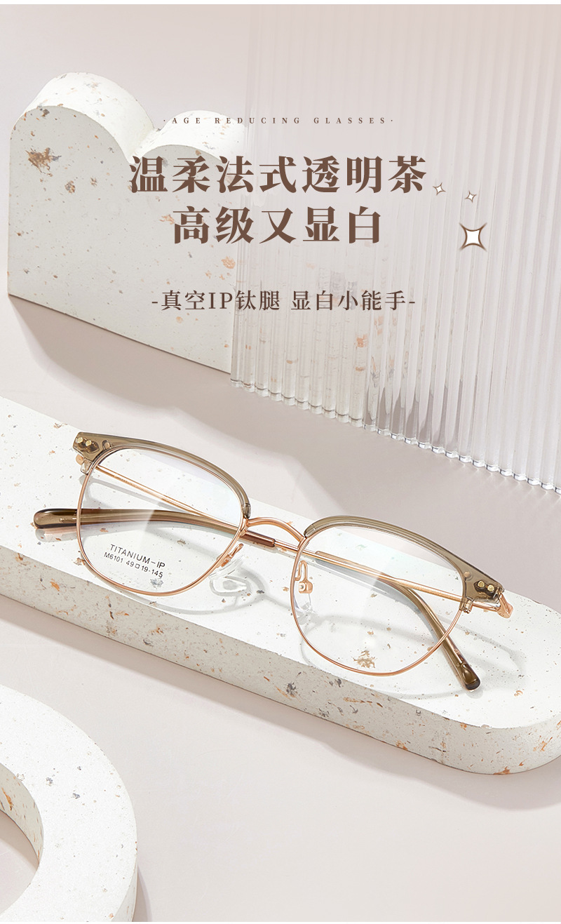 La atmósfera es fría, marrón, marco de titanio TR, marco de gafas, sin maquillaje, patas de titanio flexibles y versátiles, se puede equipar con grado Danyang al por mayor