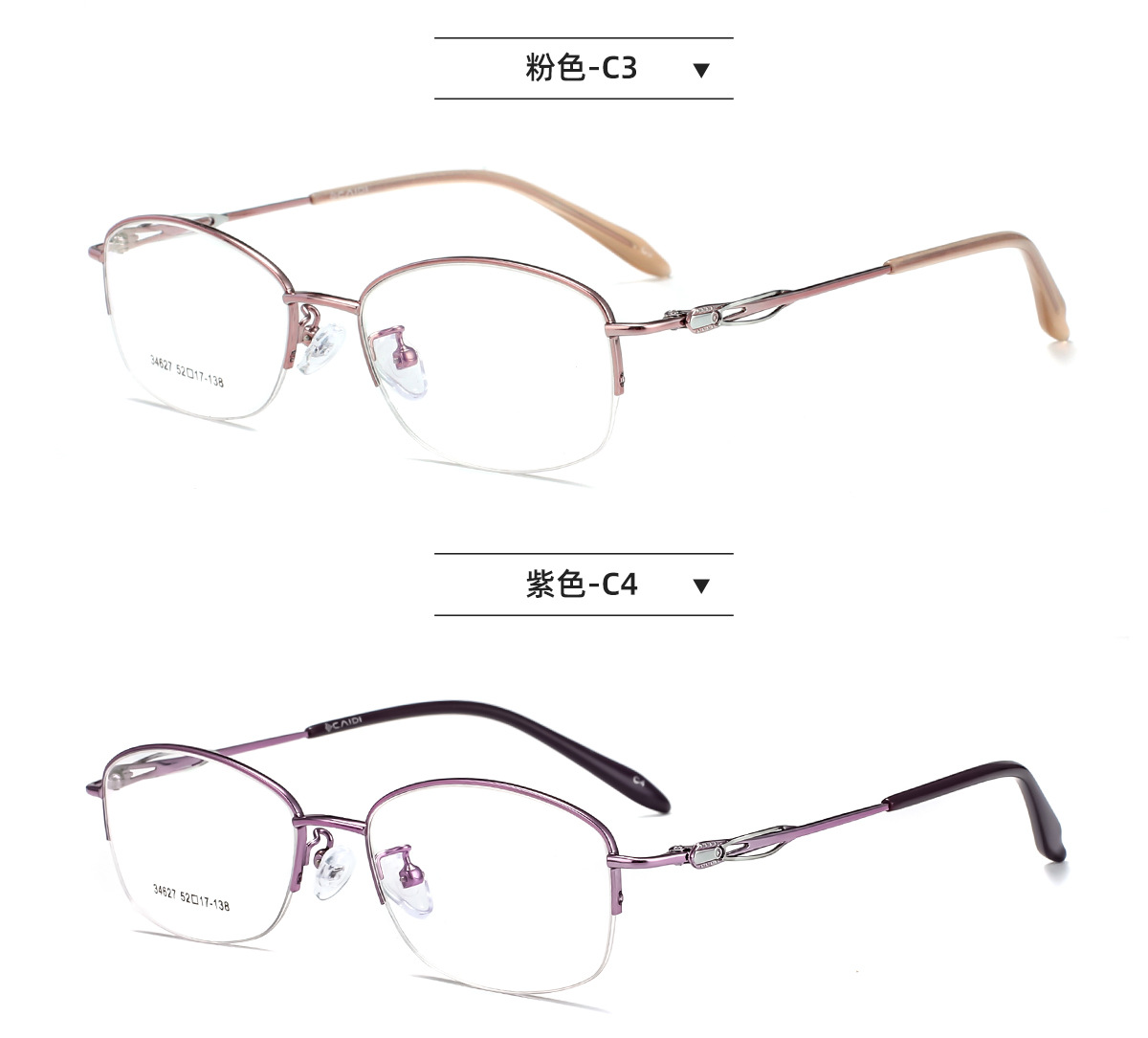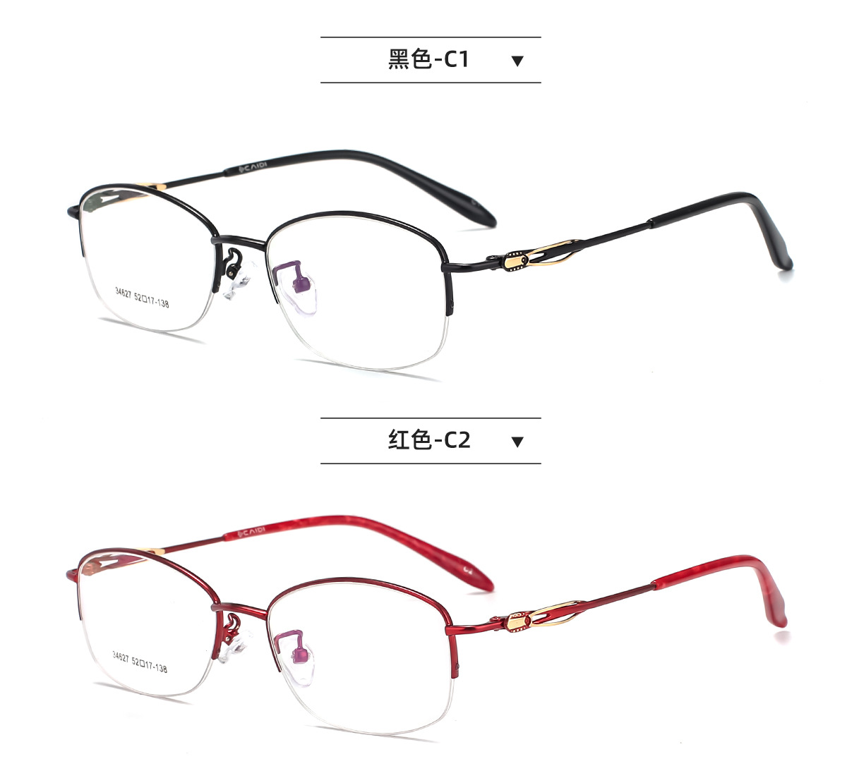 Las mujeres elegantes simples de aleación de medio Marco de gafas de dos colores galvanoplastia anti-oxidación ajustable grados Danyang lote